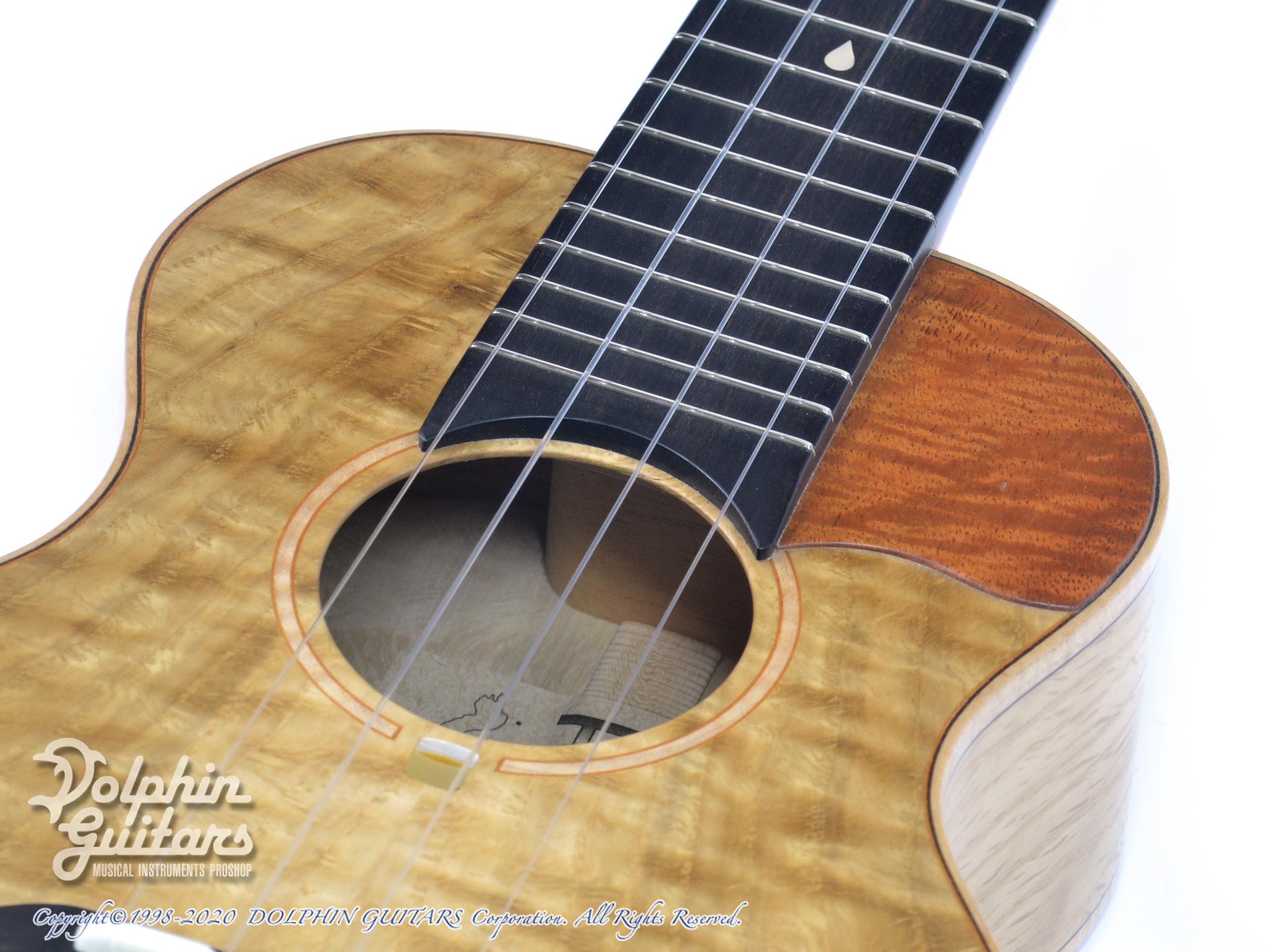 本器は珍しいフレイム・オークをボディに使用したコンサート・カッタウェイボディVC (All Flame Oak)のUSED品。