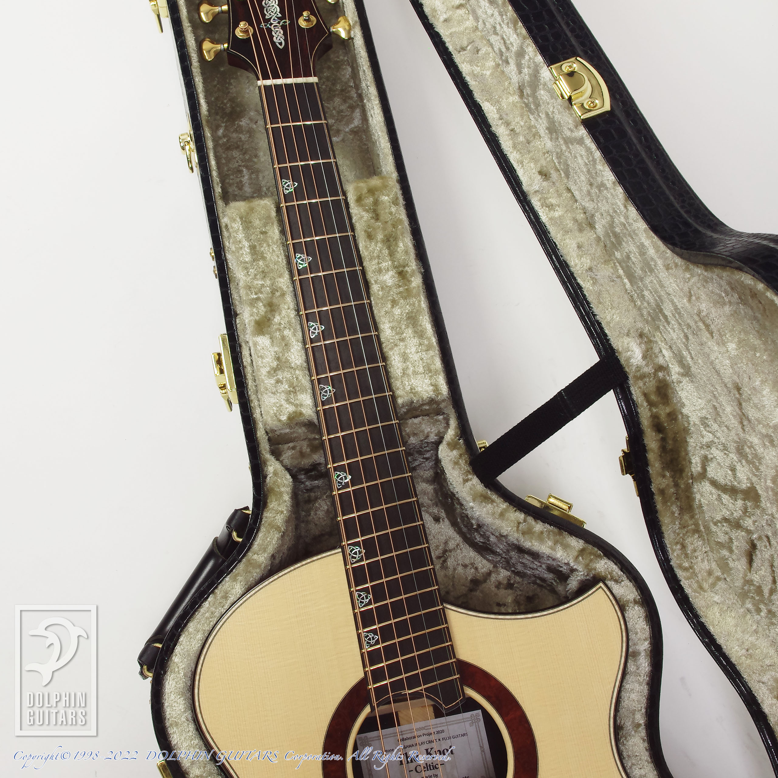 西氏製作のギターにはケルト文化に着目し、The Knot -Celtic-を、藤井氏製作のギターには日本を含む東アジアの組紐(水引)文化に着目しThe Knot -Kumihimo-を、同スペックの材料を使用しながらもそれぞれの製作家の視点において作り上げられたギターが違うように、結びという文化の視点の違いによる装飾の形も合わせてお楽しみください。