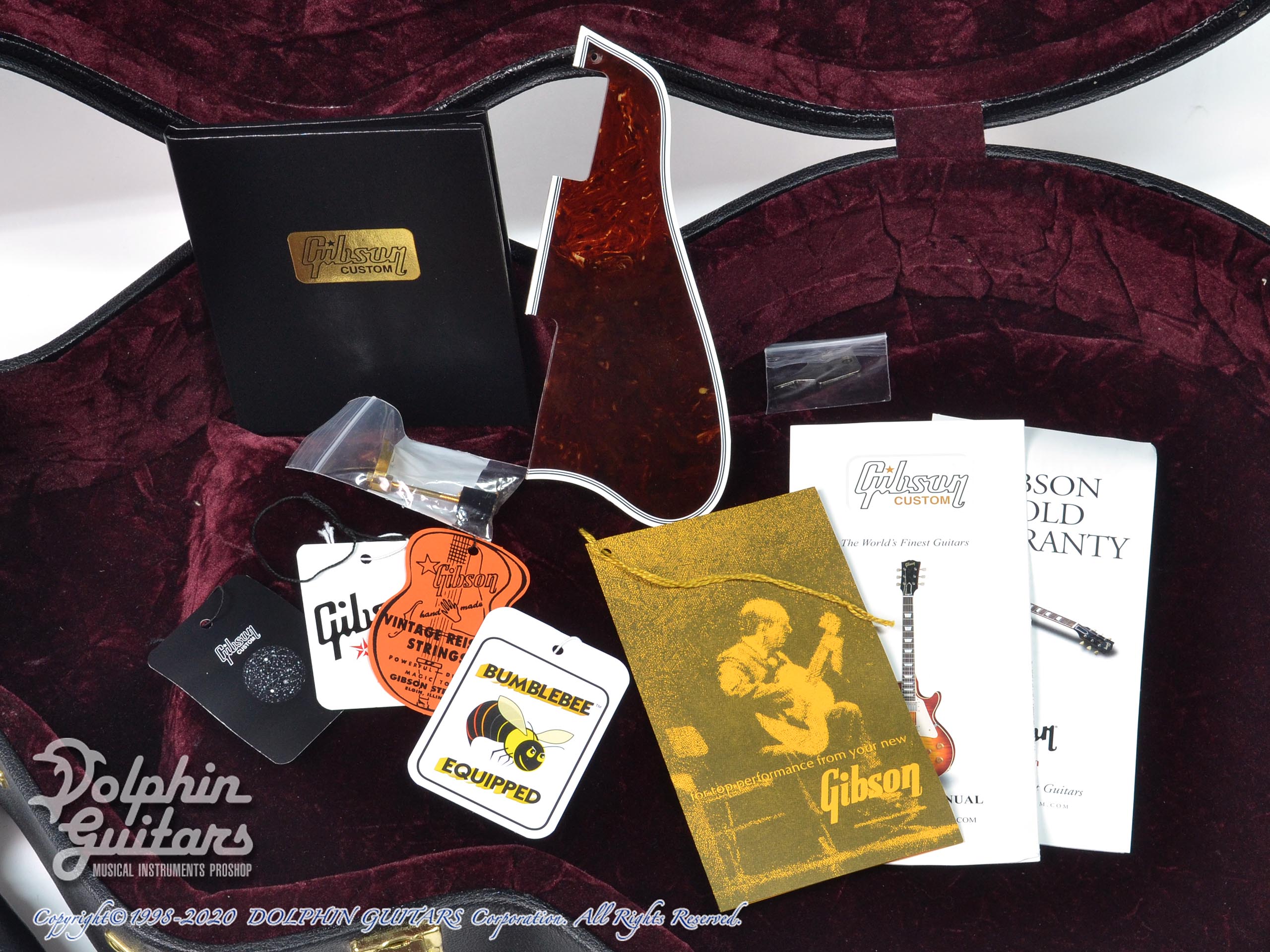 メイプルボディ、マホガニーネック、エボニー指板(ブロックインレイ)、E-バッカーx2搭載、ゴールドパーツ、ビグズビーテイルピース、グローバー糸巻き、VOSフィニッシュ。