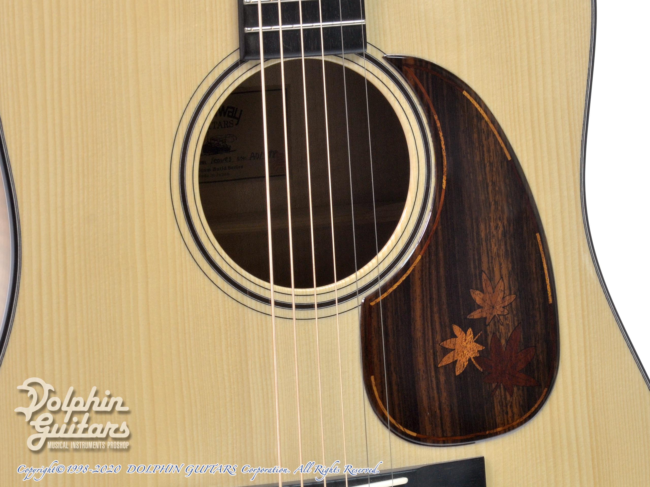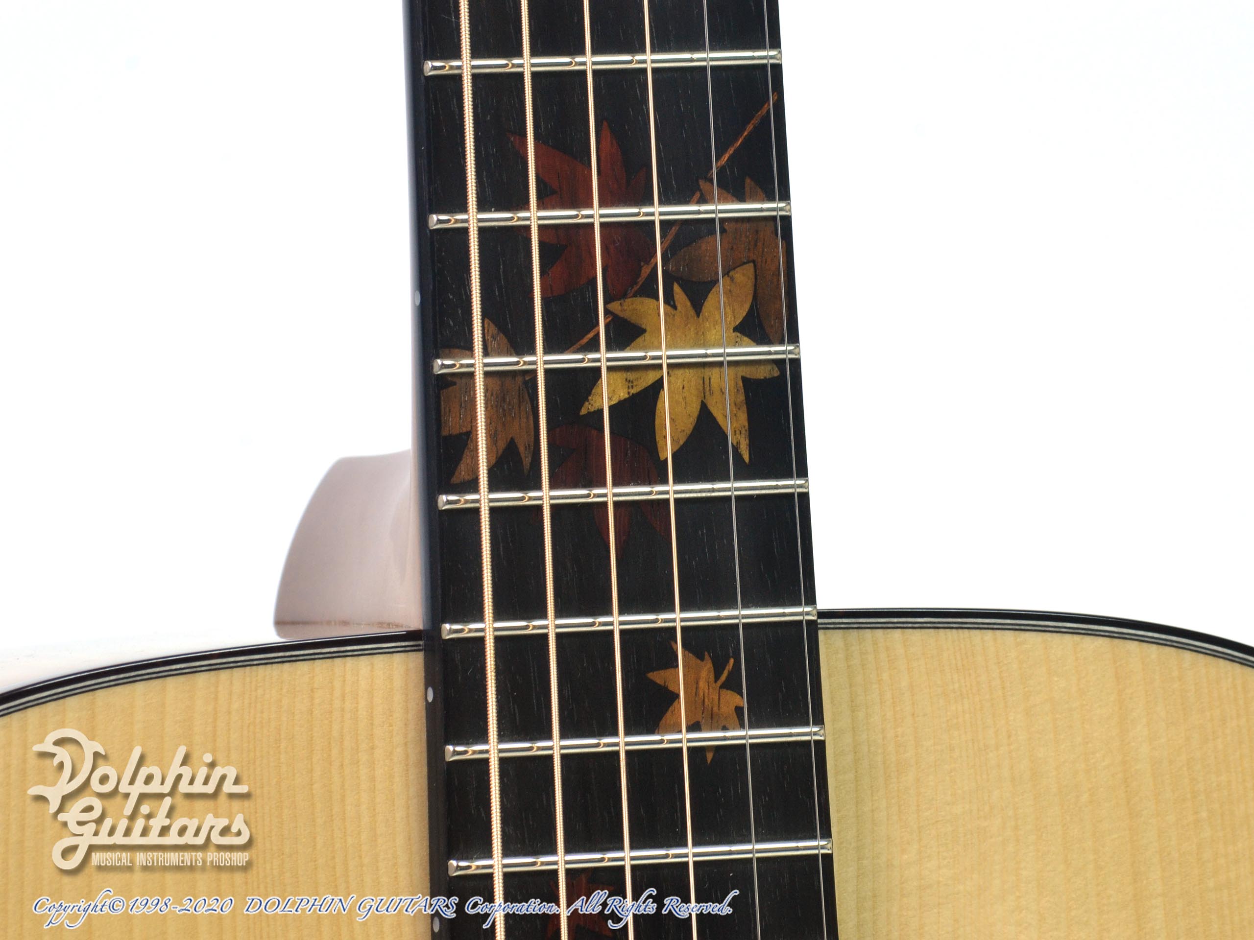 2018楽器フェア出展作品、ボディサイドバックに「楓」を採用した秋の特別モデル、HD-Autumn Leaves。極上USED品!