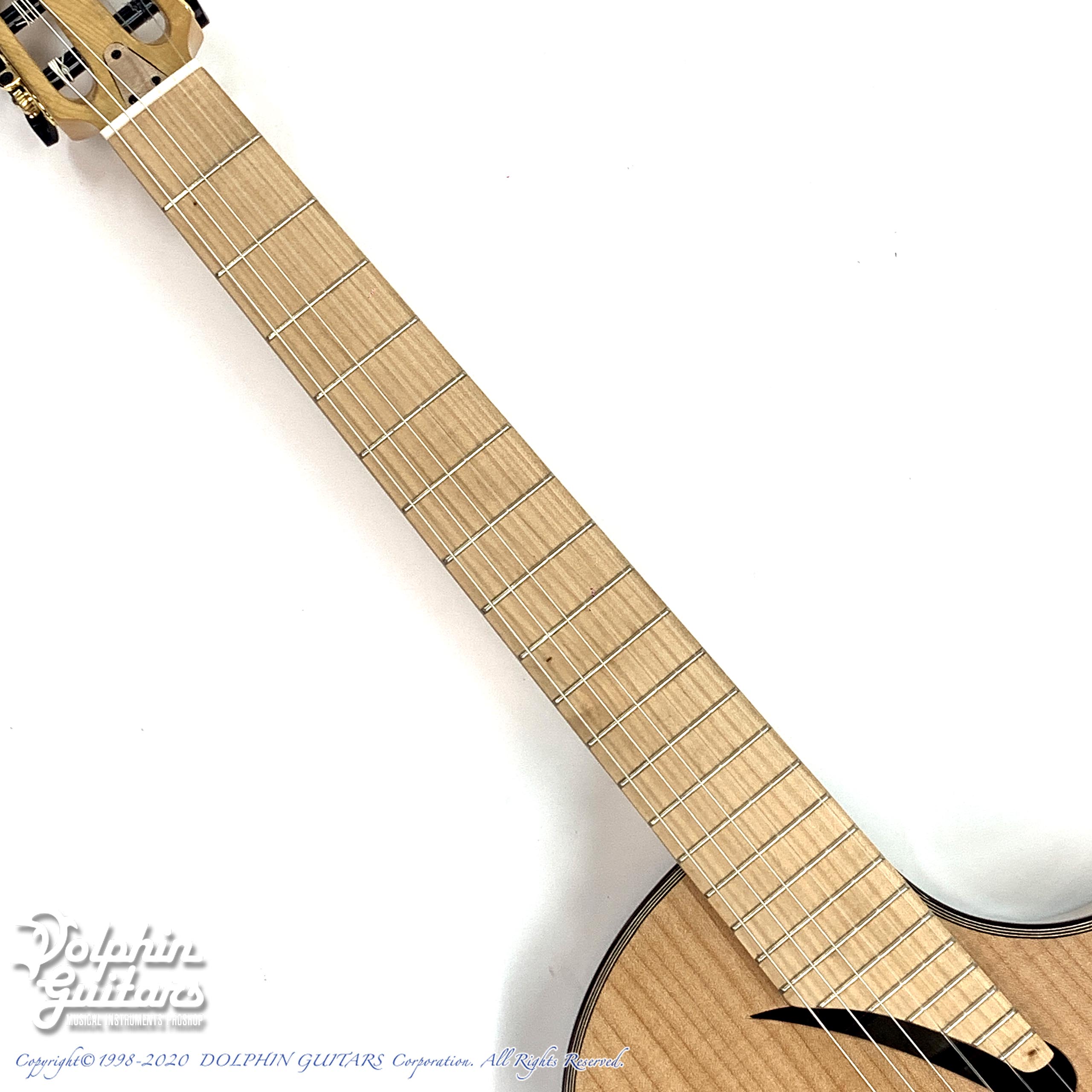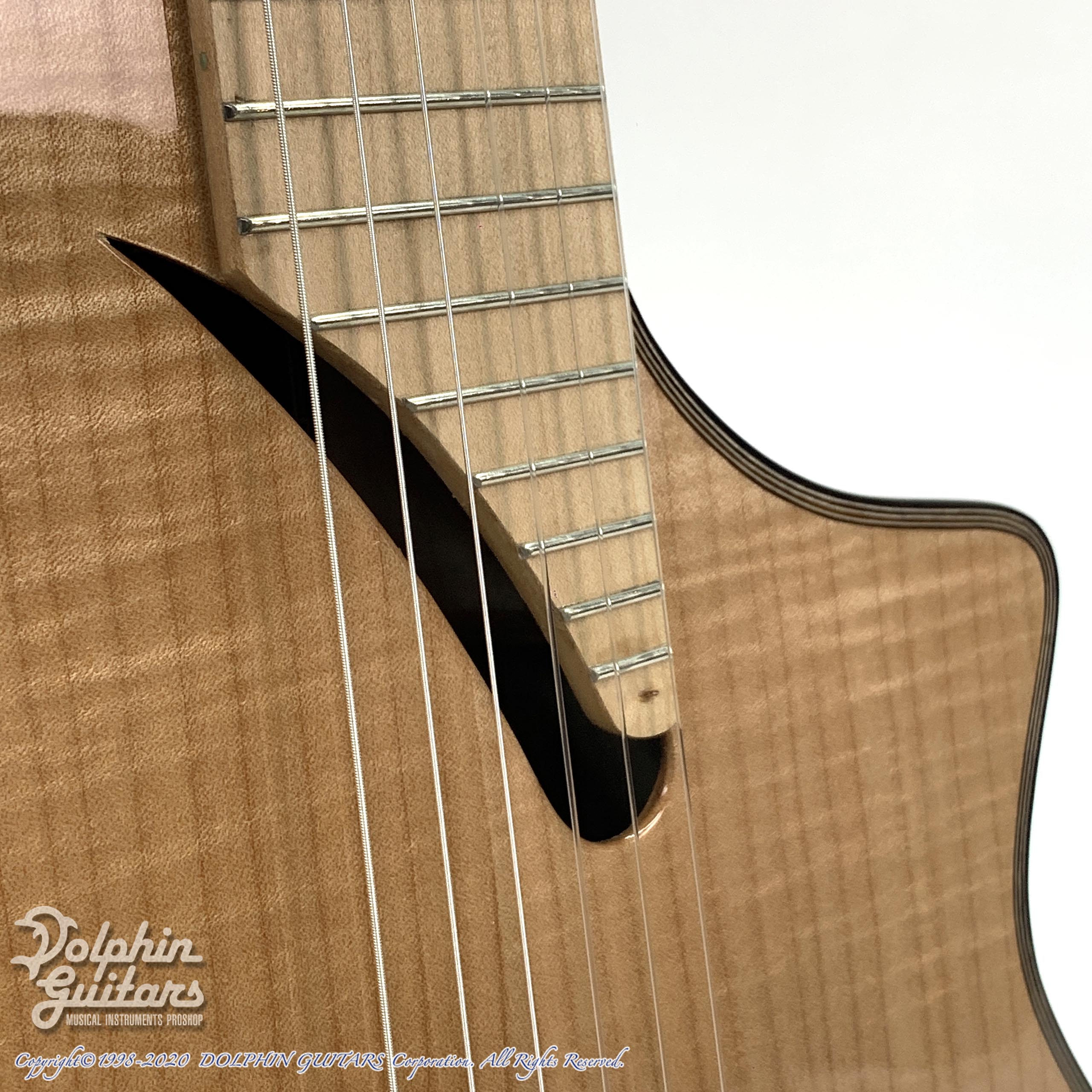 ここまでとことんメイプルのみを使用したギターも珍しい!ワントーンでデザインされた美しいルックスです。印象的な薄いボディは音のレスポンスが良いだけではなく、ハリのある生音も十分な音量。このスタイルのギターでは気になる"弾き応え"がしっかりと味わえます。