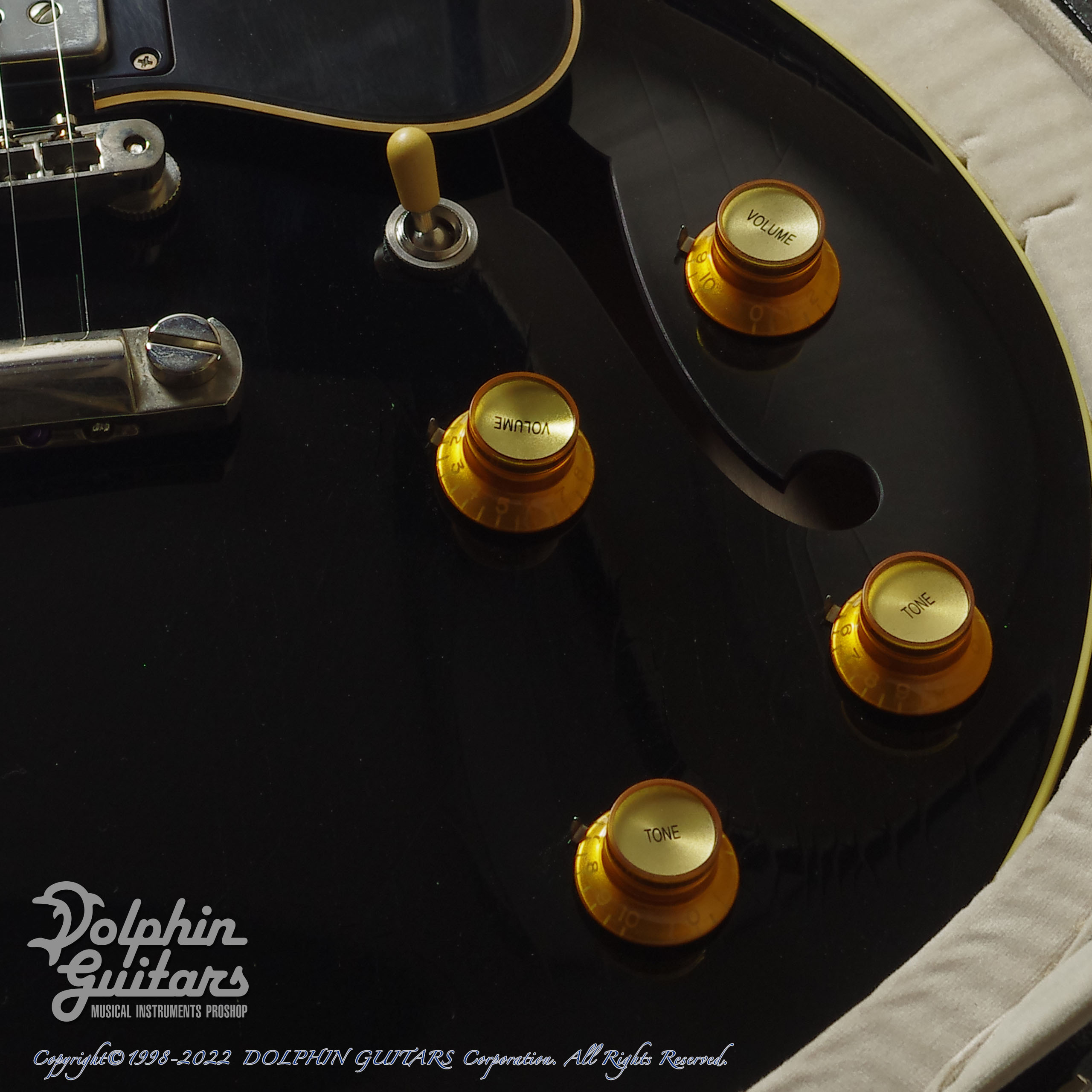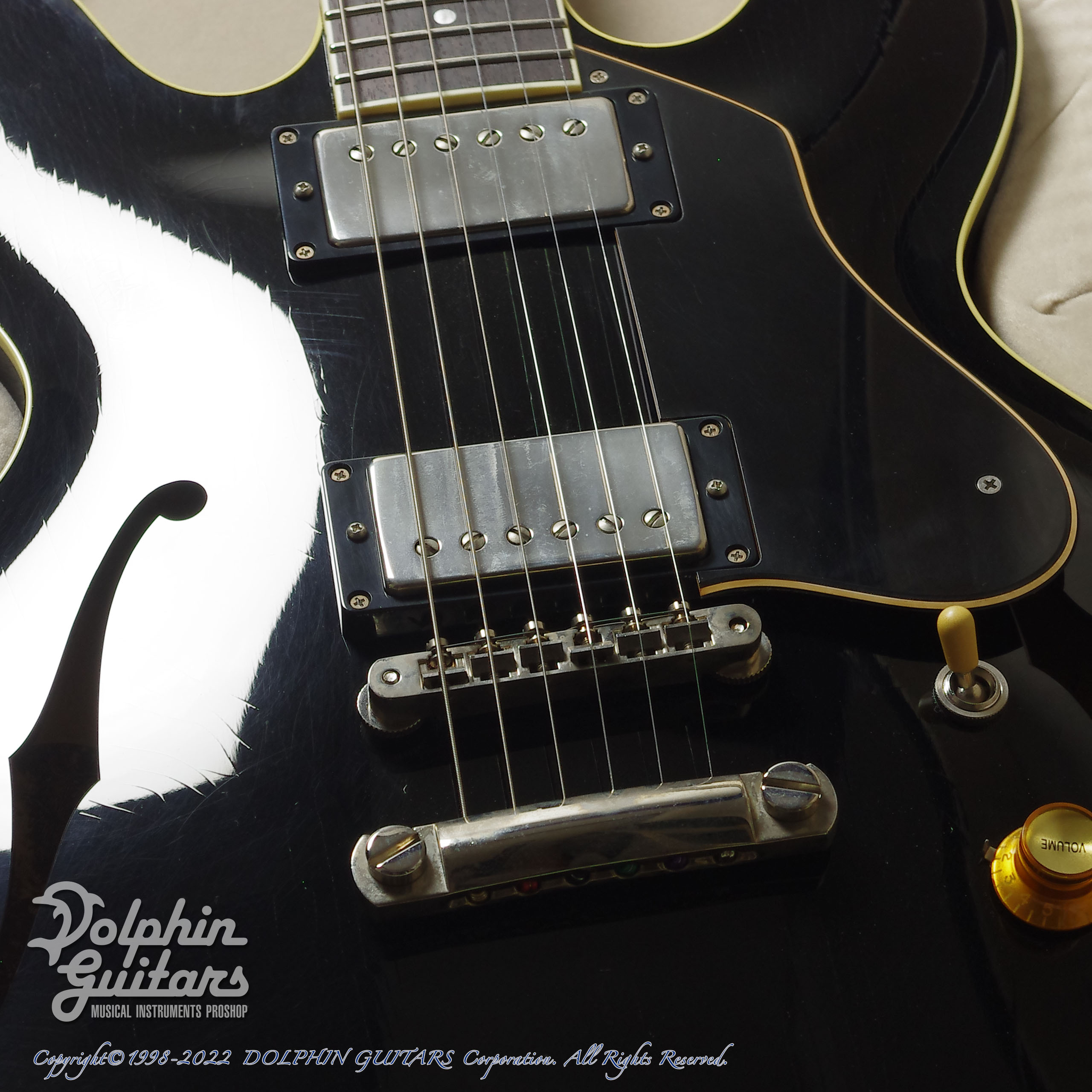 3キロを下回るこの軽さ、従来のI-35と比較してもその軽さは明白で、木材のセレクトやラミネイト構造の違い、PUやコンデンサーまであらゆる部分でヴィンテージを意識したスペックとなっております。PUはヴィンテージシリーズ用に製作されているスローバックが標準。ネックグリップも厚みを僅かに薄く仕上げております。