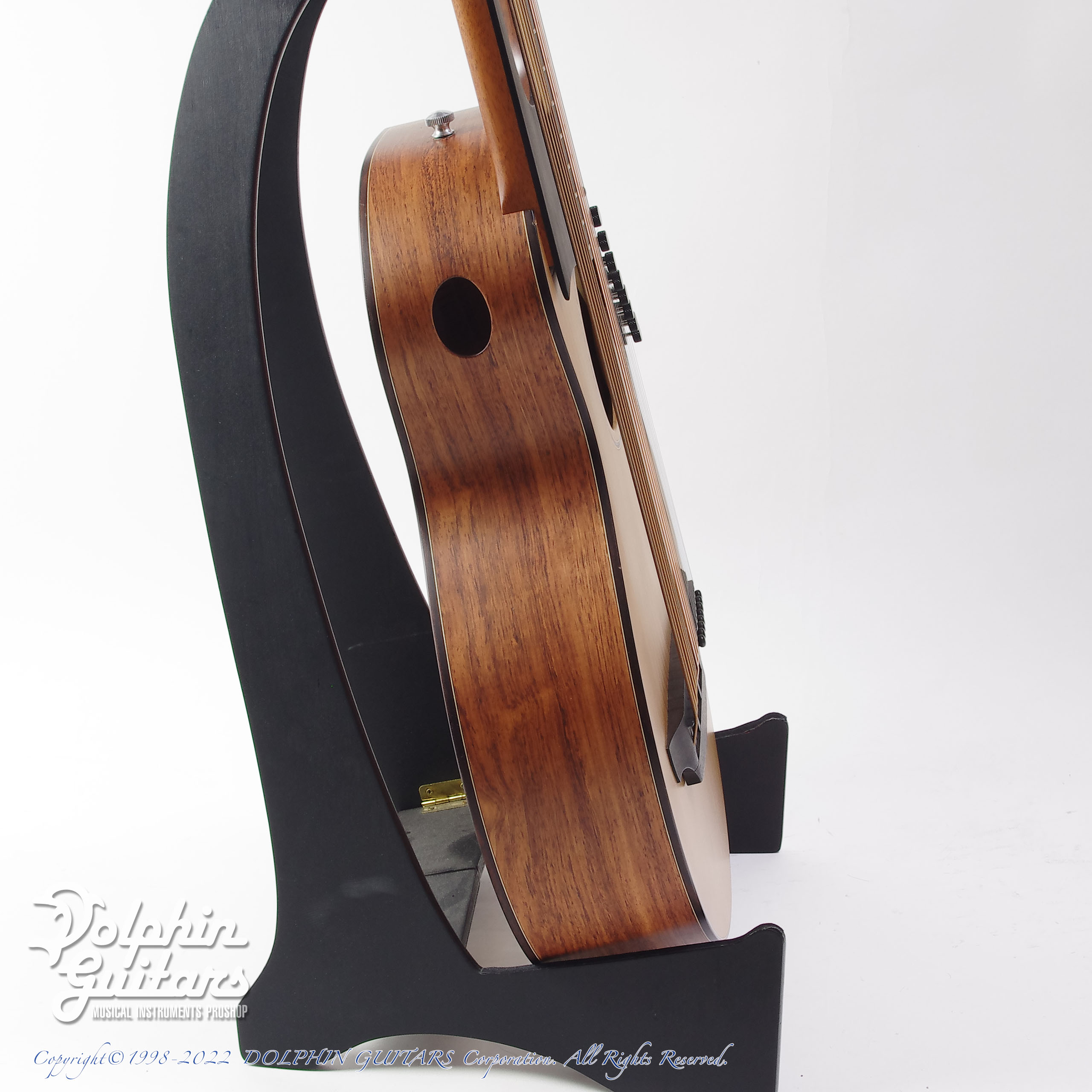 シダートップにホンジュラスローズの組み合わせからなる、ややダークで重厚なサウンドを響かせます。サイドサウンドホール仕様により、弾き手のモニターとしての効果や、メインのサウンドホールとのステレオ感もお楽しみいただけます。またPUシステムはアンダーサドルPUとコンデンサーMicのデュアルシステムが標準搭載。このAnthem SLがまた素晴らしいバランスと音色を生み出し、本ギターにマッチしたPUシステムであります。興味を持たれた方はぜひお試しください。