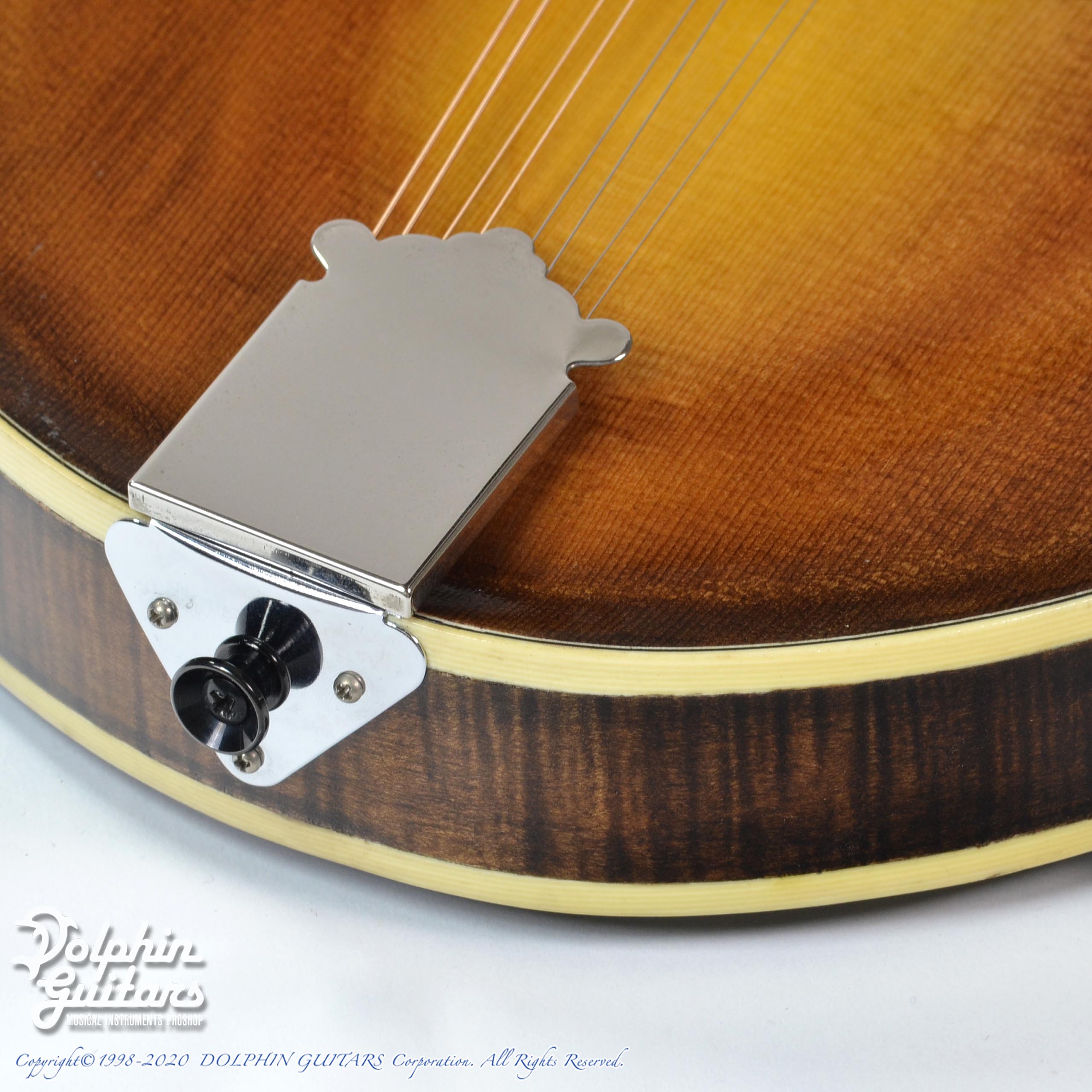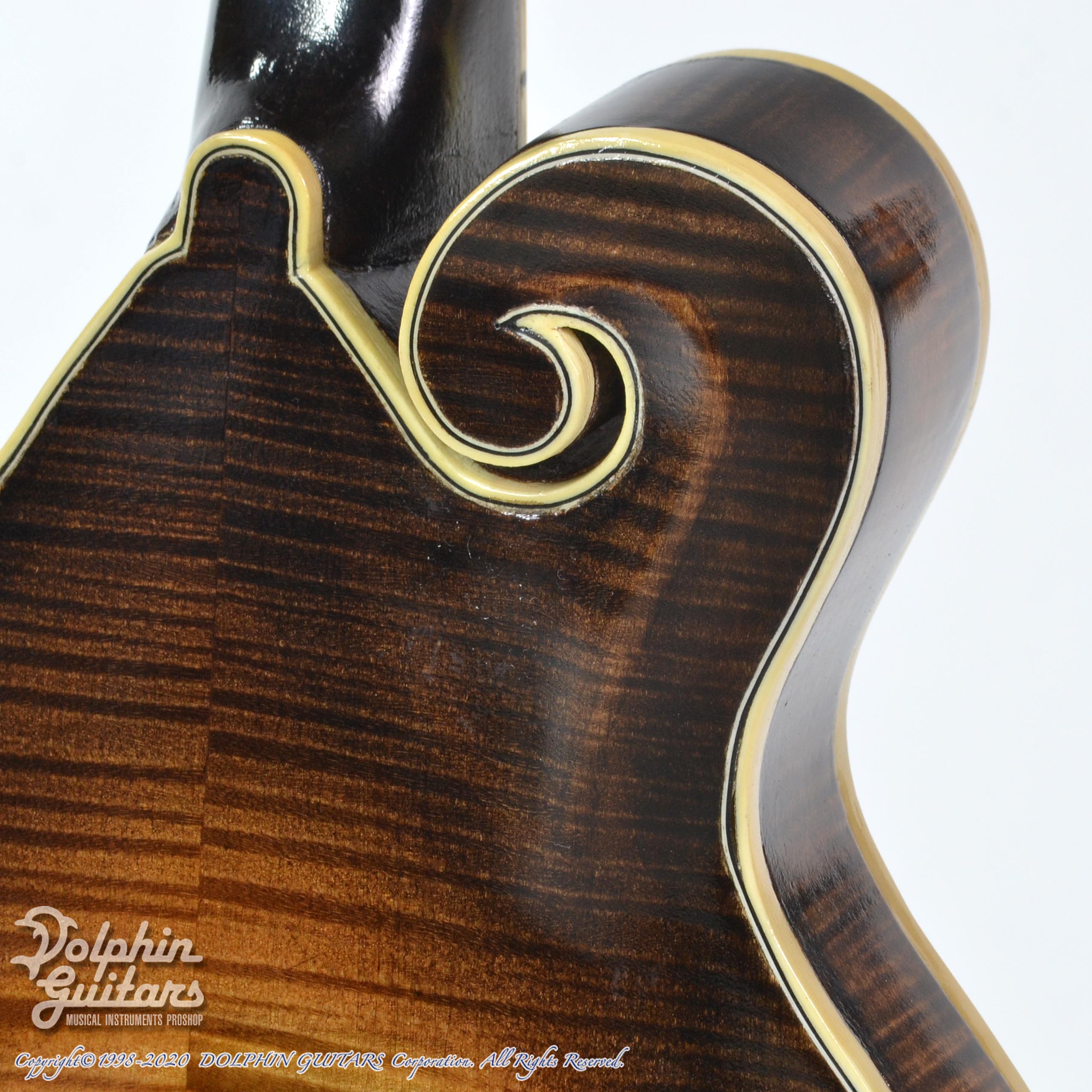 トップとバックは削り出しで製作されており、トップの強烈なリカーブは手工マンドリンならではなデティールと言えます。精密な工作精度で作り上げた、、、といった感じではございませんが、良い意味で大らかでザックリとした仕上げは、愛嬌を感じます。