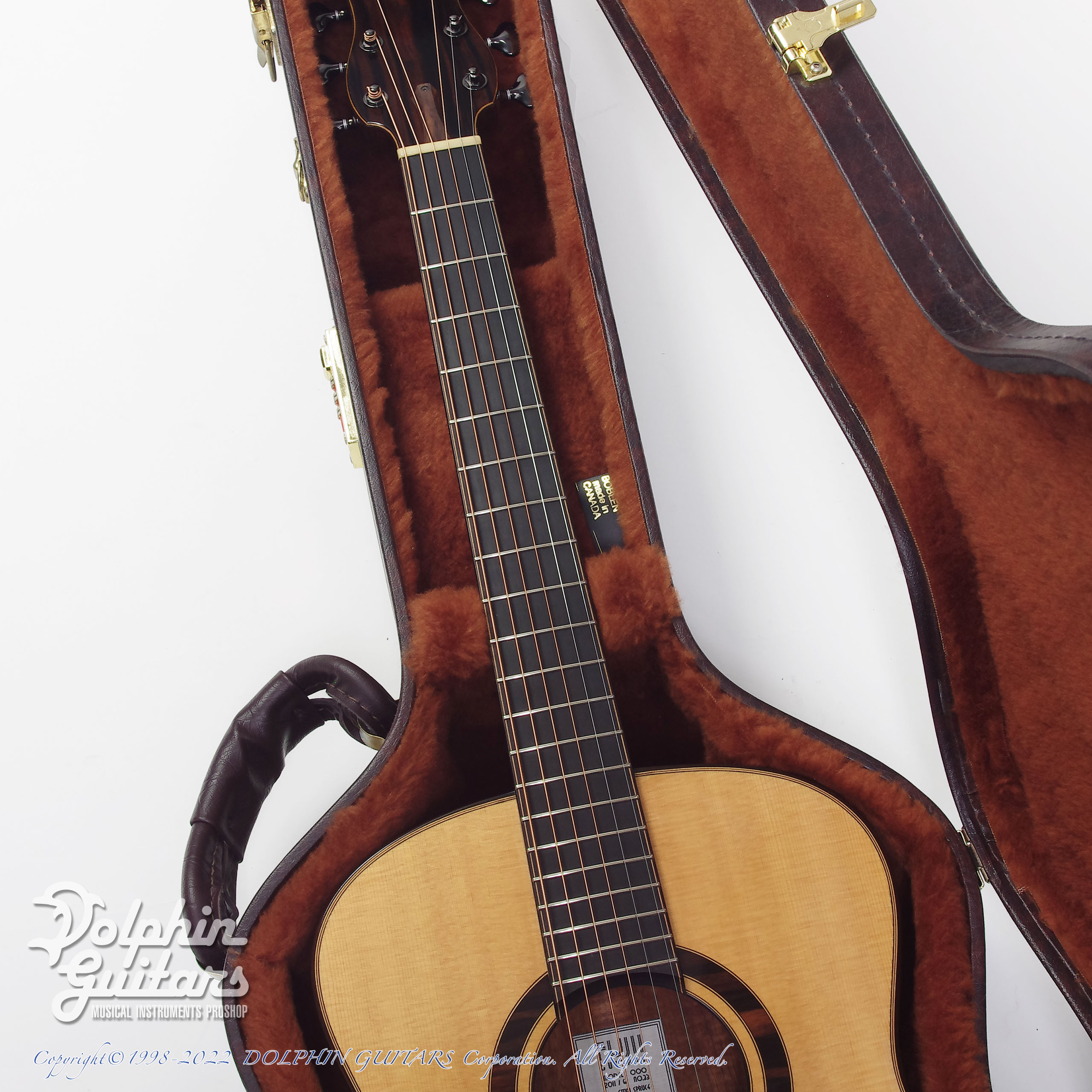 製作されてから10年が経過してますが、素晴らしい安定感とコンディションの良さが見られる個体で、目立つ傷もなく美品であります。PU取り付けやストラップピン装着といった改造履歴もありません。弦高は6弦12F上2,3mm / 1弦1,8mmのセッティング、サドル高さもかなり余裕があり、理想的なネックアングルであります。ケースはオリジナルのボブレン ハードケースが付属します