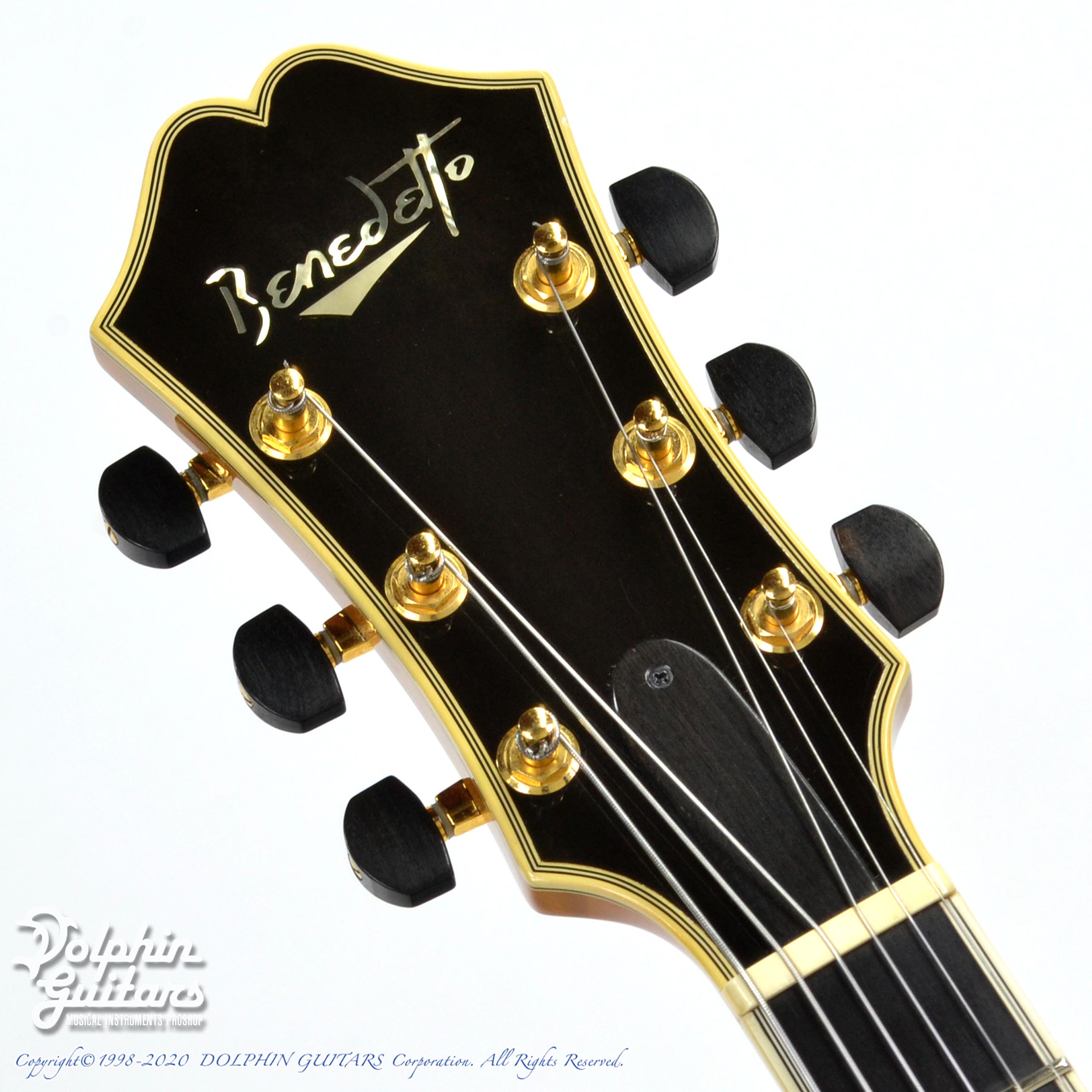 マスターグレード・スプルース・トップ、マスターグレード・フレイム・メイプル・サイド&バック、メイプル3pネック、エボニー指板、駒&テールピース、シャーラー糸巻き、Benedettoオリジナル・ピックアップ。