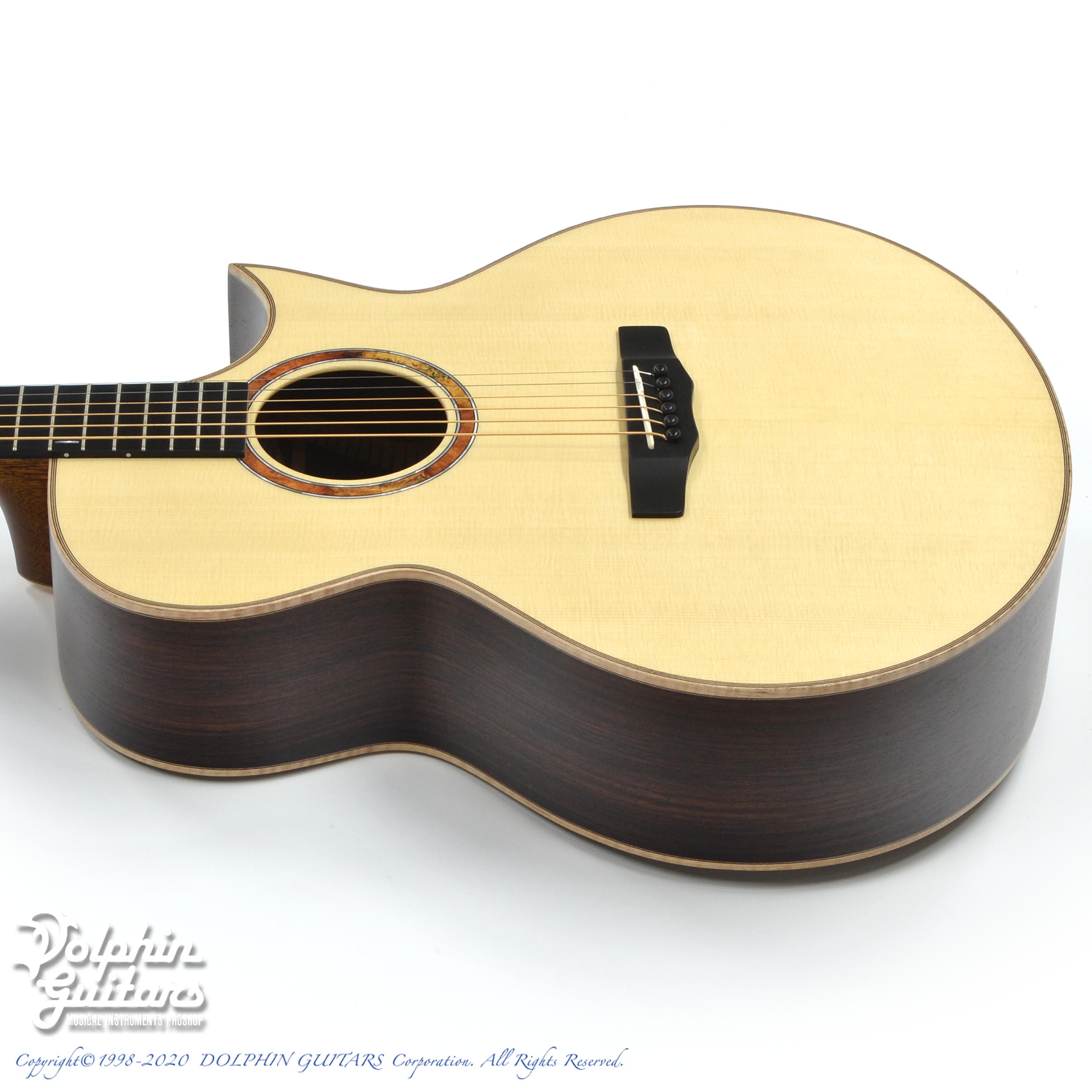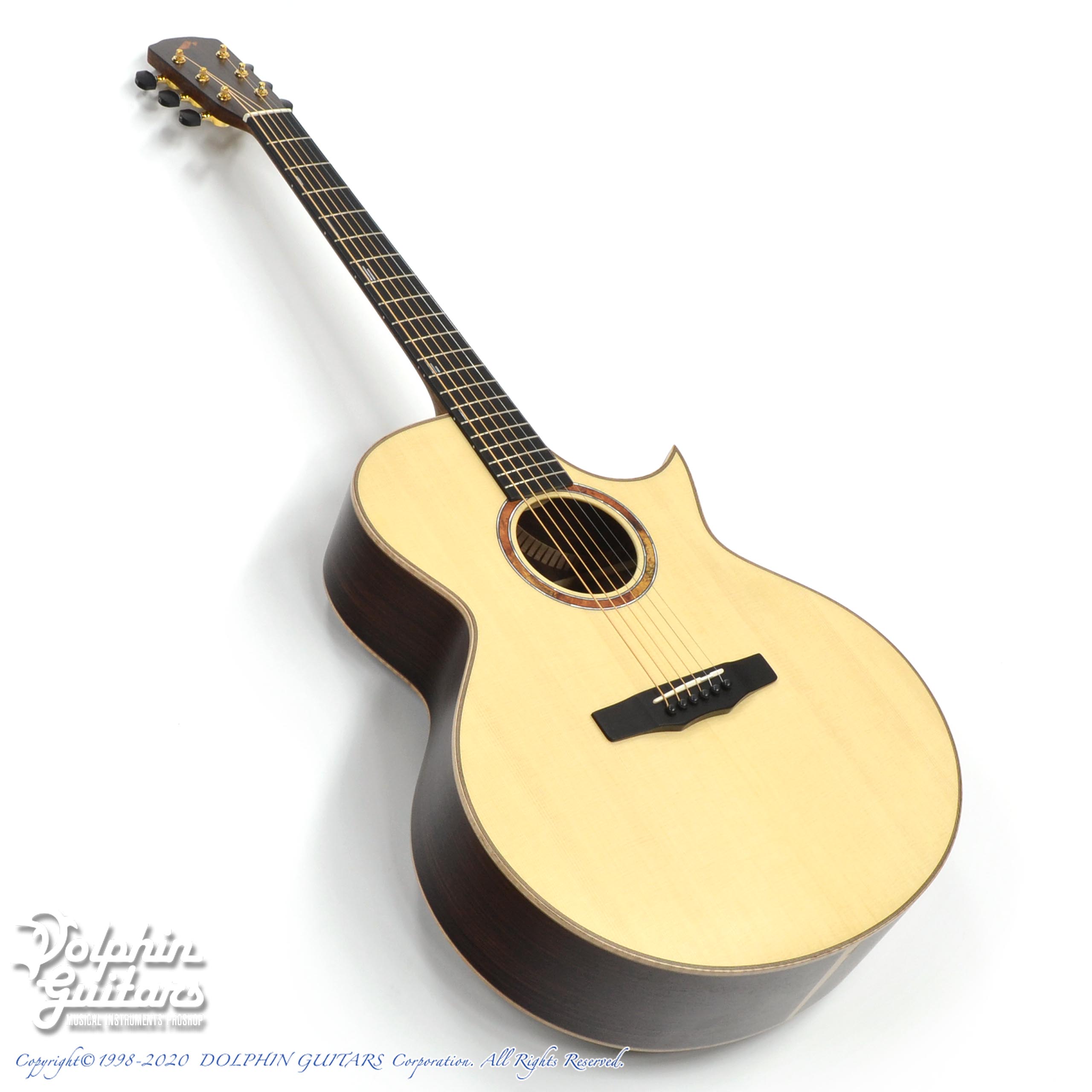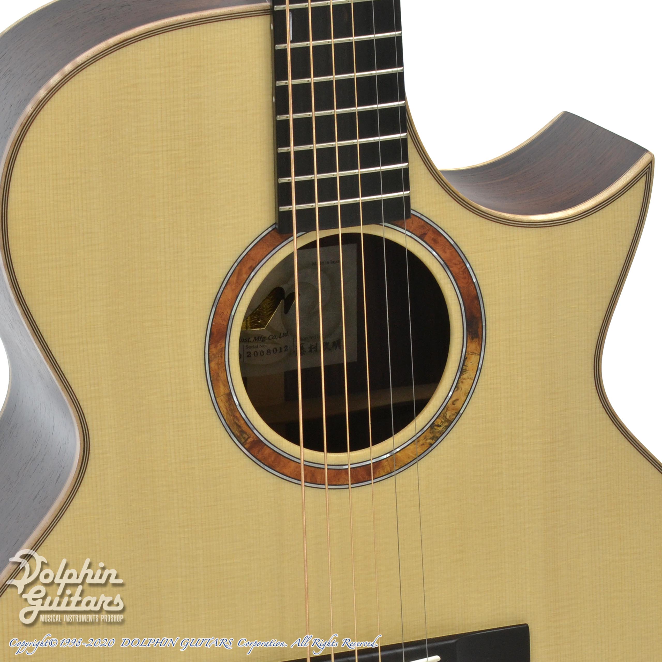 本器はそのバリエーションで生まれたSJスタイルをベースに、Hand Made Premiumラインにて当店が特注した【MORRIS x Dolphin Guitars】REVOシリーズ第2弾。フィンガースタイルを追求した、SJ-101 REVO、【限定6本生産】。