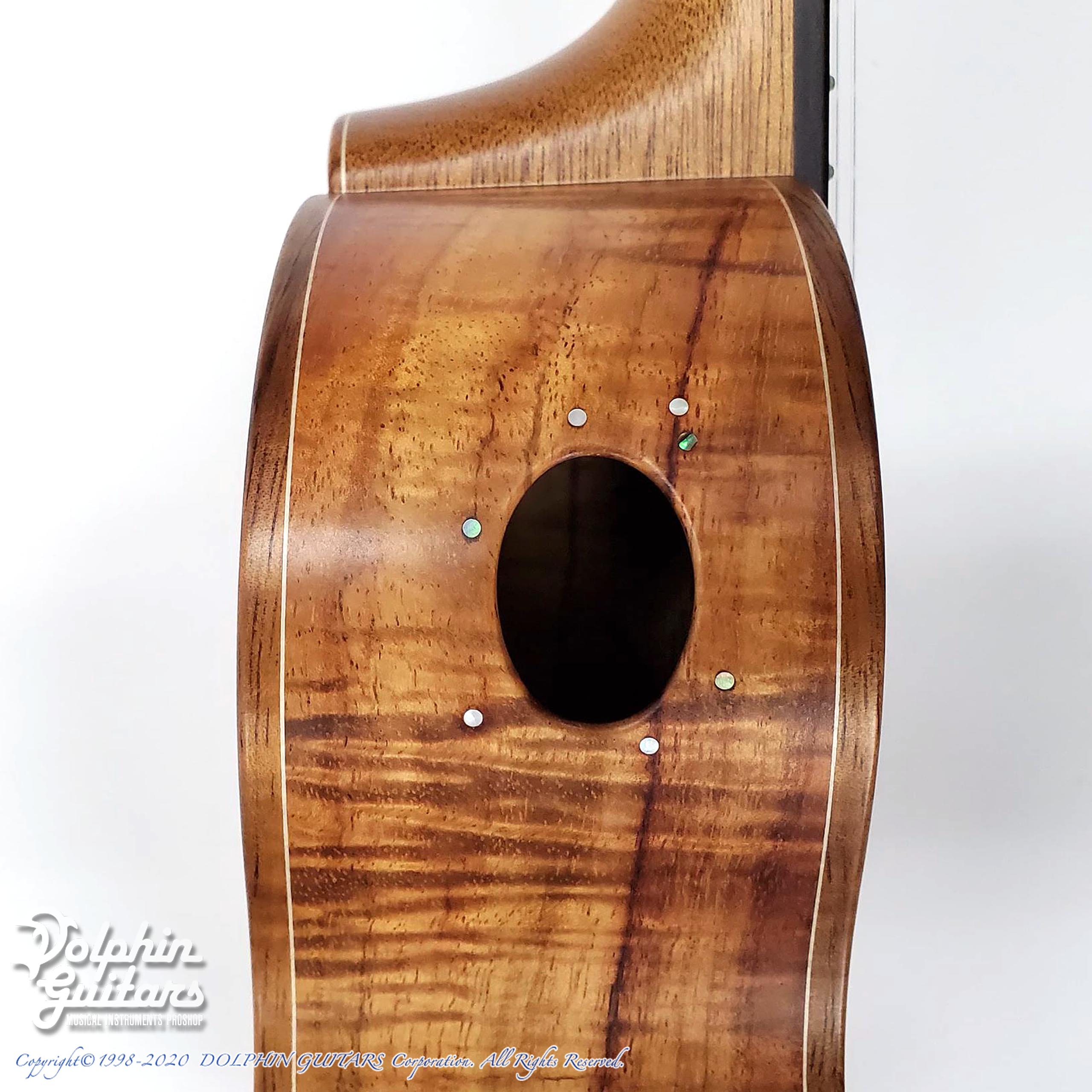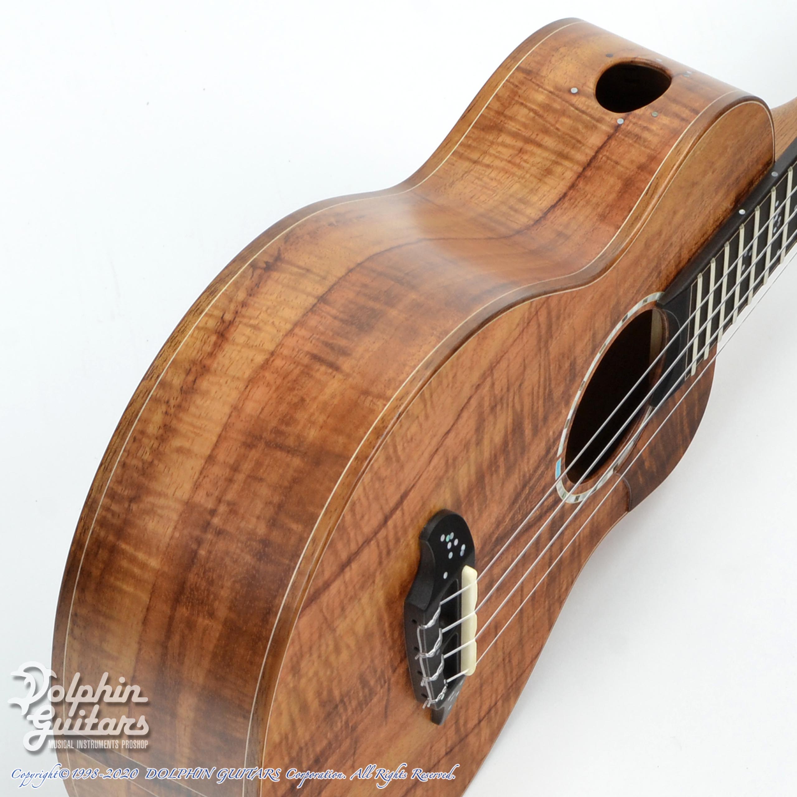 ハイグレードのハワイアン・コア・ボディ、ホンジュラス・マホガ二ー・ネック、エボニー指板&ブリッジ、スロッテッド・ヘッド、コア・バインディング、ハワイアンコア・ピックガード、ゴトー糸巻き。