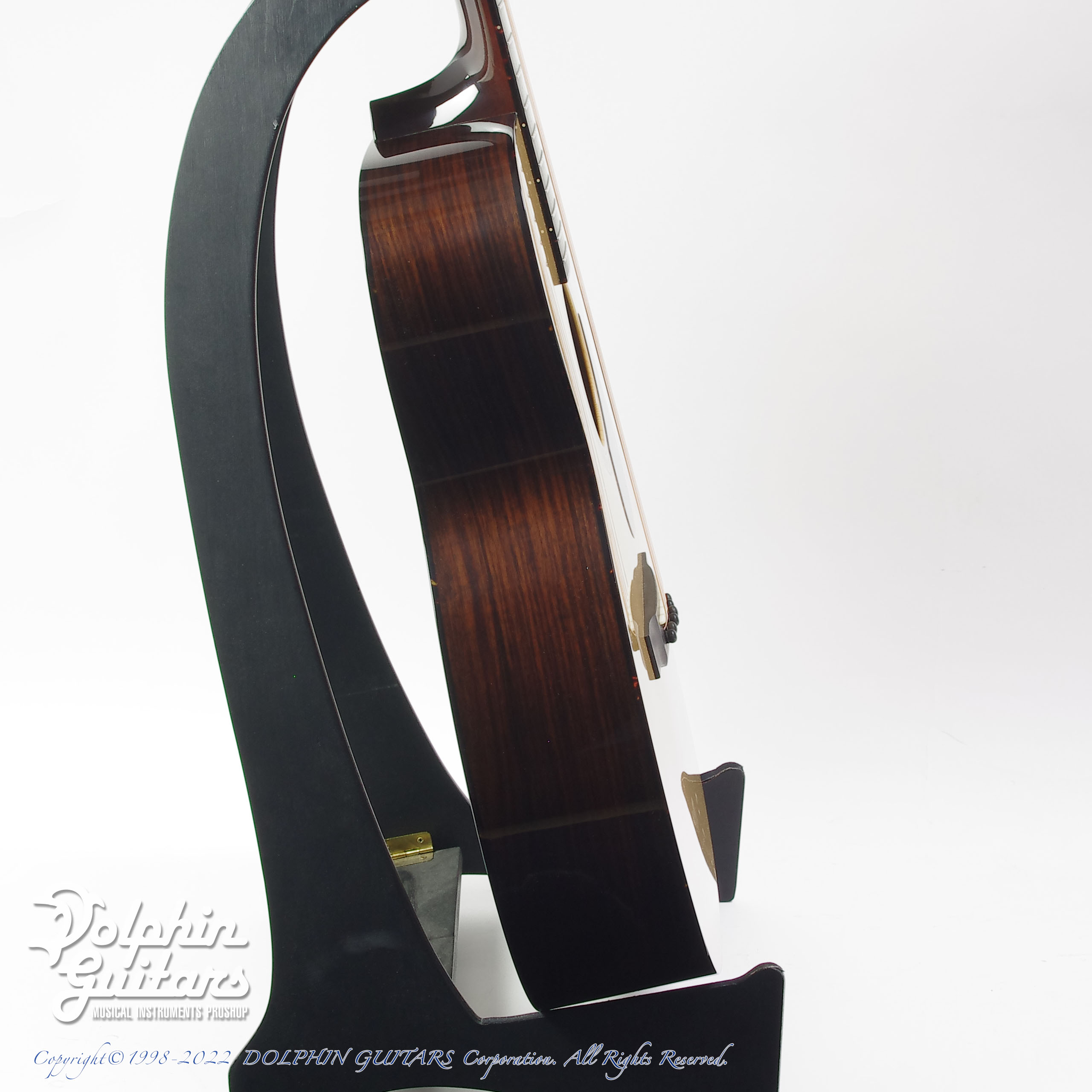 カスタムオプションであるイングルマンスプルースや44,5mmナット幅、カッタウェイの他にもバインディングオプションが加わっており、従来のスタイル3はアイボロイドバインディングでありますが、本器はスタイル1同様のベッコウ柄バインディング仕様となっており、ルックス的にも大きな違いが見られます。*ボディバインディングのみでなく、指板とヘッドにもバインディング付きとなるのがスタイル3であります。