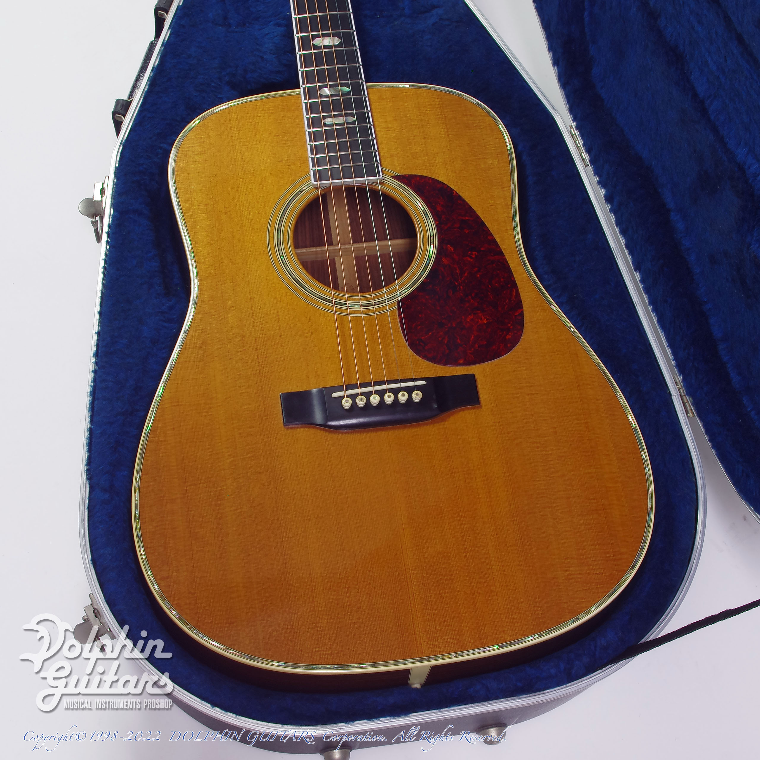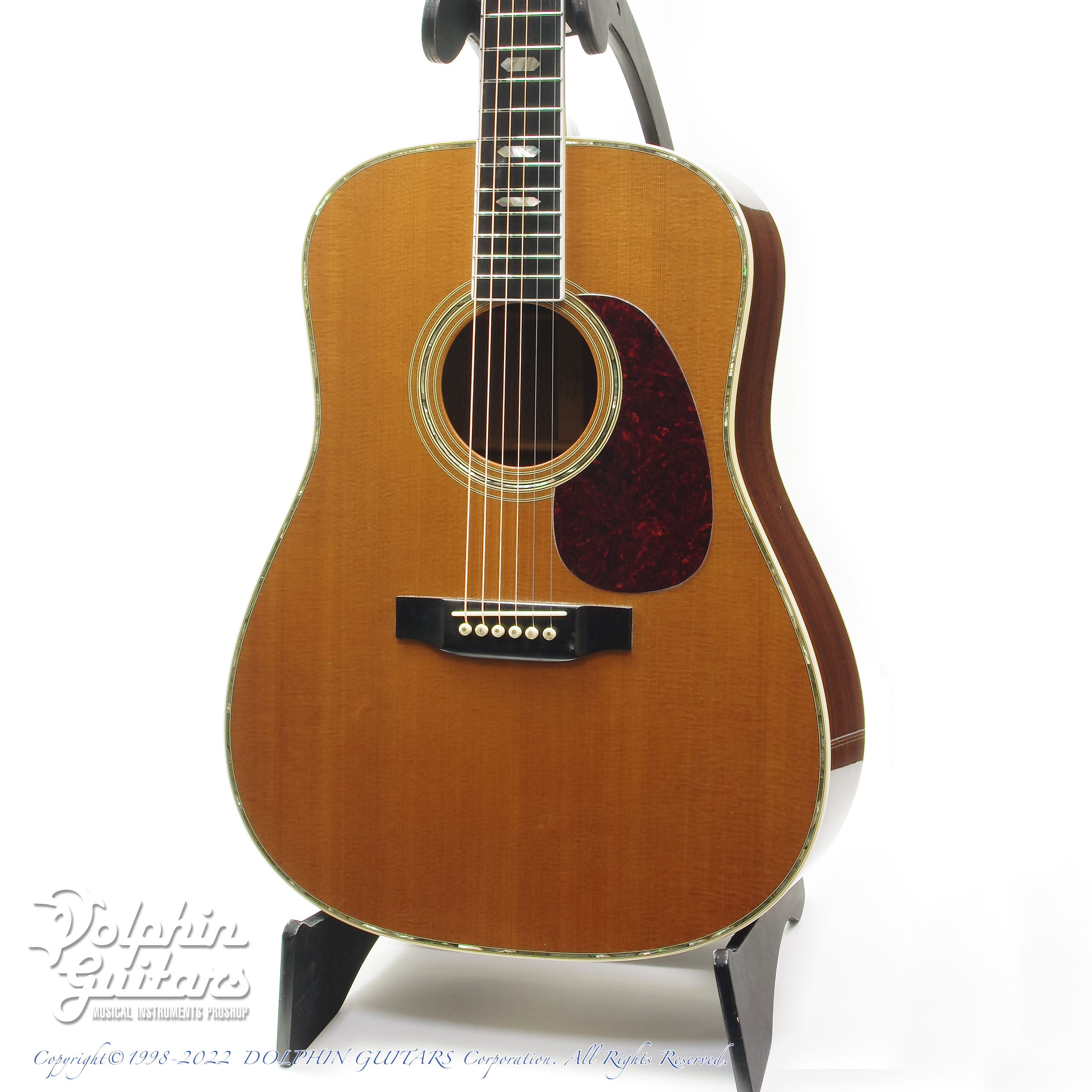 高価なD-45を探すよりD-28のネックにD-45のような飾りを付けたいという需要(実際にこれを注文する人とその仕事を受ける外部の職人も現れた)から生まれたD-45とD-28の中間的モデル。図太いサウンドに色鮮やかなトーンが交わり、上質なサウンドを奏でる素晴らしい個体です。