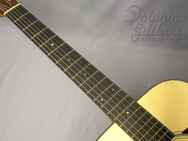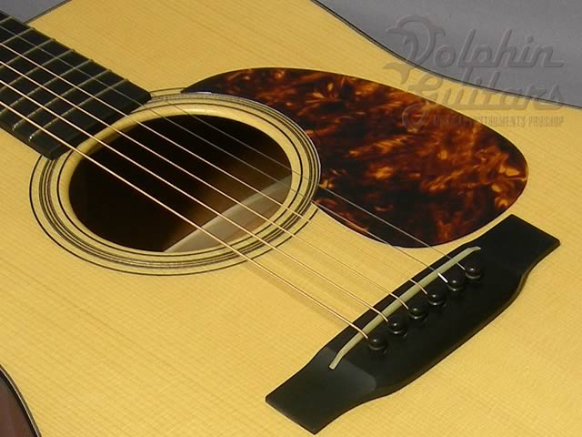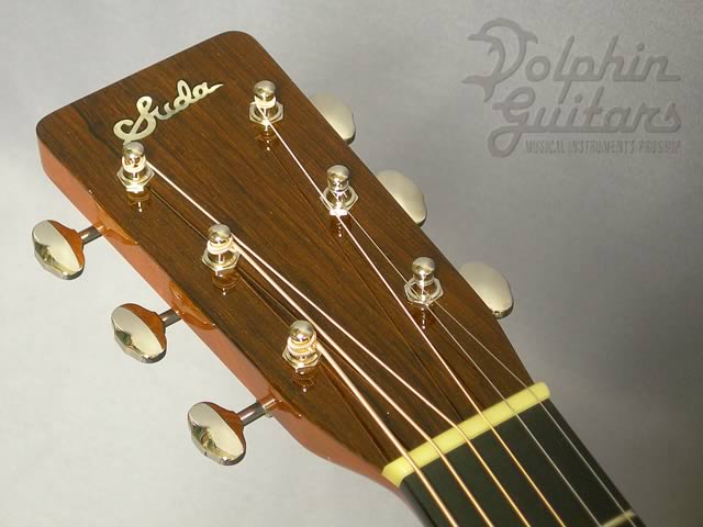 ブルー・グラスの本場アメリカを中心に評価が高く、製作数本も少なく、また製作したそのほとんどはアメリカのプレイヤーをに渡ってしまい、国内ではほとんど見かける事が無いSUDA GUITAR (須田ギター)。 本器は、プリ・ウォー・マーチンD-18をを再現すべく製作されたDreadnought Style 18。 ハンドセレクト・ワイドグレイン・アディロンダック・スプルーストップ、ホンジュラス・マホガニーサイド&バック・・等基本仕様はもちろんですが、接着材には膠(ニカワ)、塗装にはニトロセルロース・ラッカーが使用されとにかく細部に渡り拘りを感じさせる仕上がりです。 工作制度の高さは言うに及ばず、多くの同様のスタイルのギターがある中で、全音域に渡っての音の太さ、レスポンス、存在感・・・その鳴りは際立った物があります。 弾けば”鳴る”と感じるサウンドでは無く、芯のある、ボディー全体から押し寄せる様なサウンドとでも言いましょうか・・・ 本場アメリカで鍛え上げられた”本物”のサウンド、是非ともお試し頂きたい逸品です。 <須田ギター工房> トラディショナル・スタイルを基軸にフラット・トップ、フルアコ、ドブロ、エレキまで幅広く製作出来る技術を持っていますが、現在はフラット・トップを中心に製作しています。 アメリカで行われるプロ・ブルーグラス・ミュージシャンを対象とした展示会IBMA等でも非常に高い評価を得、本場アメリカで人気を博しています。 その頑固なまでの材への拘り、製作方法への拘り、探求心は如実にサウンドに現れています。 <SUDA GUITAR使用ミュージシャン> ・John E Miller JD.Crowe&new south、The Lonesome River band等多数のブルーグラスバンドのバックを務め、Valerie Smith & Liberty Pikeと全米ツアーを共にしたギタリスト。 ・Kenny Smith ブルーグラス・ギタリストであり、COLLINGSともエンドース契約をしているケニー・スミス( IBMAでベスト・ギタリスト賞を幾度も受賞したブルーグラス・プレーヤー )がステージ、レコーディング等で使用しています。 <当店スタッフより> ここまでの音を出すルシアーが国内、それも地元大阪とは正直驚きです。 どうしてもマーチンやコリングスと比べられてしまうこのスタイルに敢えて拘るのは、自信の現れでもあるでしょう。・・・褒めすぎ?いえいえ一度お試しを。
