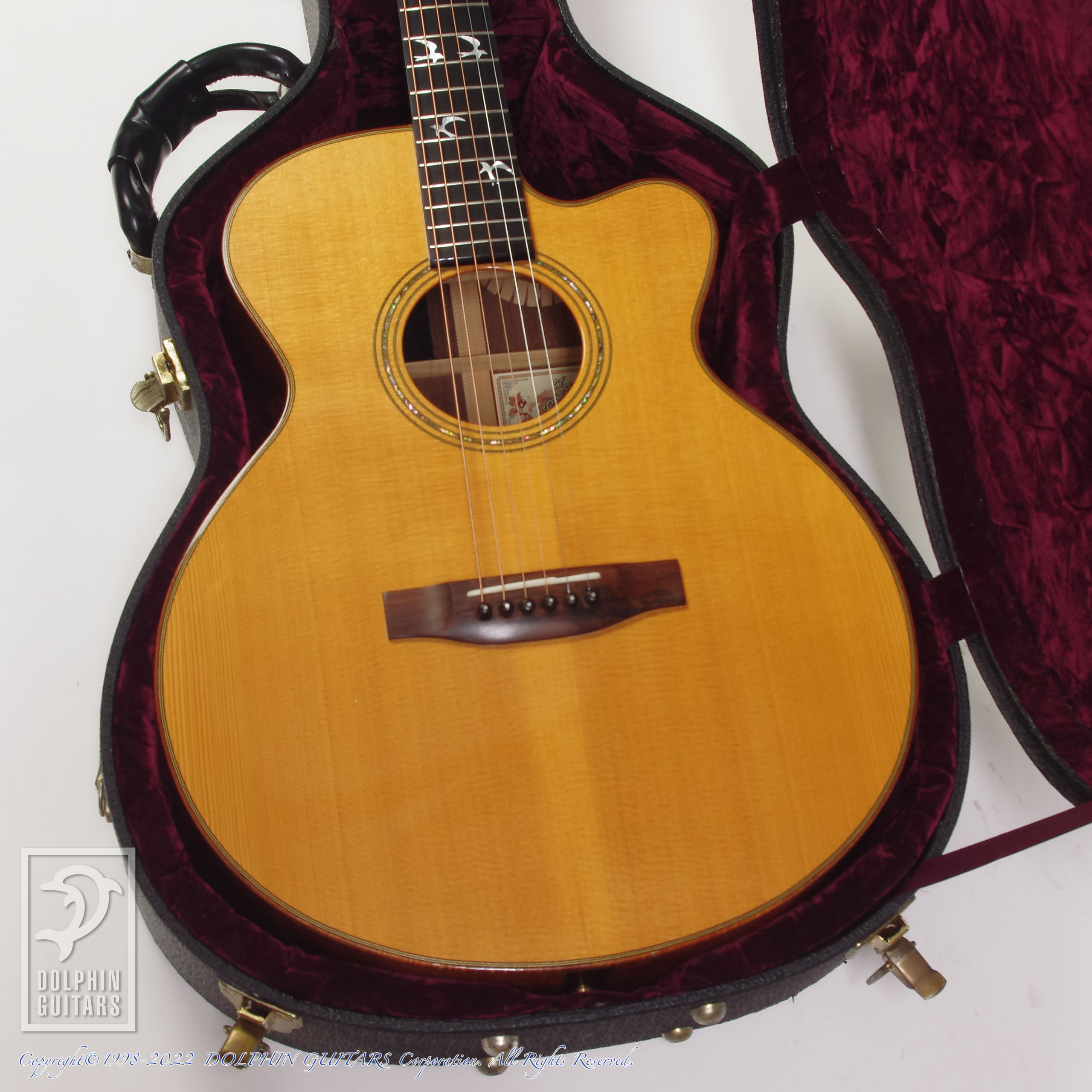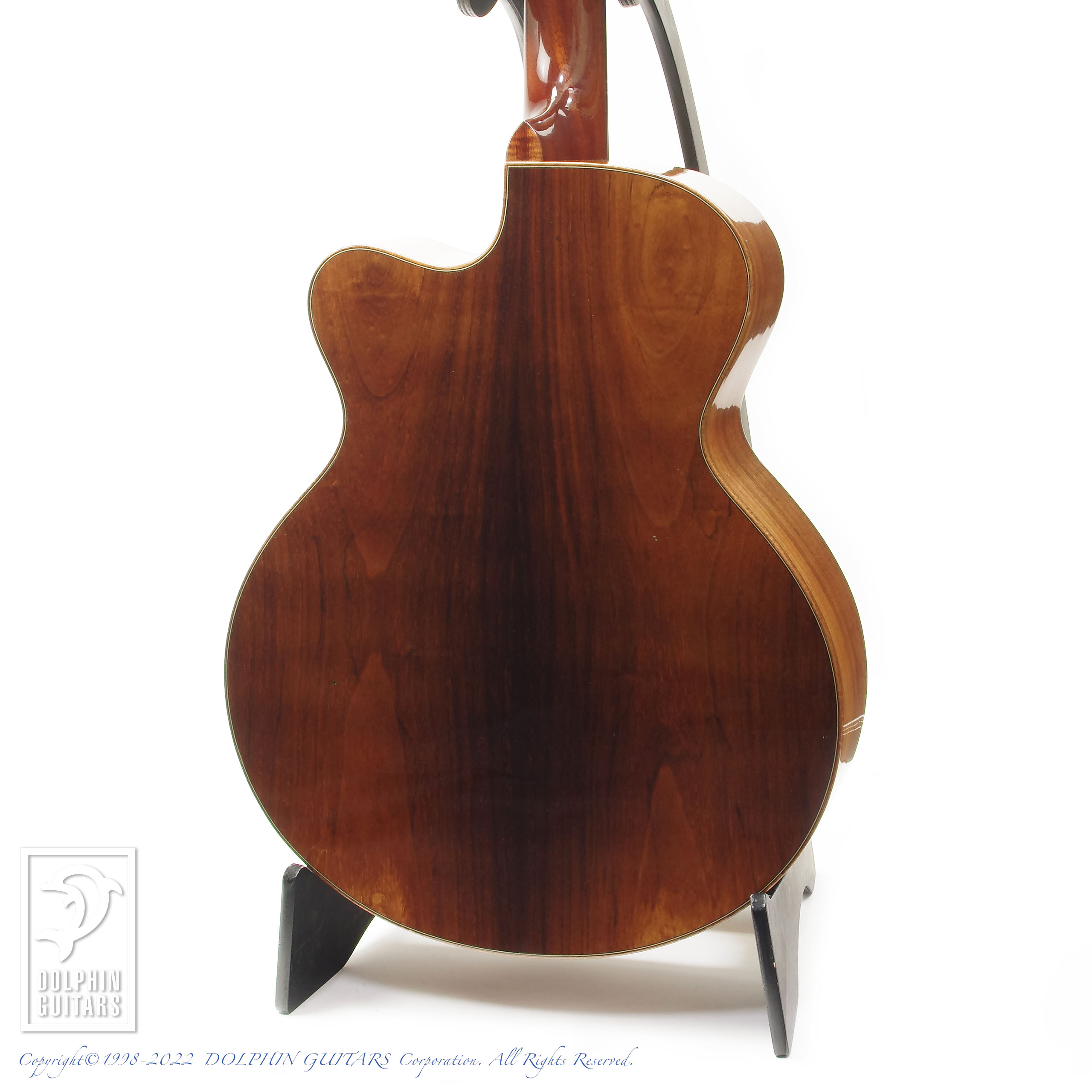 サウンド面ではローミッドの厚みや高音域のキレの良さなど、ハカランダ材の特性をしっかりと感じられる太くしなやかなサウンドであり、ジャーマンスプルースの上質なトーンと相まって美しいサウンドを奏でます。オープンチューング、またはカポタストを装着時のサウンドなど、ソロスタイルとしても高い表現力を持った素晴らしいギターであります。
