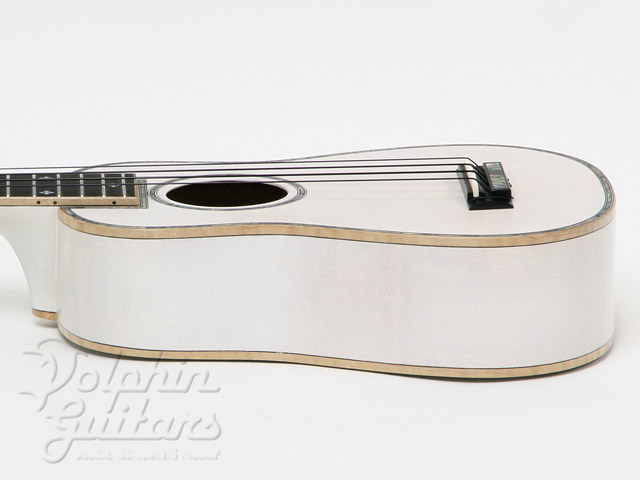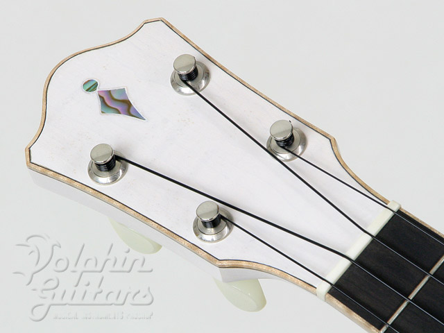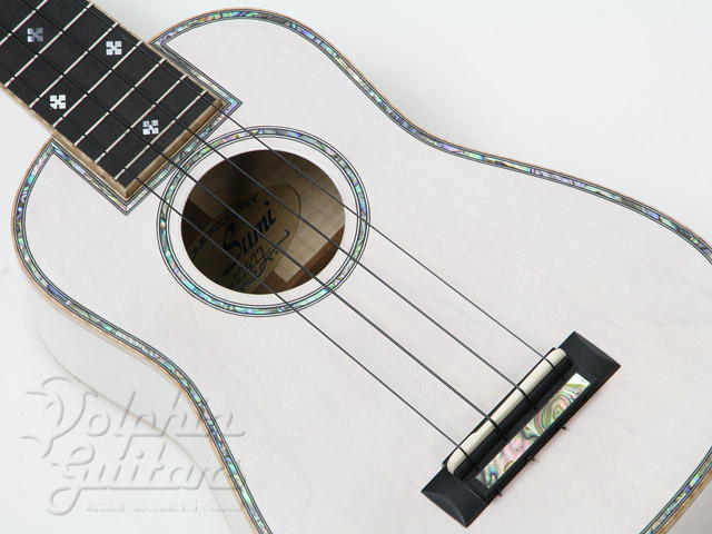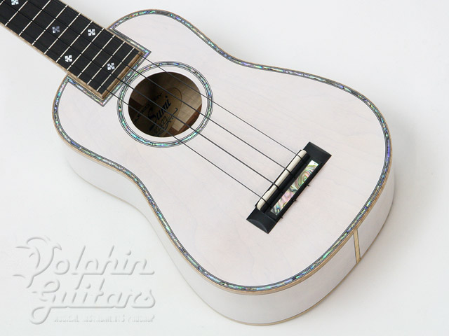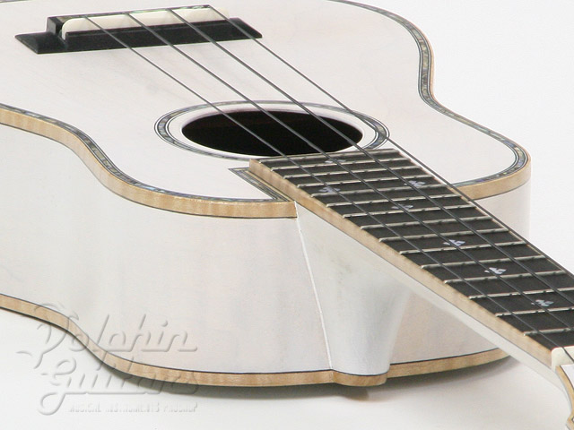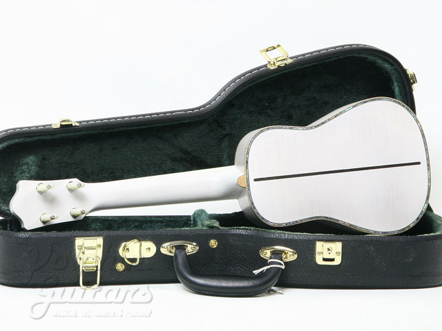 本器は当店カスタム・オーダー、シースルー・ホワイトカラーのウクレレ。