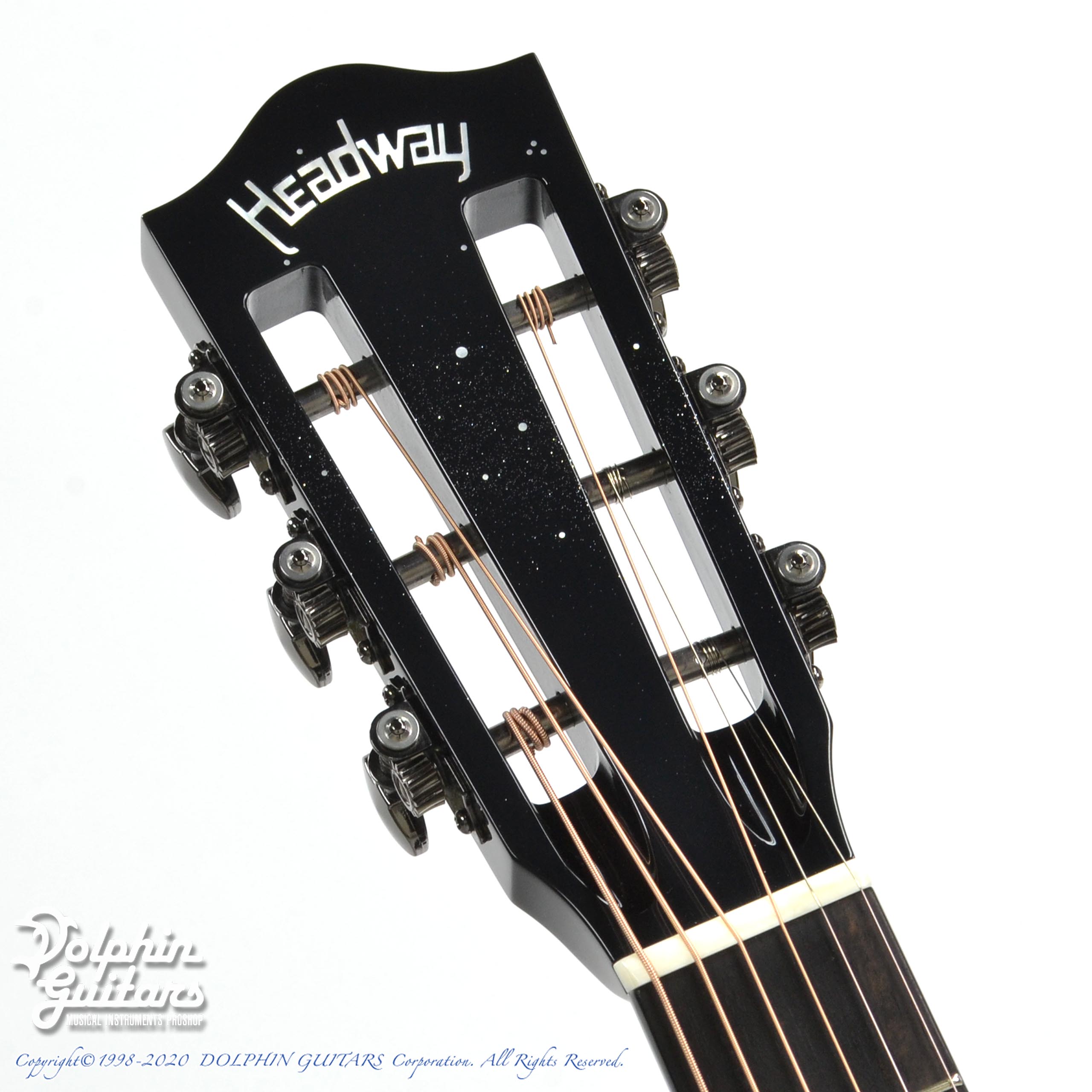 デラックス・モデルはヘッドに天の川をモチーフとしたラメの塗装を施し、指板の12フレット付近には、ボディの黒い塗装がより一層ひきたつ、水面に映る月のインレイが施されていて、ピックガードには幾何学模様をモチーフとしたヘッドウェイロゴをデザイン、ショーモデルらしいルックスが魅力。