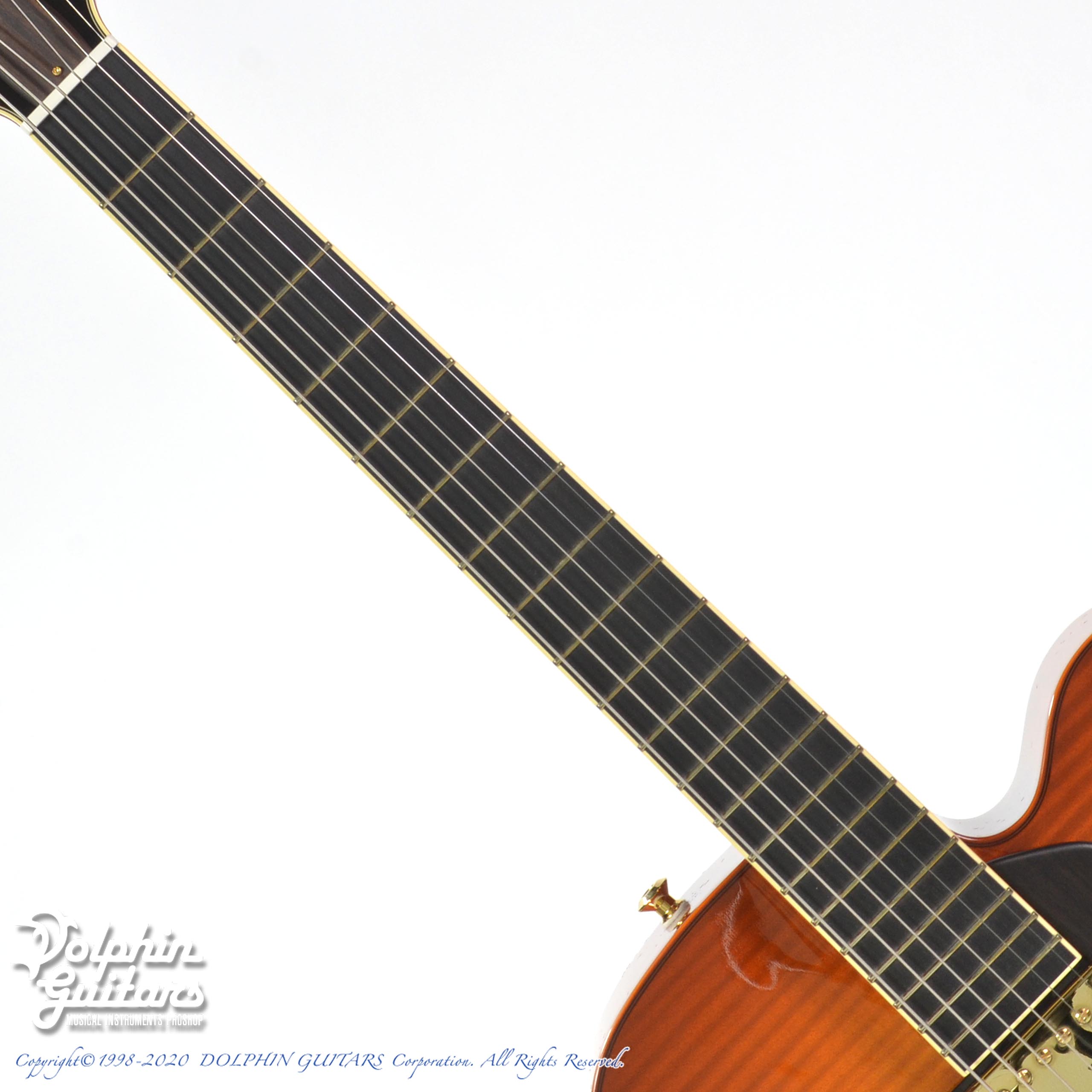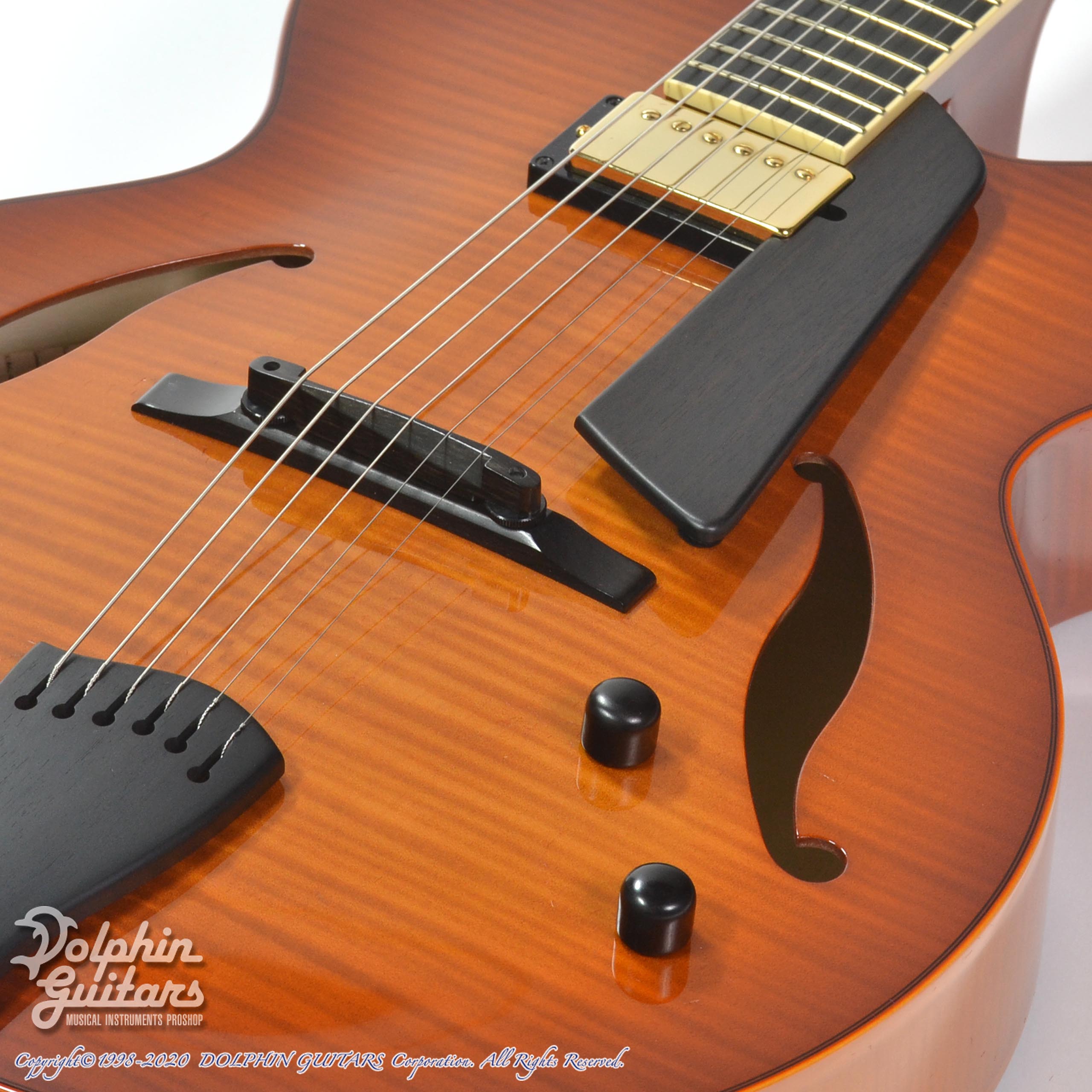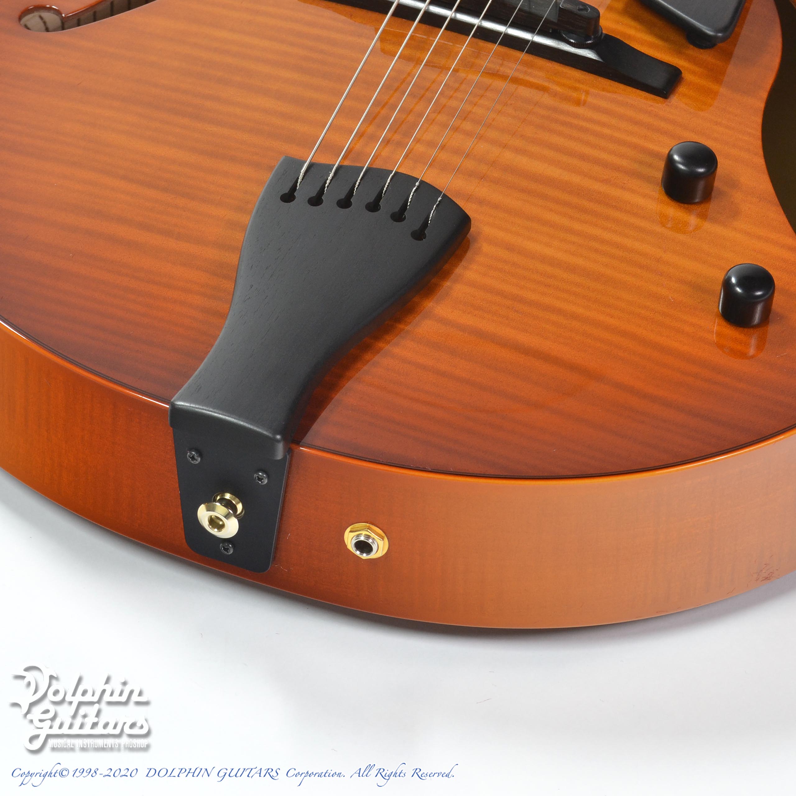 本器はベテラン・ギタリスト、ジム・ホールが愛用していたダキストのモデルをベースとし、ジム・ホールとサドウスキーが生み出したまさにJAZZギターの理想形とも言える、シグネチャー・モデル、The Jim Hall Model 。ジム・ホールと言えばやはりイメージするのはこのバイオリンバースト。