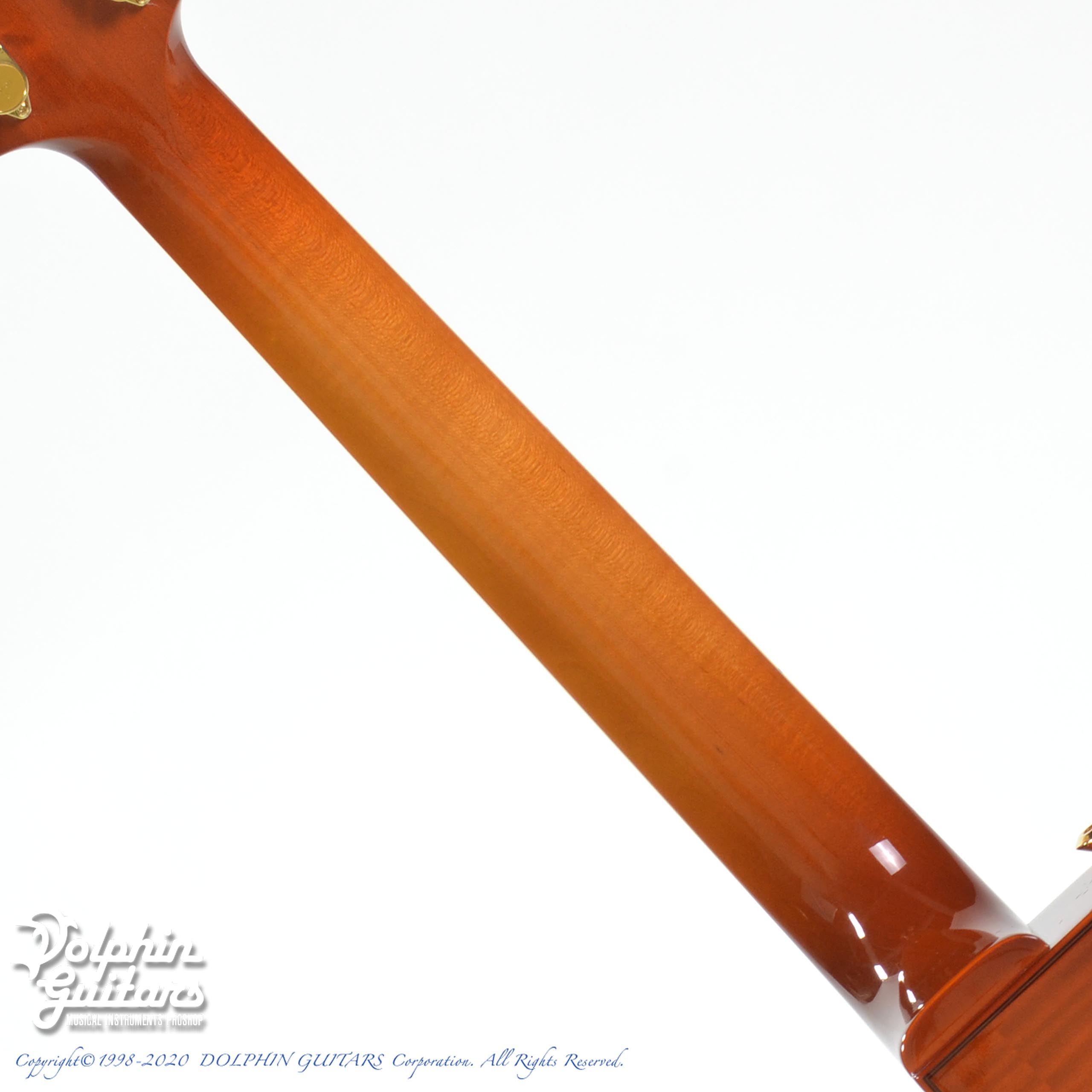 ラミネイト・フレイム・メイプル・ボディ、メイプル・ネック、エボニー指板&駒、エボニー・ピックガード、ゴトー糸巻き。