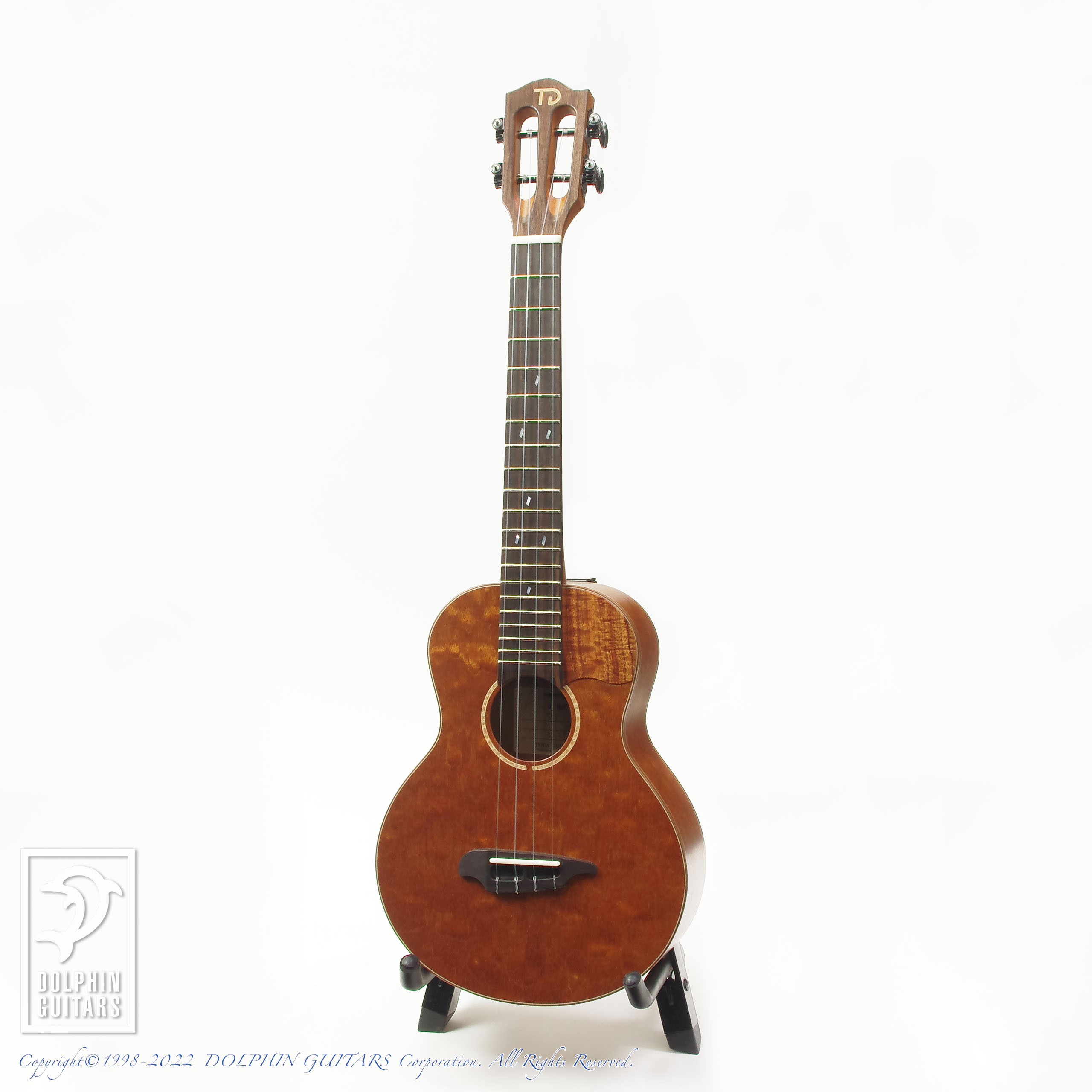 戸田氏はエレクトリックやアコースティックギター製作は元より、ナイロンギターやハープギター、多弦楽器などなど独創的な楽器を生み出す奇才です。中でも製作本数が多いのがウクレレ。主にコンサートサイズ、テナーサイズを製作。本器はテナーウクレレのカスタムモデル。