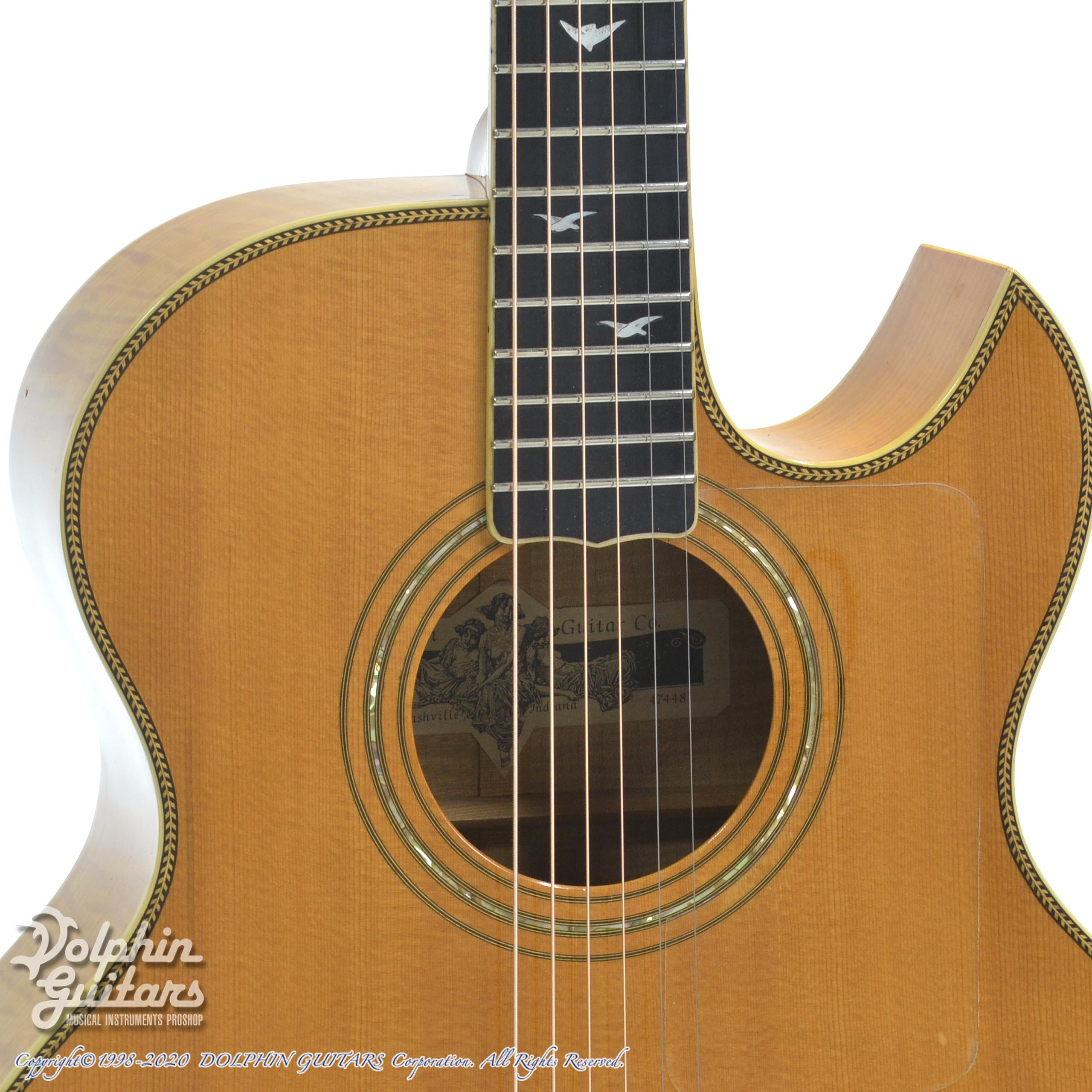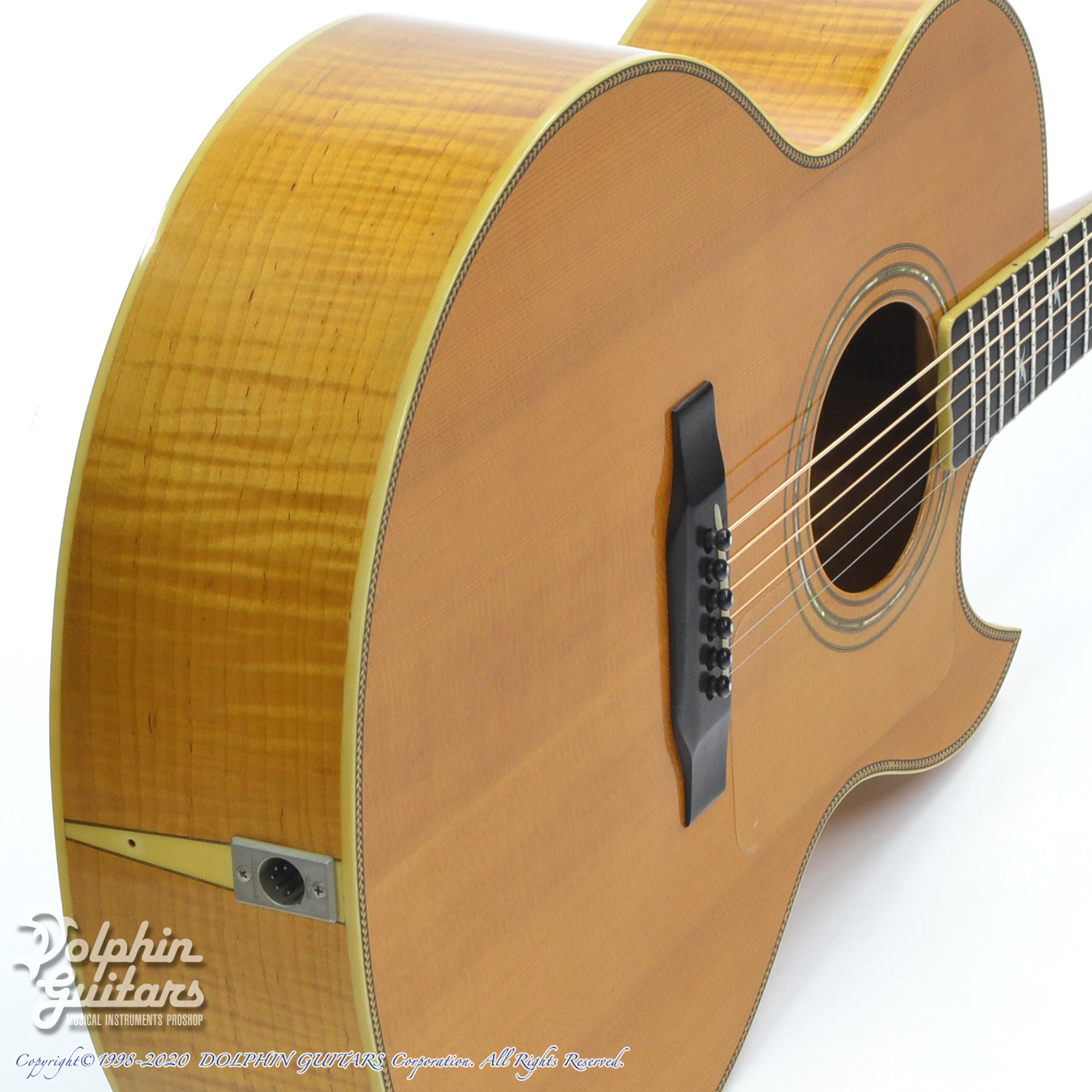 スプルース・トップ、フレイム・メイプル・サイド&バック、フレイム・メイプル・ネック、バーズ・インレイ・エボニー指板&駒、ヘリンボーン・ボディ・トリム、フローレンタイン・カッタウェイ。