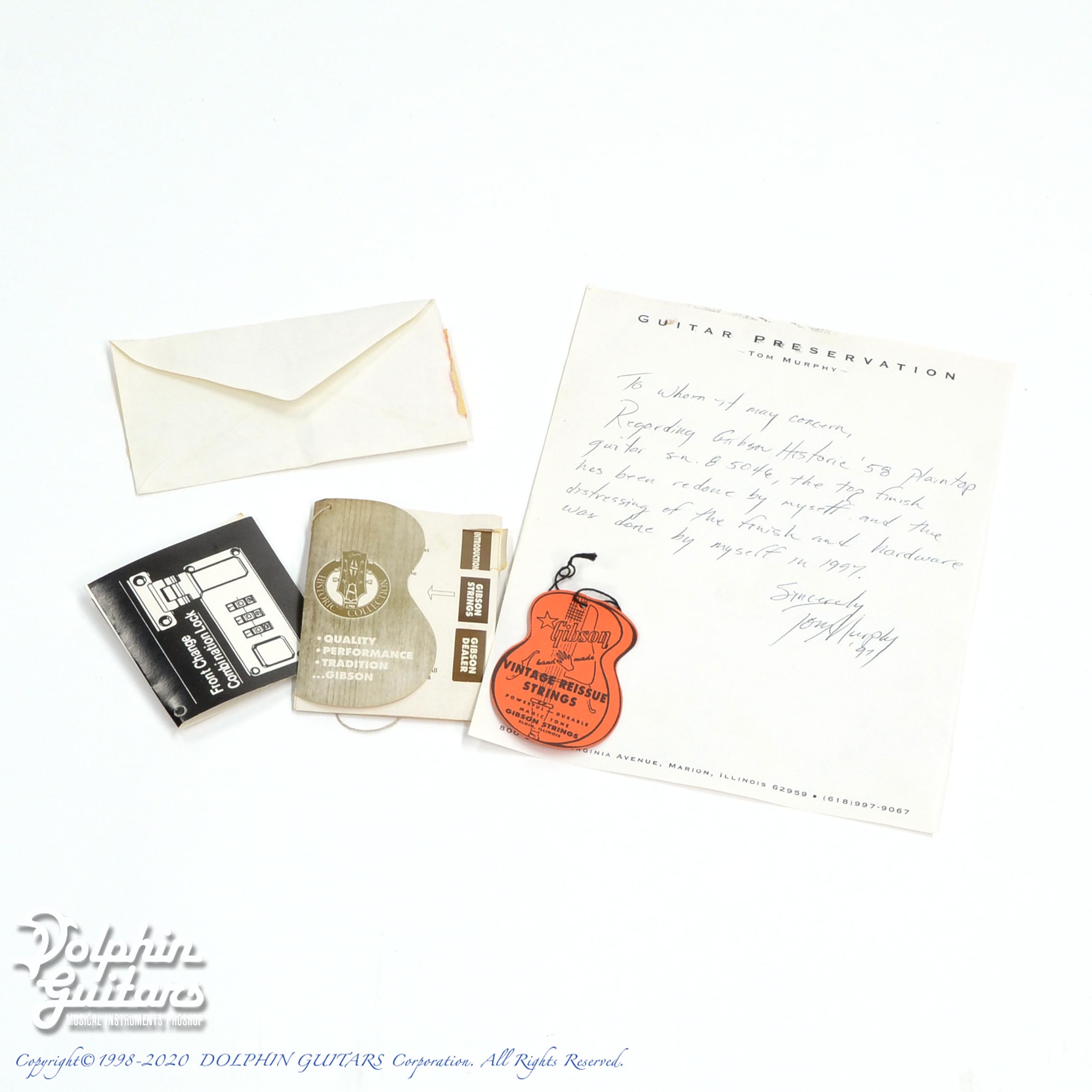 1993年にスタートしたヒスコレ初代ペインター、エイジングのエキスパートとして知られる名工Tom Murphyによる直筆レターが付属しており、"この57ヒストリックプレイントップは、1997年に改めてトップのフィニッシュとハードウェアのエイジド加工を自らが施した"と綴られております。どうりで素晴らしく渋く、かつ自然な雰囲気に仕上がっております。