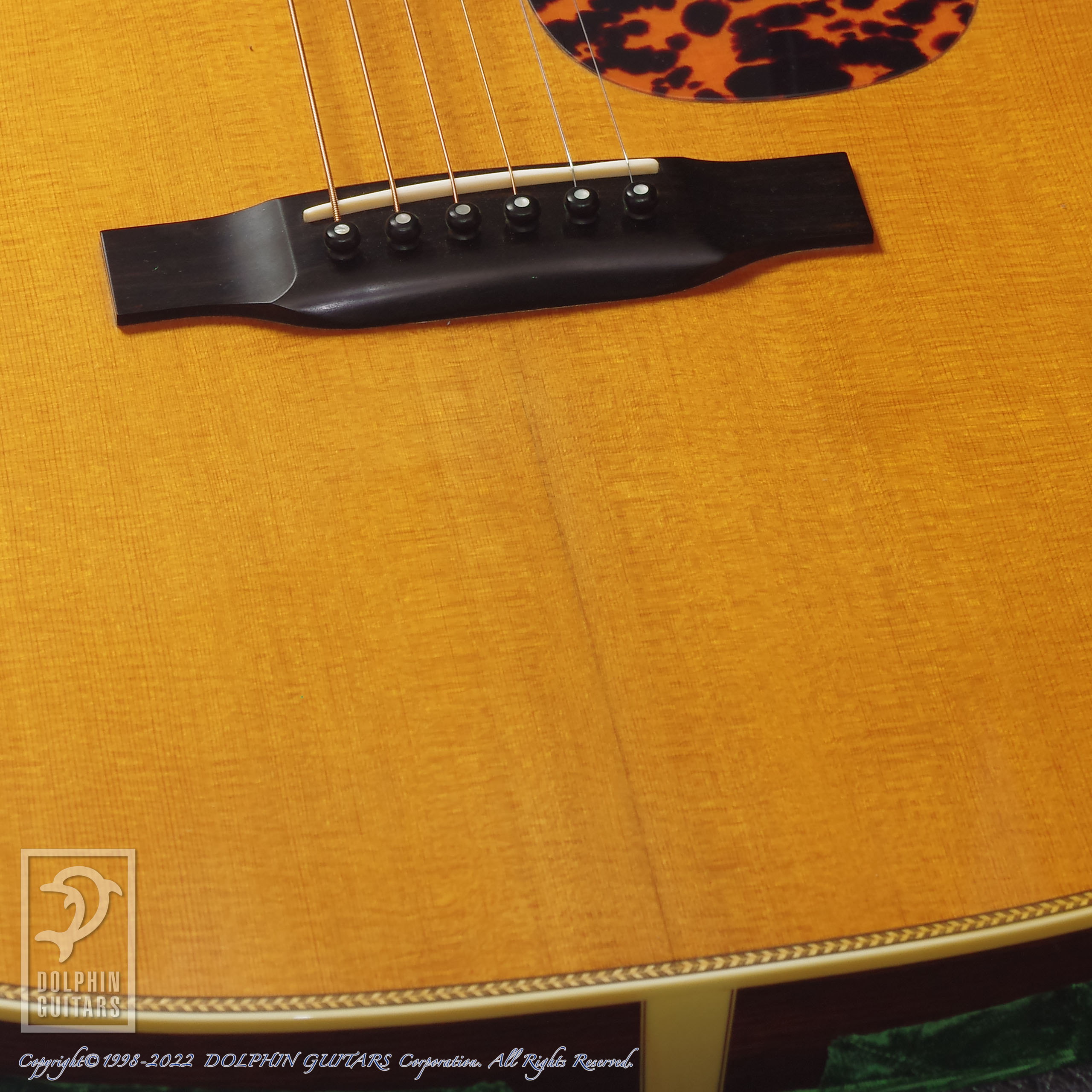 当店入荷時にトップセンターシームのクラックが見られたため補修いたしました。修理痕は画像でもご覧いただけるかと思いますが、ブリッジ下からエンドにかけての部分です、しっかりと補修しておりますので問題なくお使いいただけます。