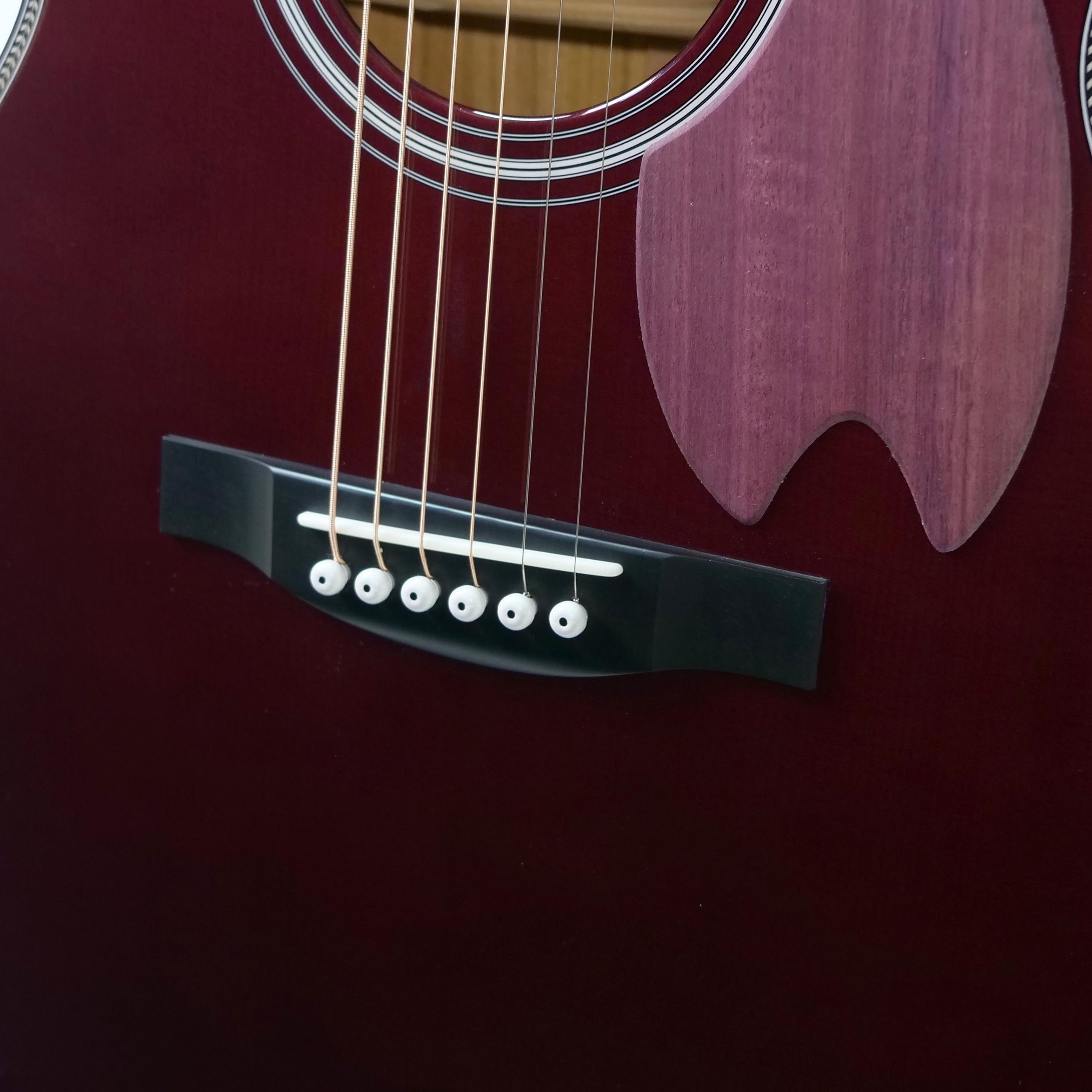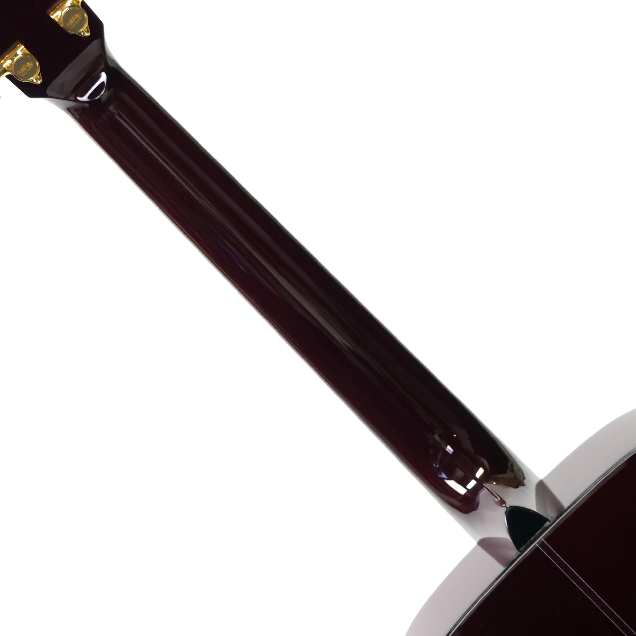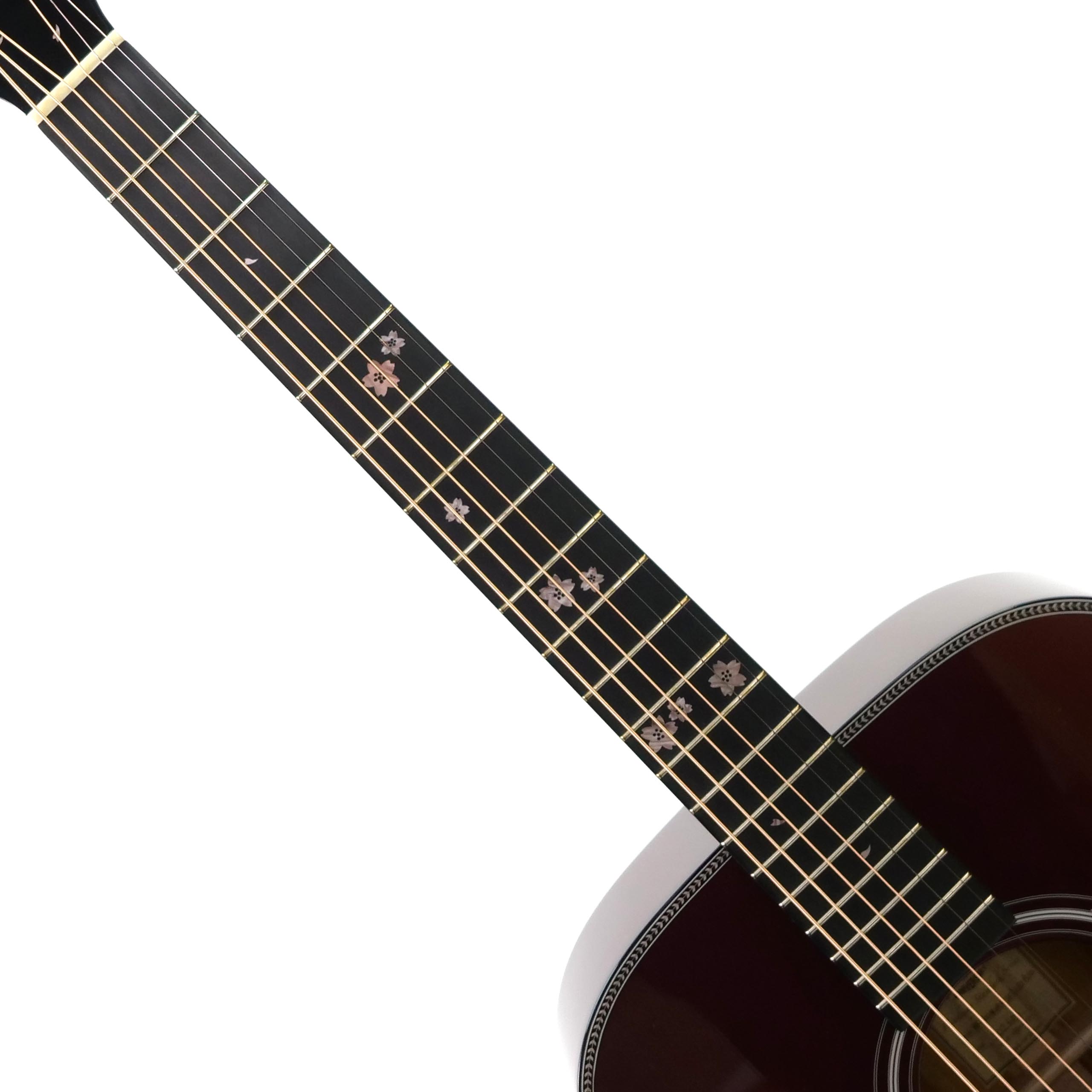 サイド&バックには桜材を使用し、桜材の適度に硬質な特徴が力強いアタック感と芯のある音色を生み出し、さらに桜特有の甘さが加わることで弾き語りはもちろんのこと、ソロギターなどオールラウンドに使用することが出来ます。