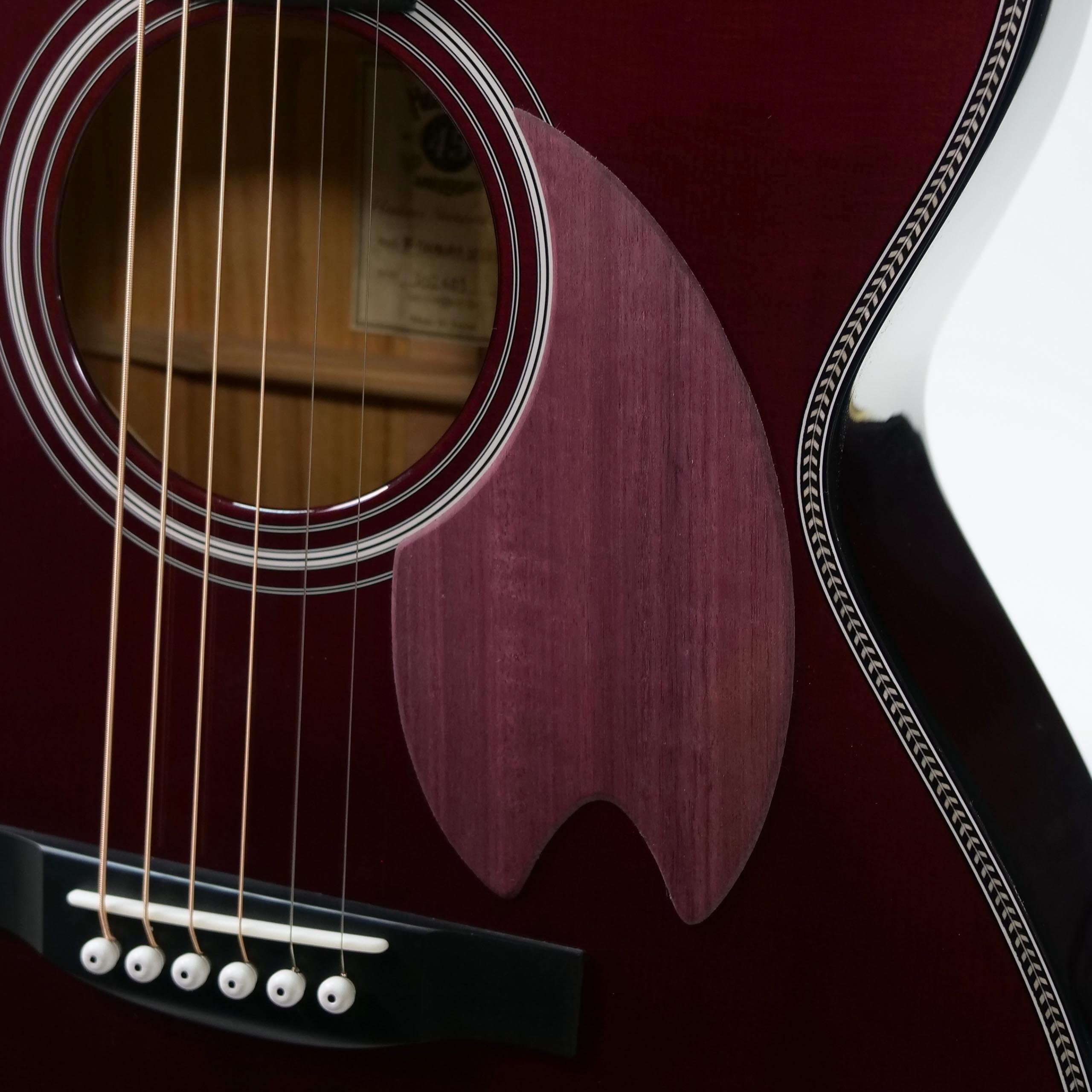 ピックガードには希少木材のパープルハートを使用しました。その鮮やかで美しい赤褐色が桜の花びらの形をモチーフとしたHeadwayオリジナルのピックガードが目を惹きます。
