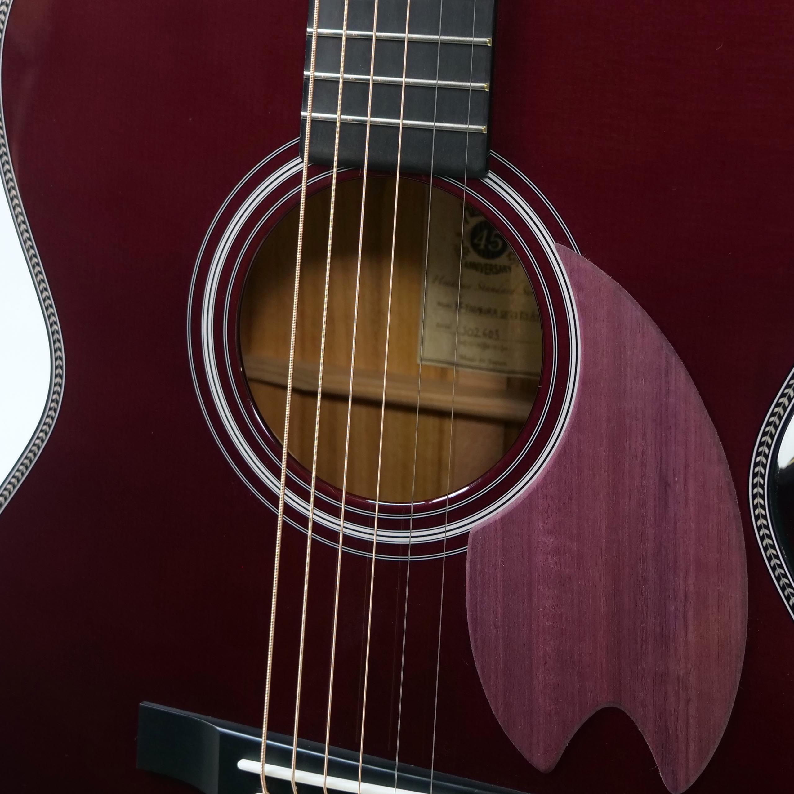 トップ材では、その音色で圧倒的な地位を誇るアディロンダックスプルース。その唯一無二の粘りのあるアタック感とレスポンスの速さは多くのファンを魅了します。スプルース材の中でも入手が難しく年々価格が高騰しています。STDシリーズの桜モデルでは初仕様となるボディトップ材となります。カラーは光の角度により薄っすら赤く見える、夜桜カラーYZB(夜桜ブラック)。
