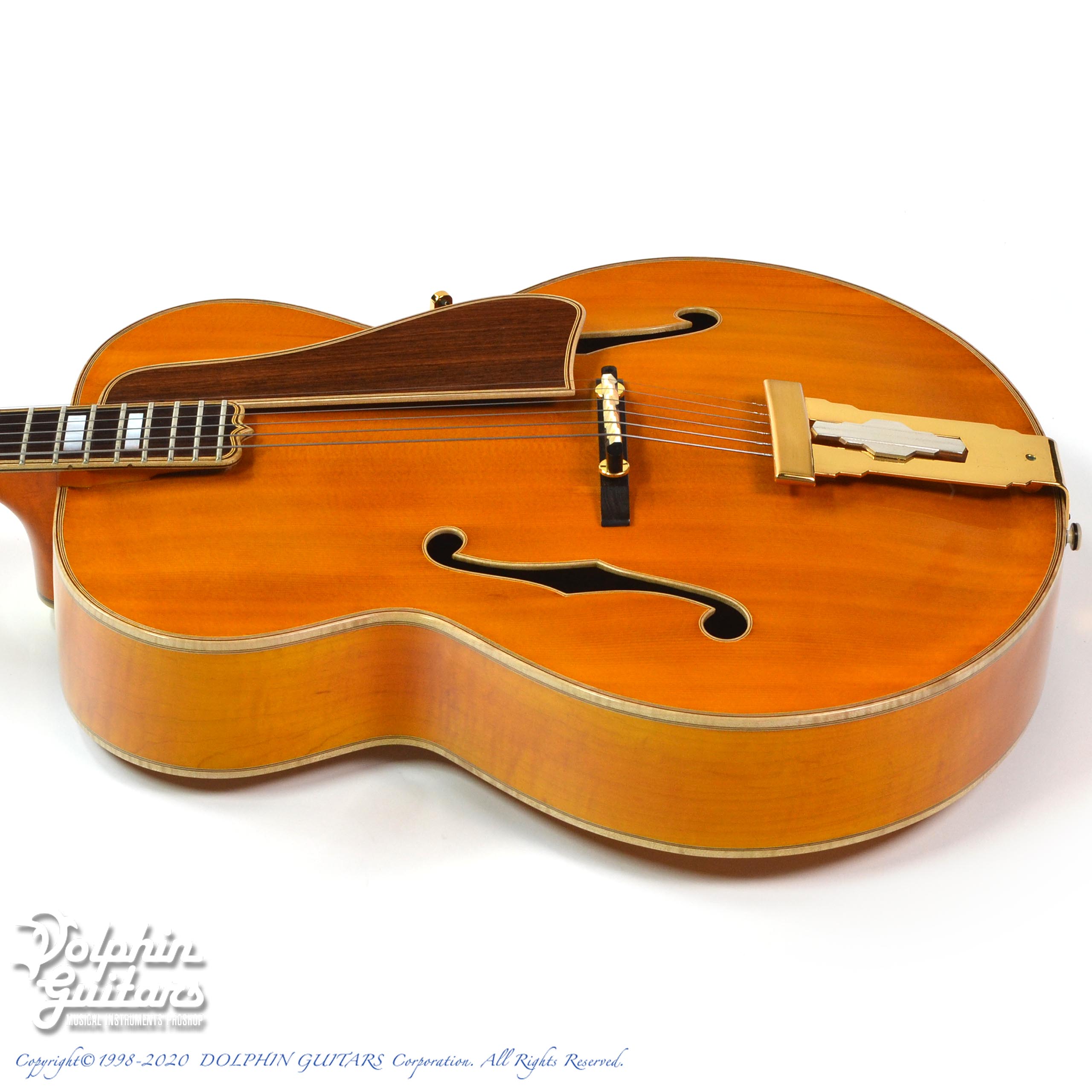 50年代にエレクトリック仕様に進化したL-5CESが有名ですが、1922年の発売当初はもちろん生ギターで、16インチボディでした。その後30年代半ばに"Advanced Body"として17インチに変更になります。