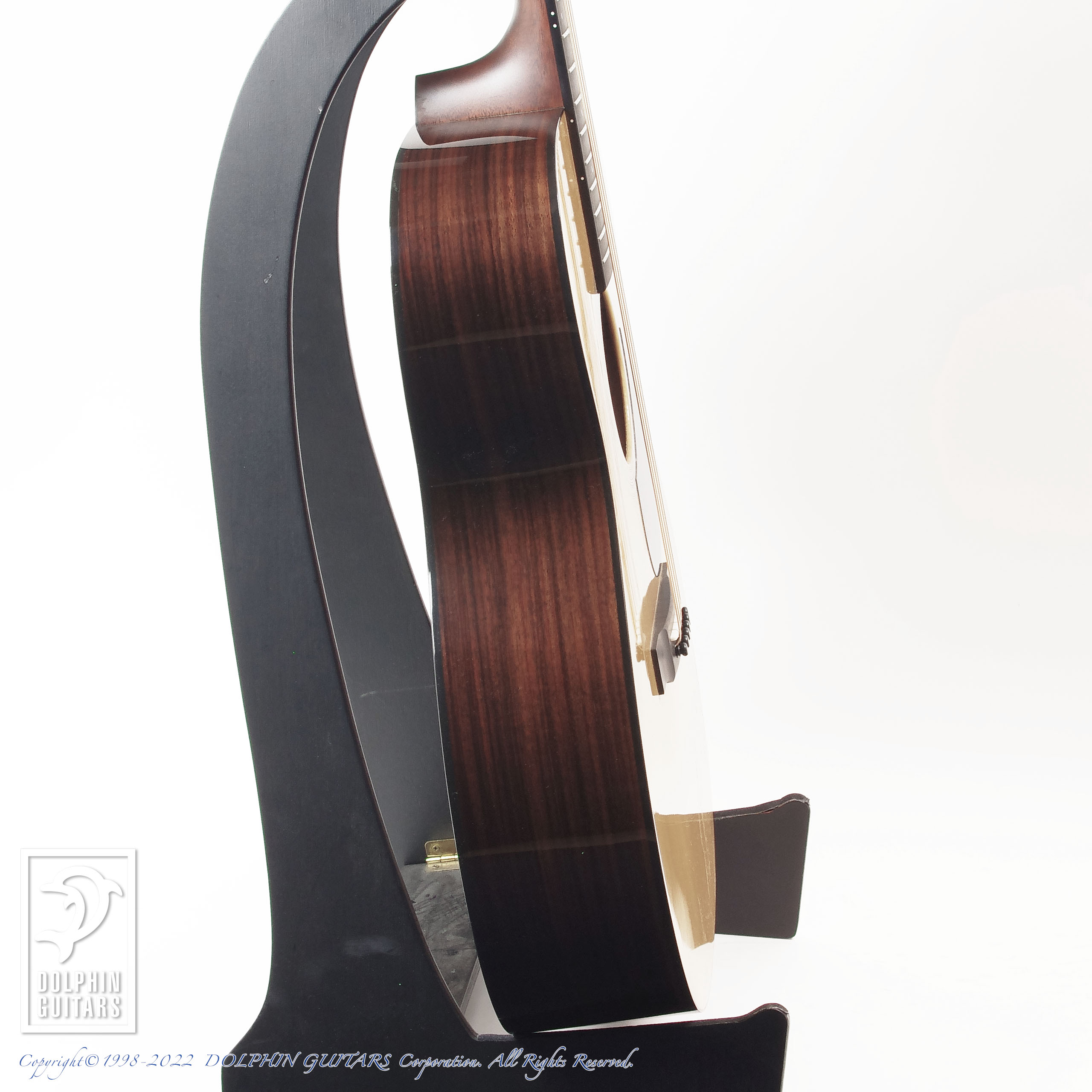 ピッキングの強弱にもしっかりと反応し、フィンガーピッキングでの表現力の高さも感じさせ、弾き心地も抜群な個体。製作は2021年であり、ほとんど弾かれた形跡もなく、大変美しいコンディションを保ったUSED品です。もちろん修理・改造履歴もありません。ネックはストレート、トラスロッドの効きも良く、弦高は6弦12F上2,5mm / 1弦2,0mmのセッティング。サドル高さも十分に余裕があり、理想的なネックアングルですので、ローアクションを好む方にもオススメな個体です。現状の弦高よりも低めをご希望される場合はご購入時にお申し付けください。