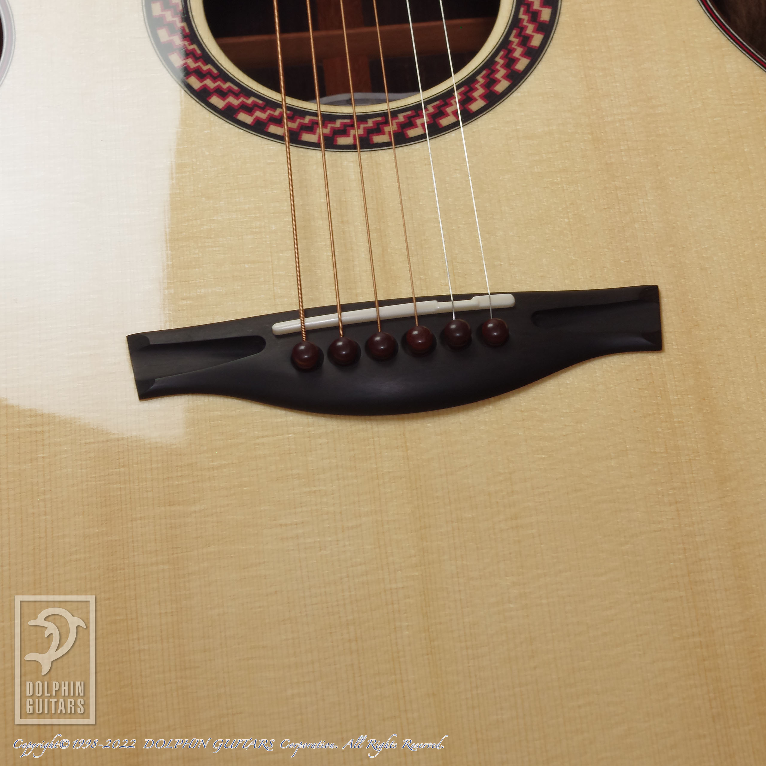 フィニッシュはシェラックをベースにラッカーで仕上げ、ボディの振動を妨げないよう極薄の塗膜です。