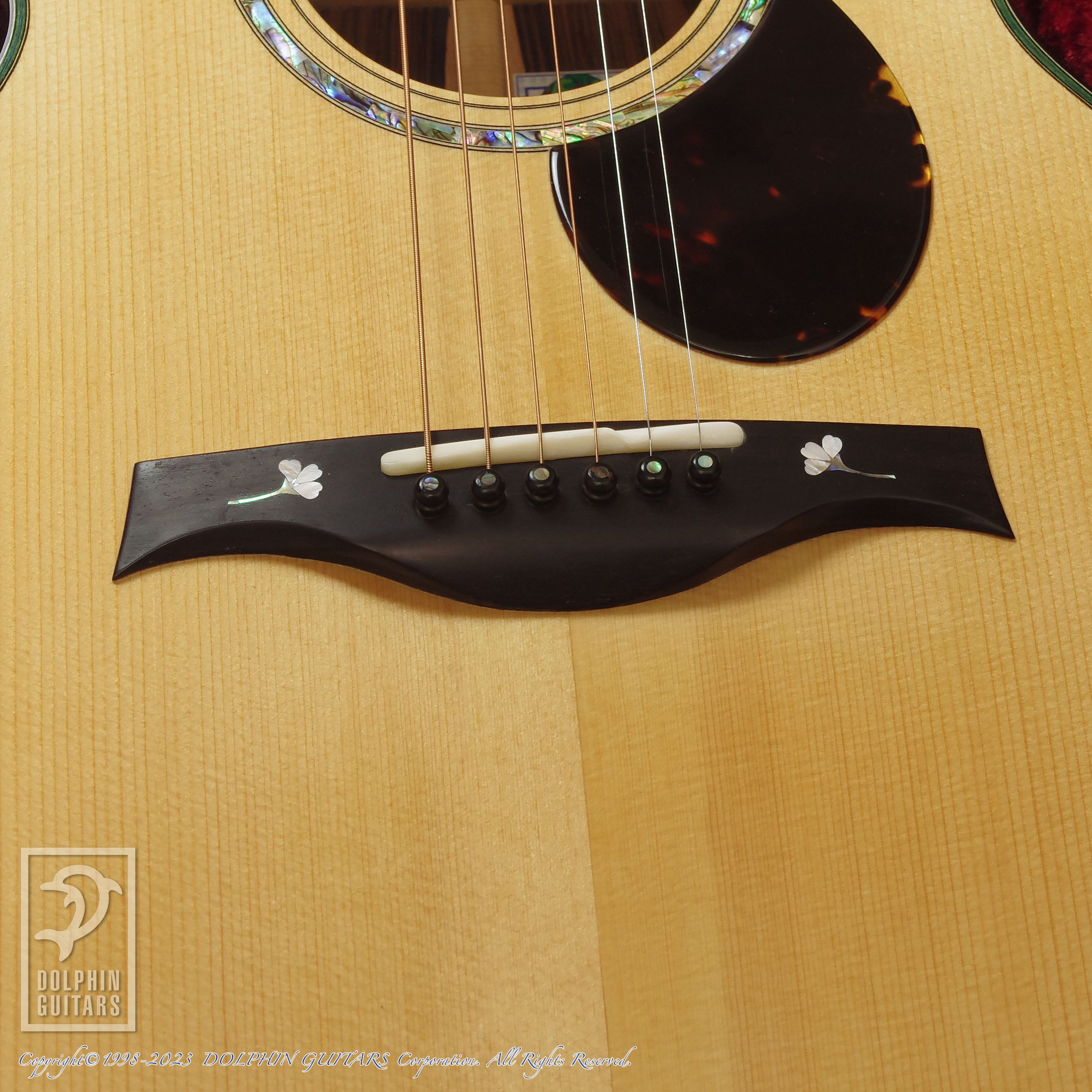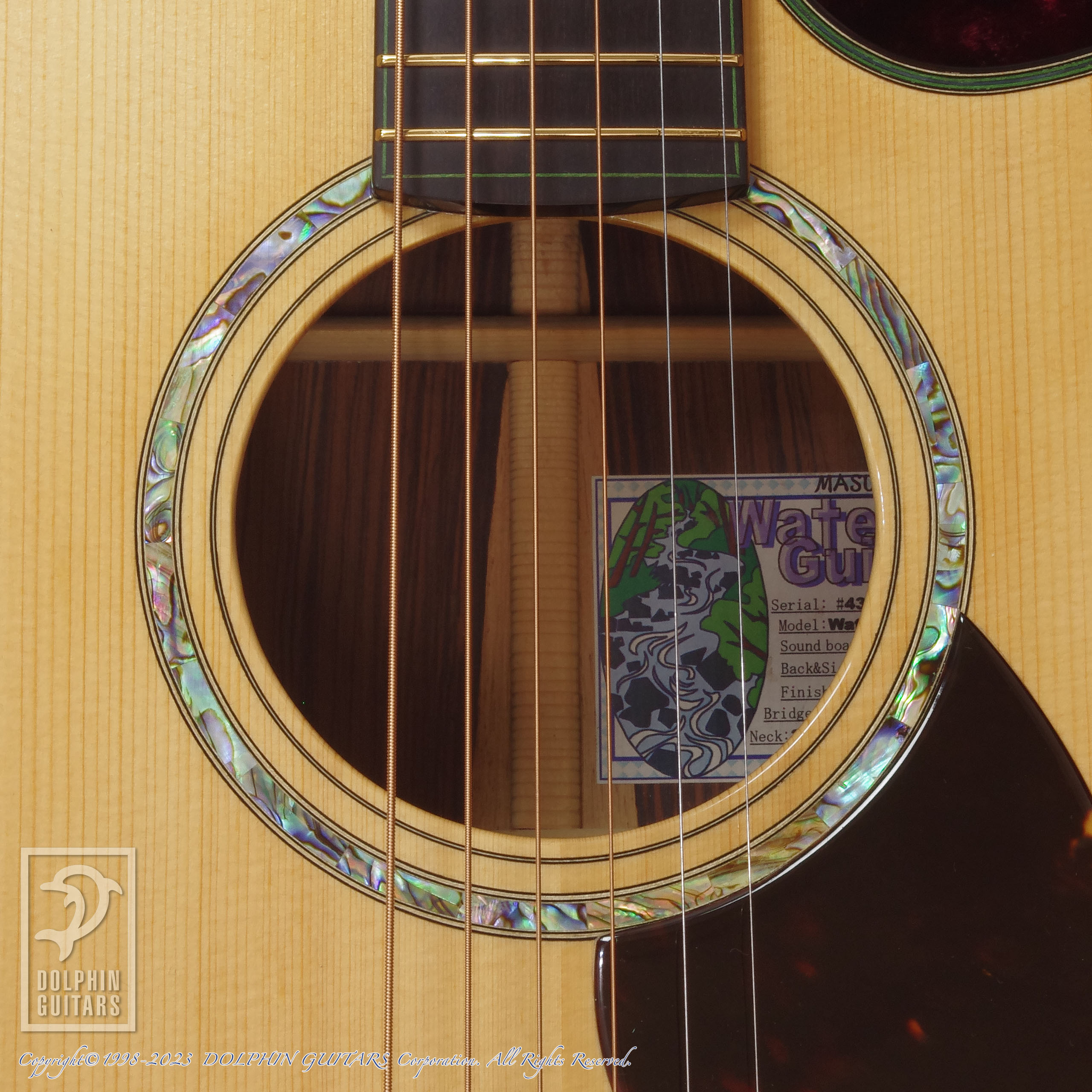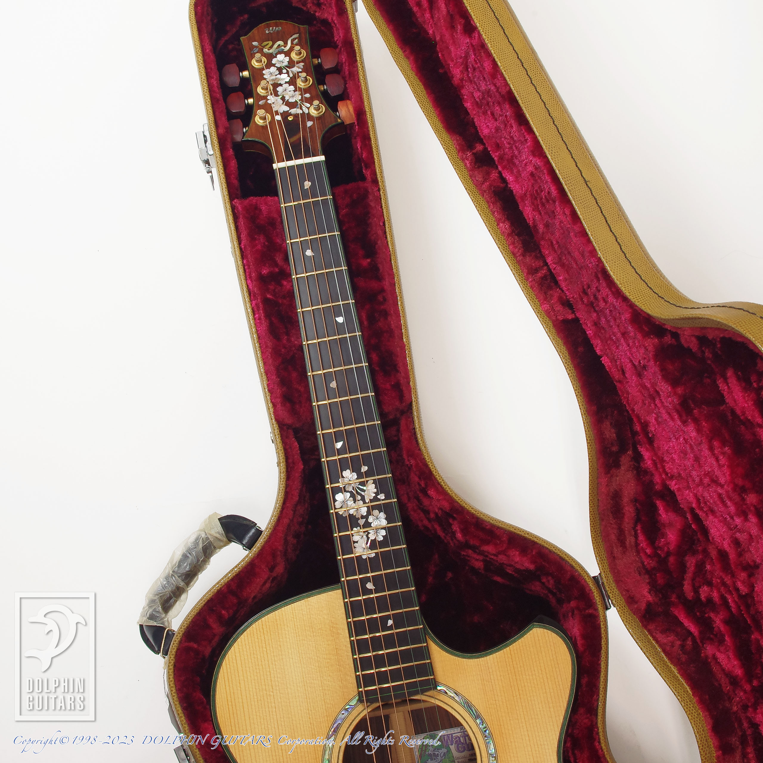 その他:フローレンタインカッタウェイ、エボニーバインディング、44,5mmナット幅、645mmスケール、本鼈甲PG&トラスロッドカバー、桜インレイ、EVOゴールドフレット