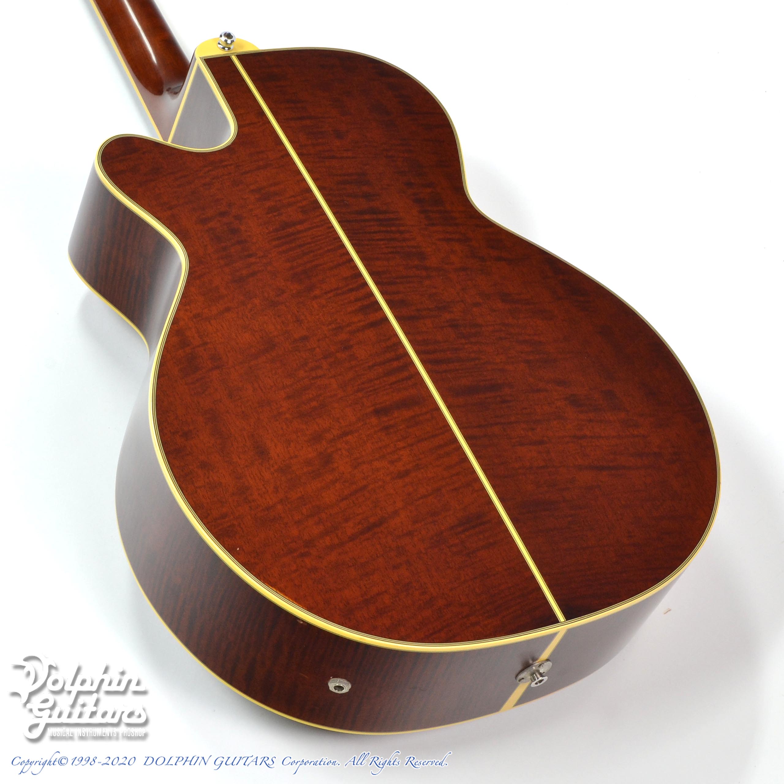 艶消ボディゆえ、右肘がかかるところや、ネック、サウンドホール下は使用によるテカリが出て来ております。その他全体に所々キズはございますが、年式相応と言えるでしょう。ネックを含め演奏面のコンディションは良好です。