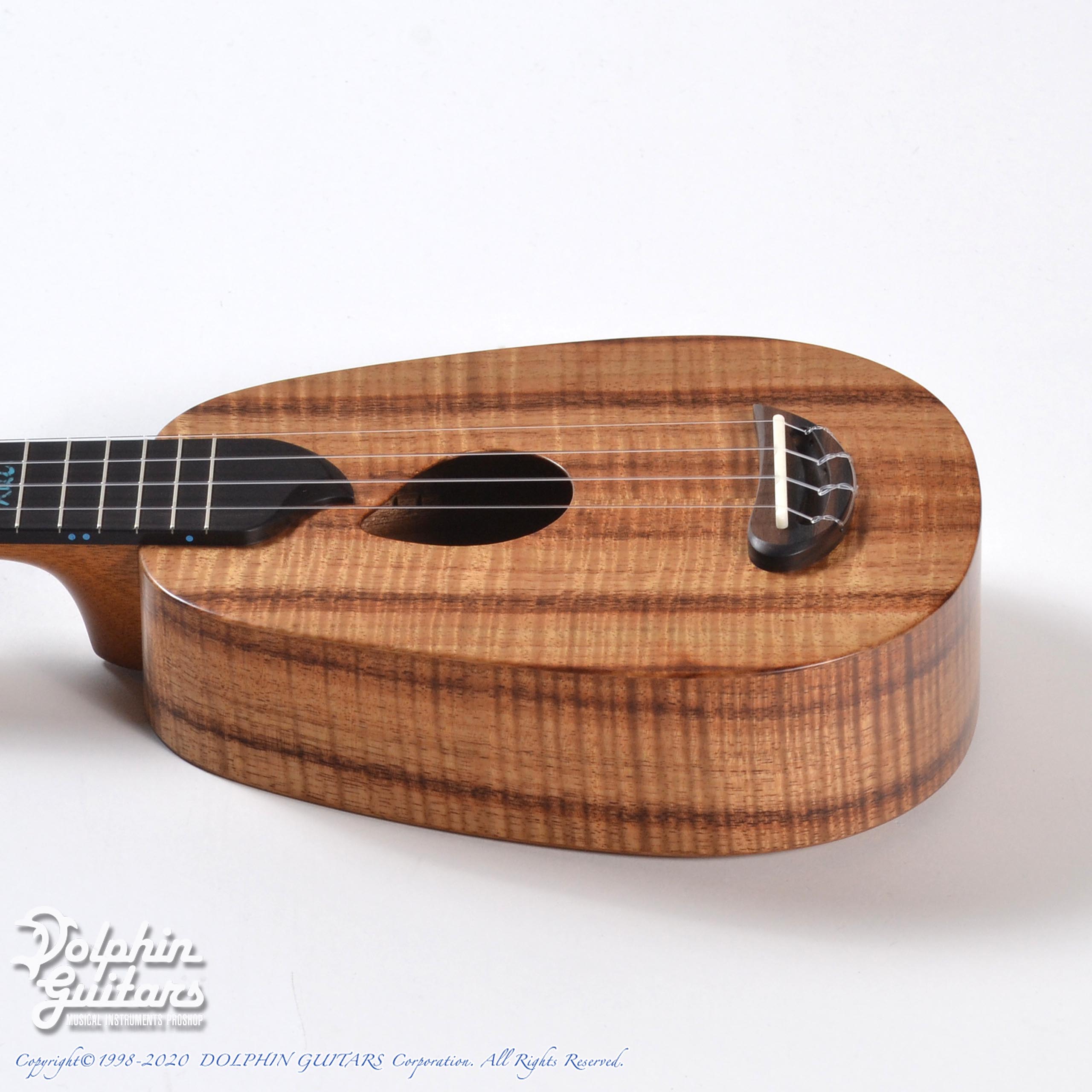 本器はトダギターズのパイナップルシェイプ、オール・ハワイアンコア・ボディのソプラノサイズ、PS-ALL KOA。
