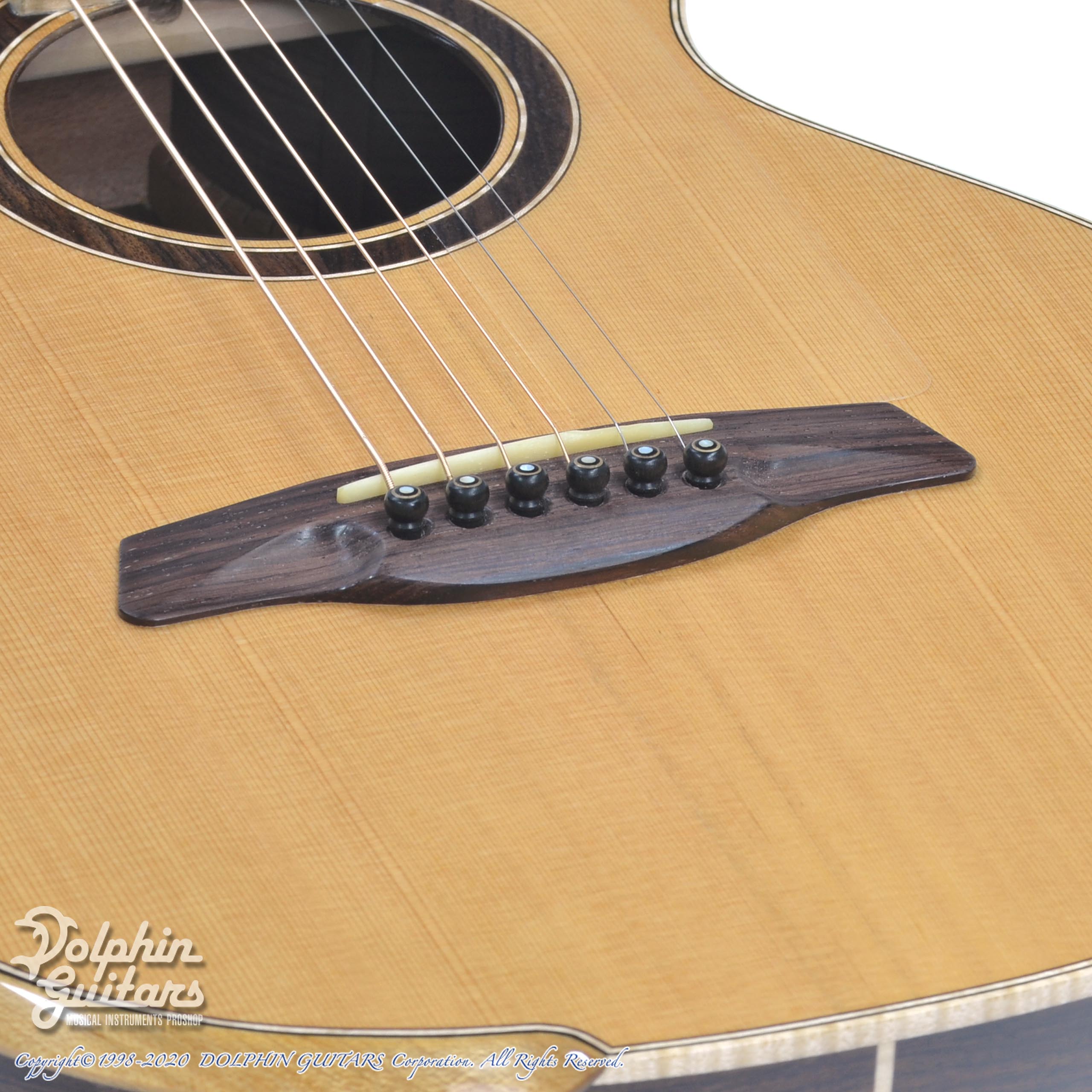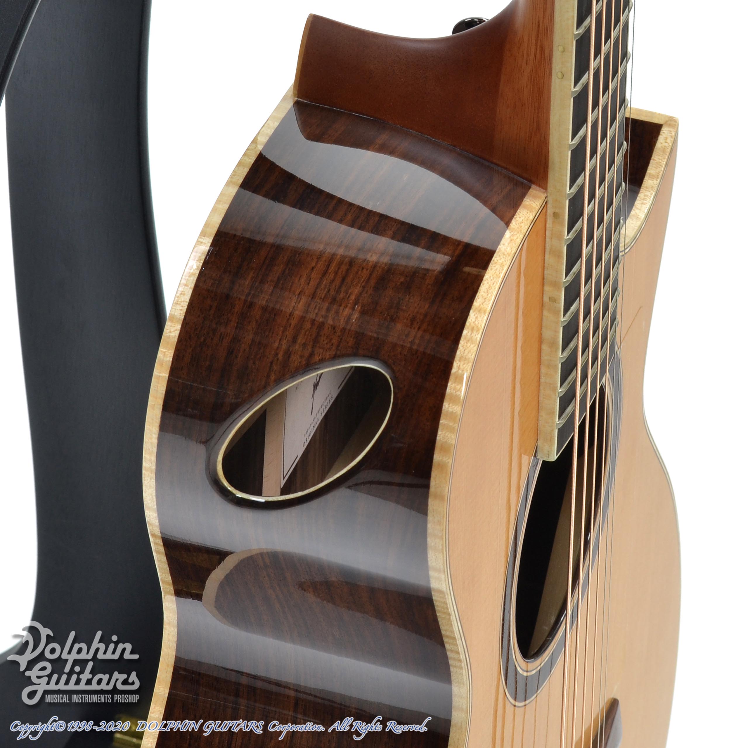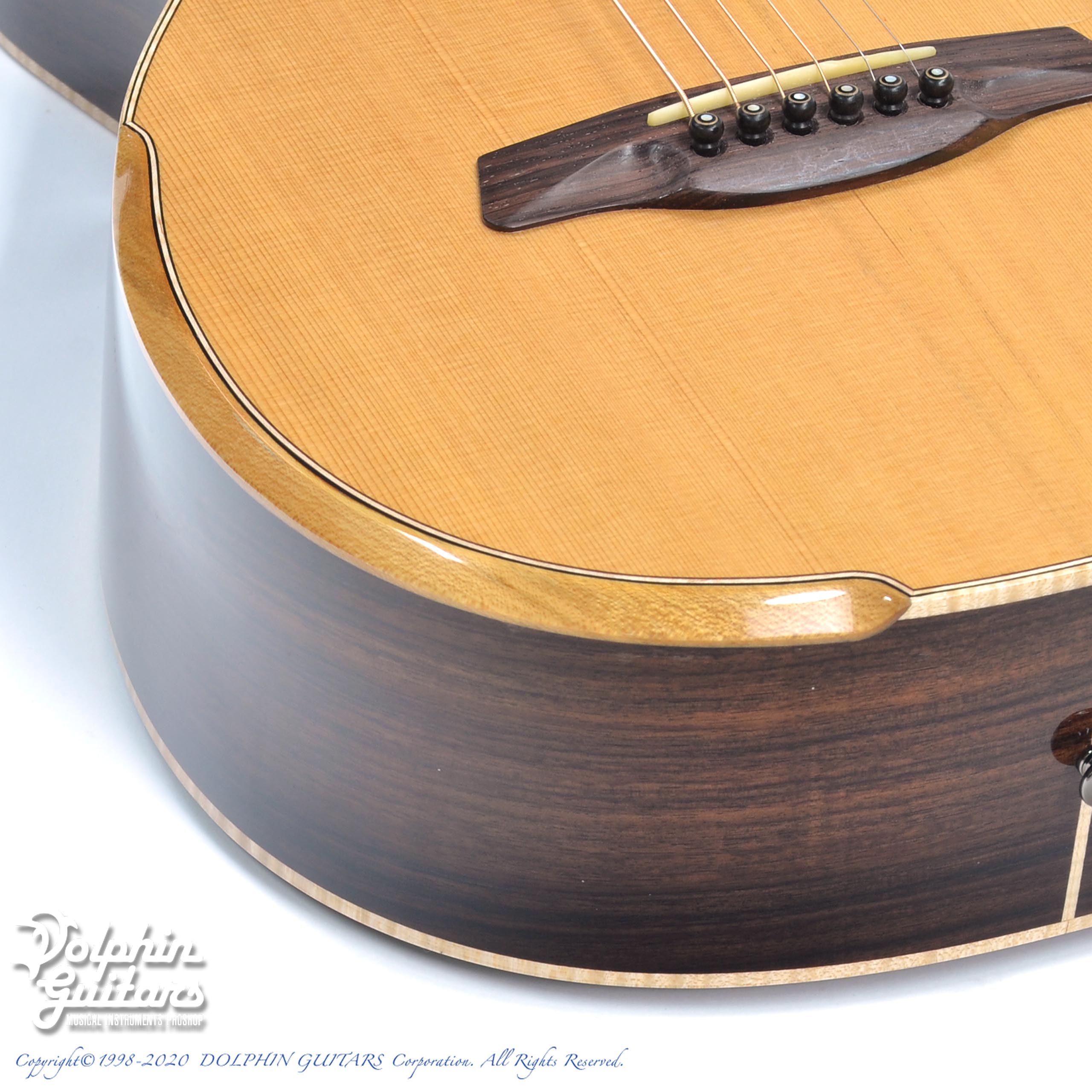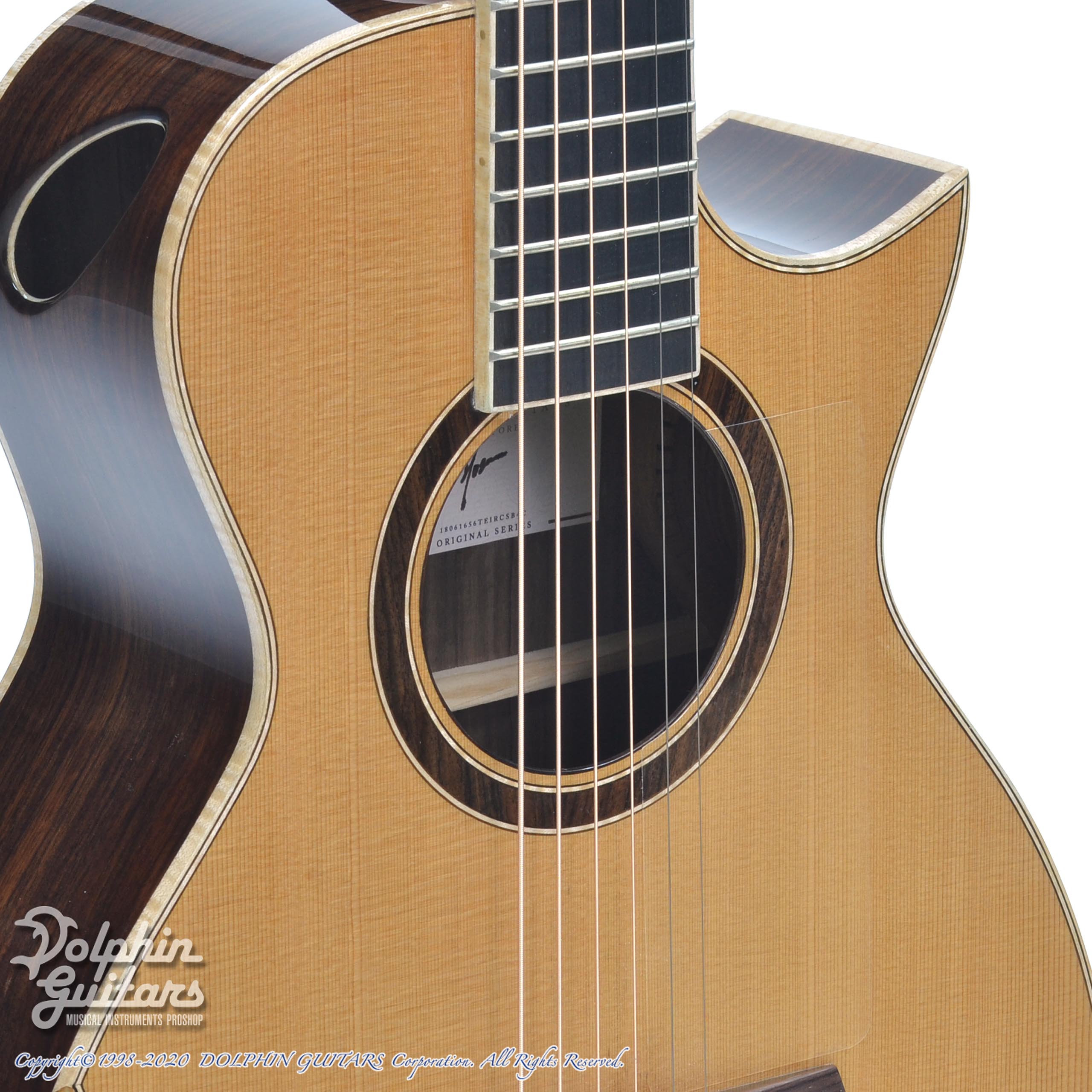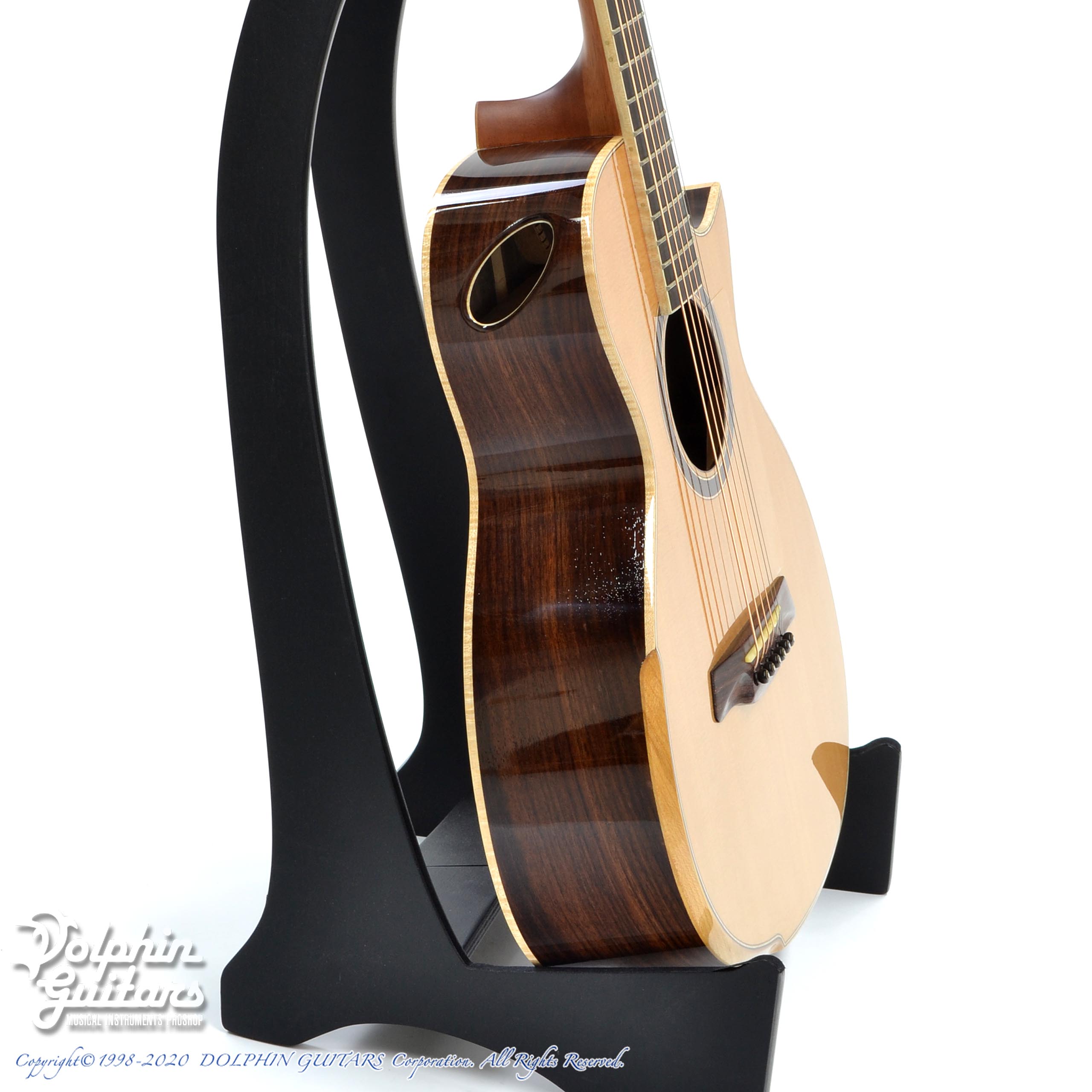 シダー・トップ、インディアン・ローズウッドサイド、バック、カーヤ・マホガニー・ネック(カーボン補強)、ベベルド・アームレスト、サイド・サウンドポート、フローレンタイン・カッタウェイ、エボニー指板&駒、メイプル・バインディング、ウッドロゼッタ、グローバー糸巻き。