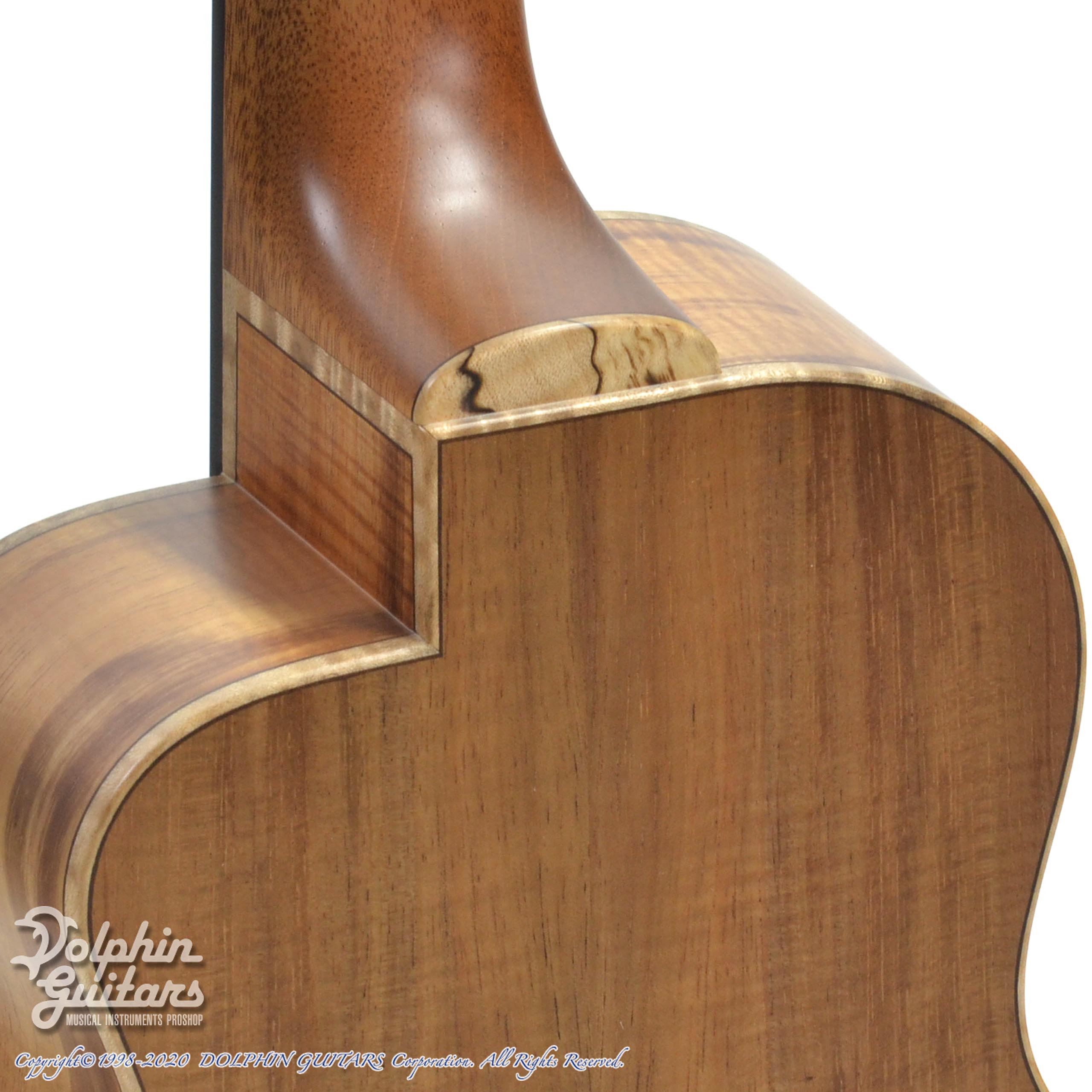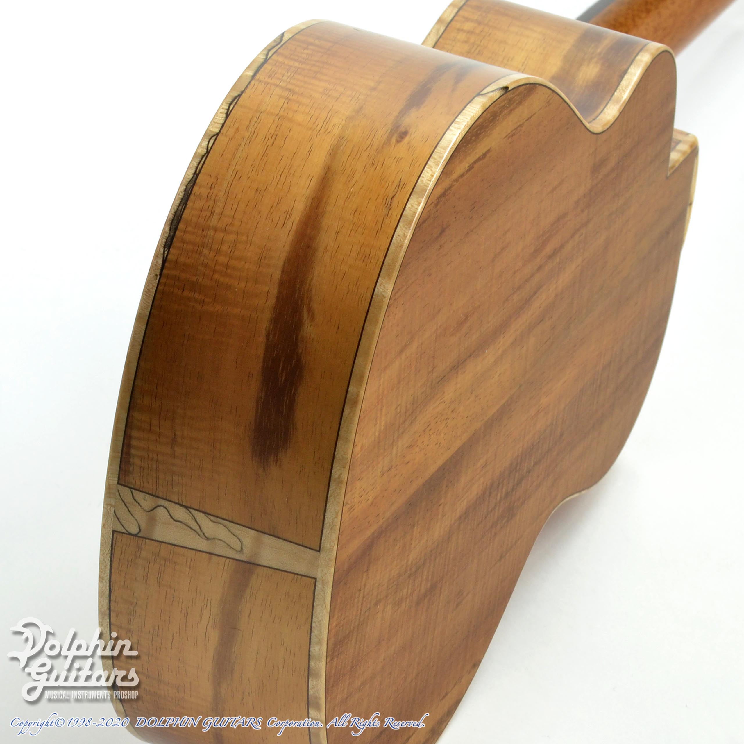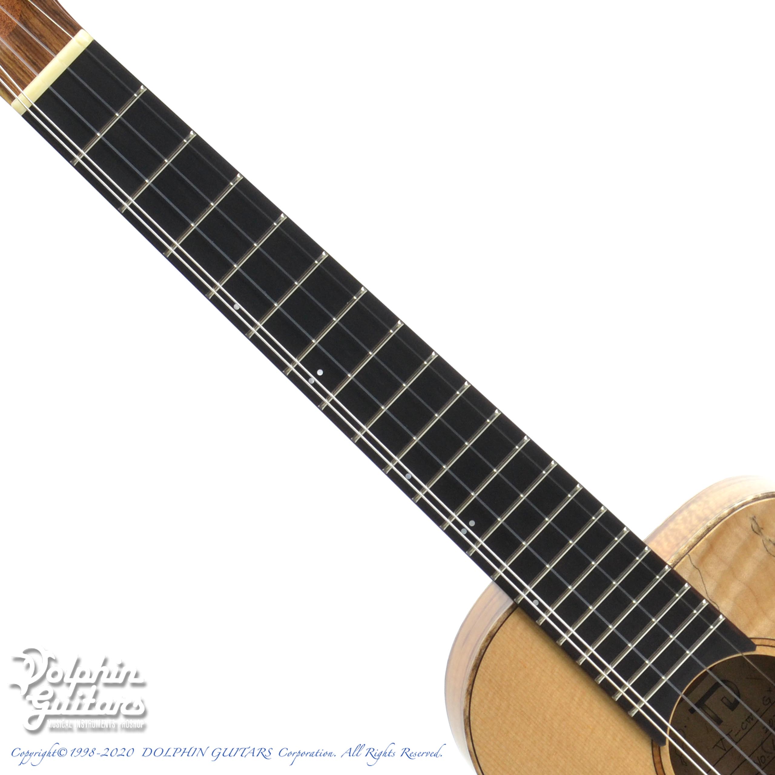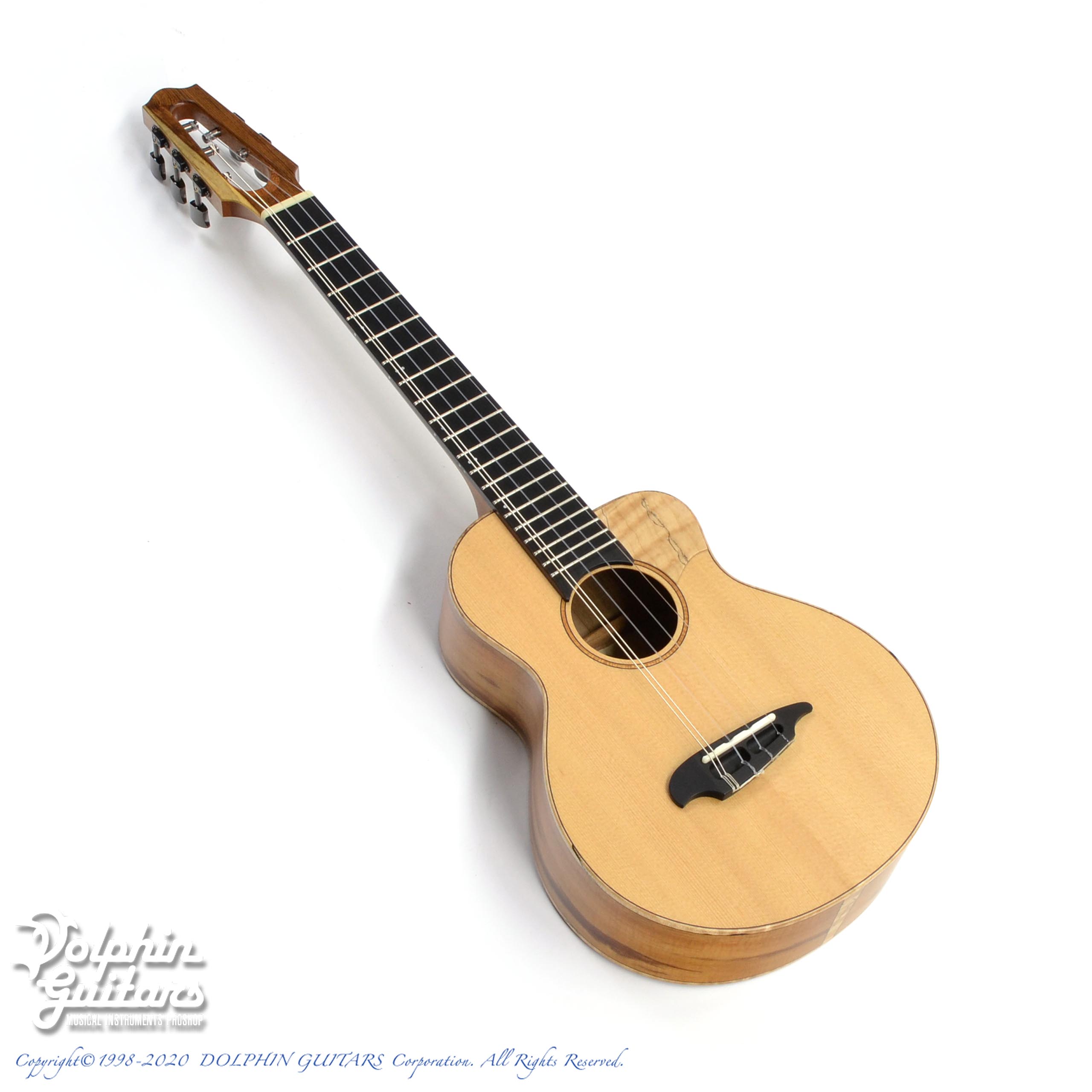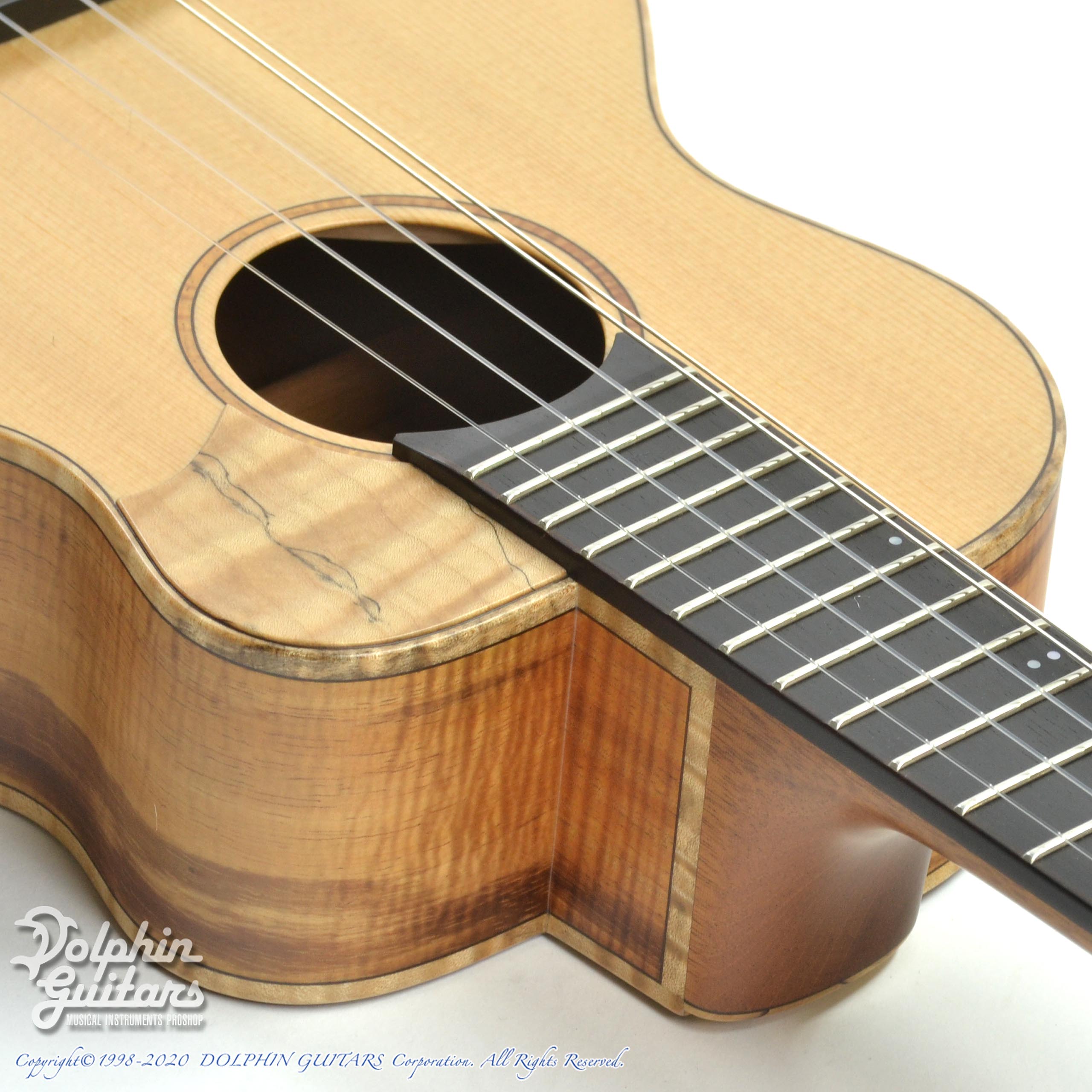 スプルース・トップ、ハワイアンコアウッド・サイド&バック、エボニー・フィンガーボード&ブリッジ、メイプルピックガード。