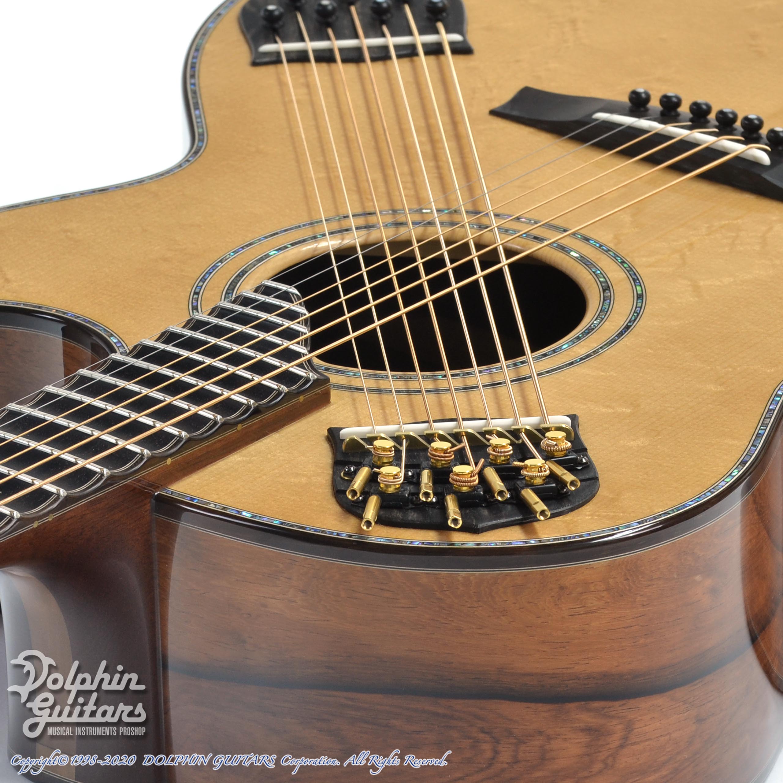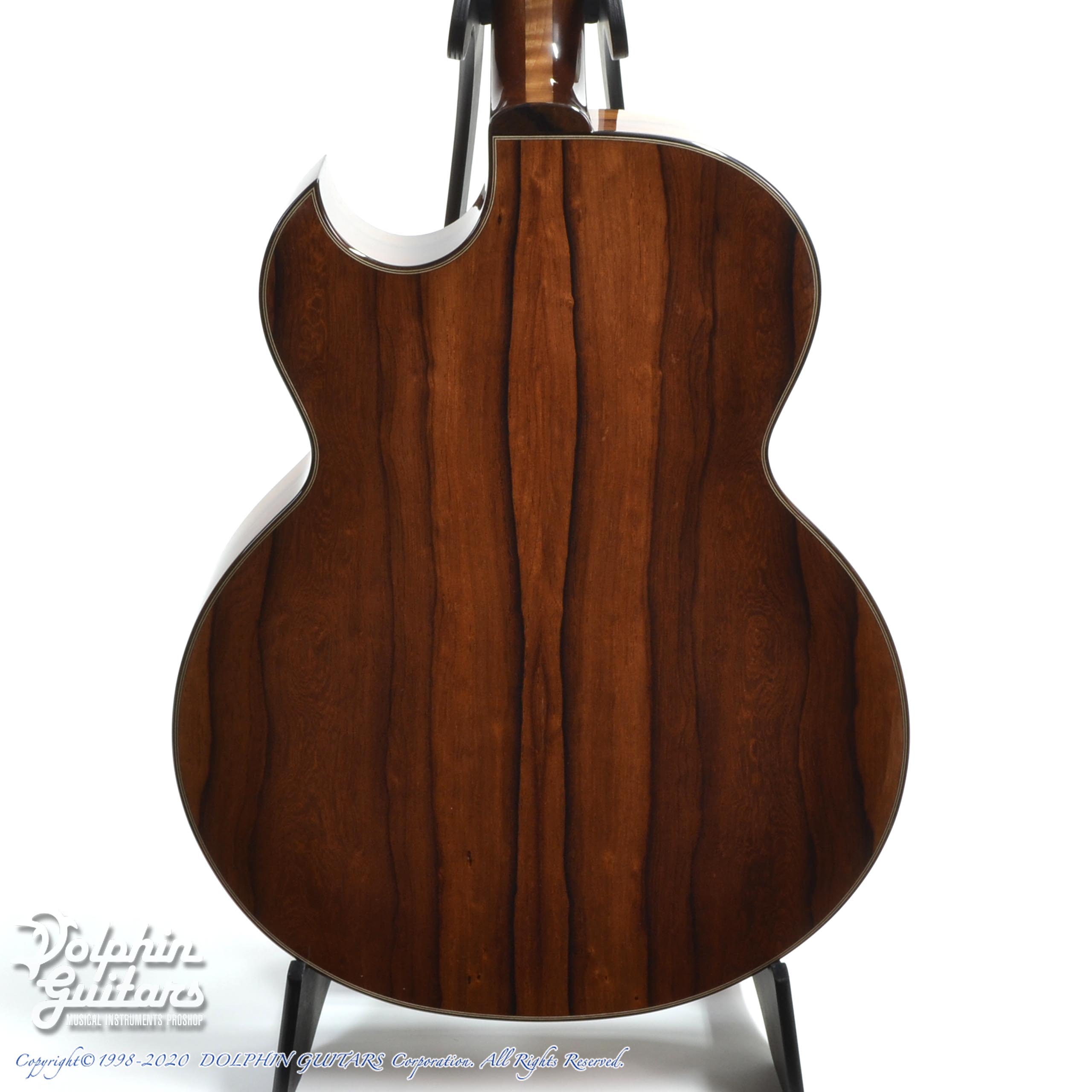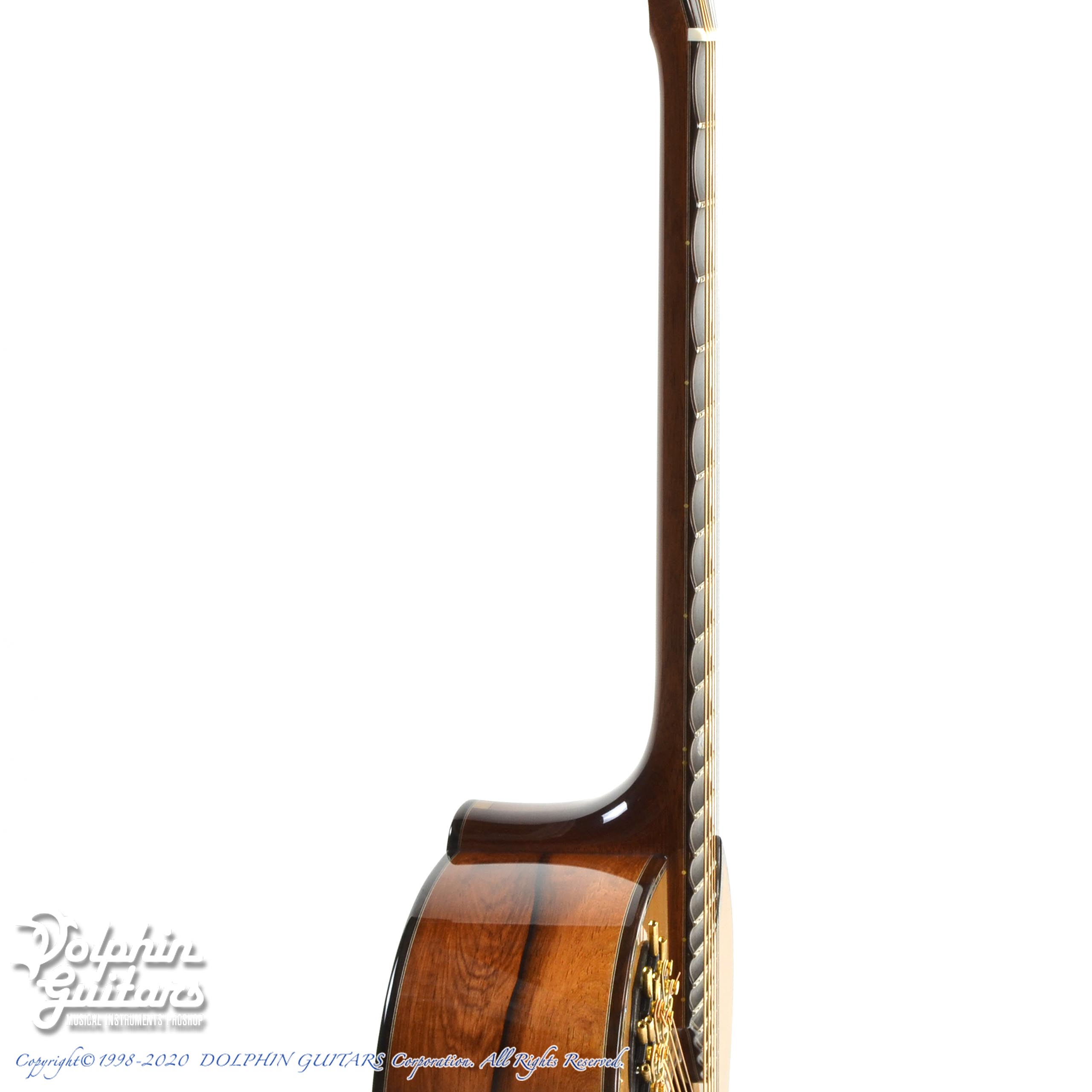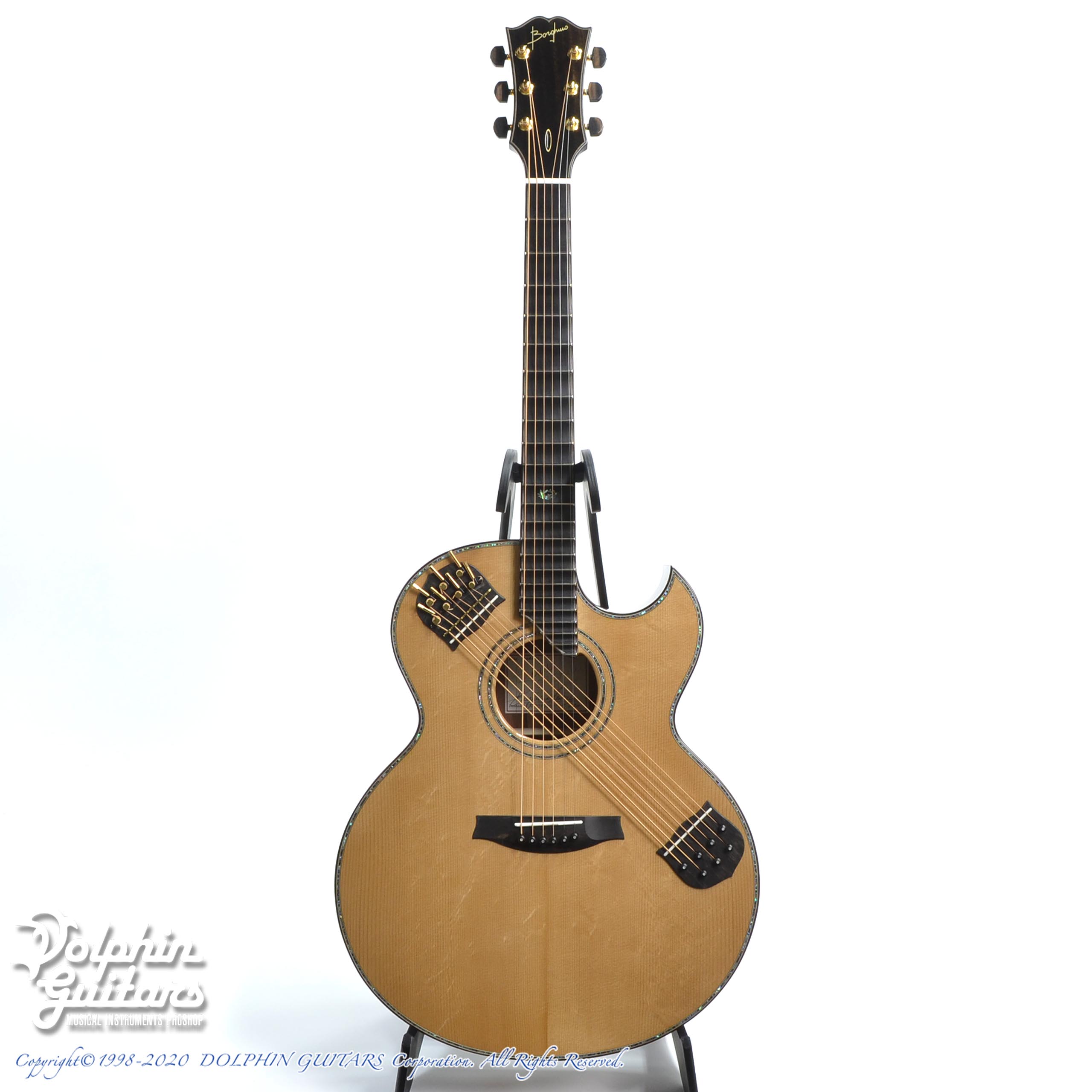イタリアン・ベアクロウ・スプルース・トップ、マダガスカル・ローズウッド・サイド&バック、マホガニー/イタリアン・ウォルナット3pネック、マッカーサー・エボニー・スキャロップド指板&駒、シャーラー糸巻き(6弦)、ゴトーステルス糸巻き(7弦)。