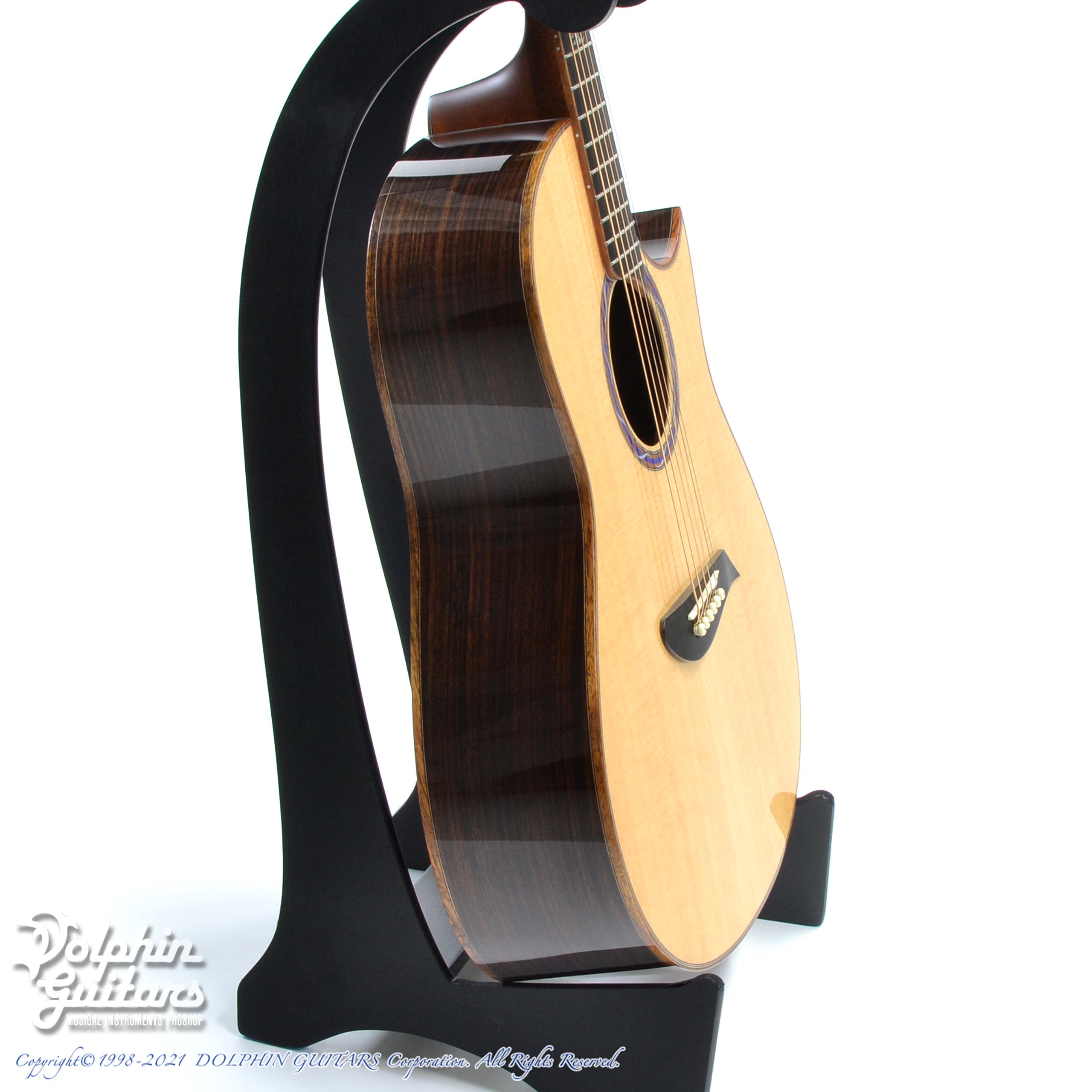 シトカ・スプルース・トップ、インディアン・ローズウッド・サイド&バック、マホガニー・ネック、エボニー指板&駒、オリジナルロゼッタ、ゴトー糸巻き、フローレンタイン・カッタウェイ、B-BANDピックアップ搭載。