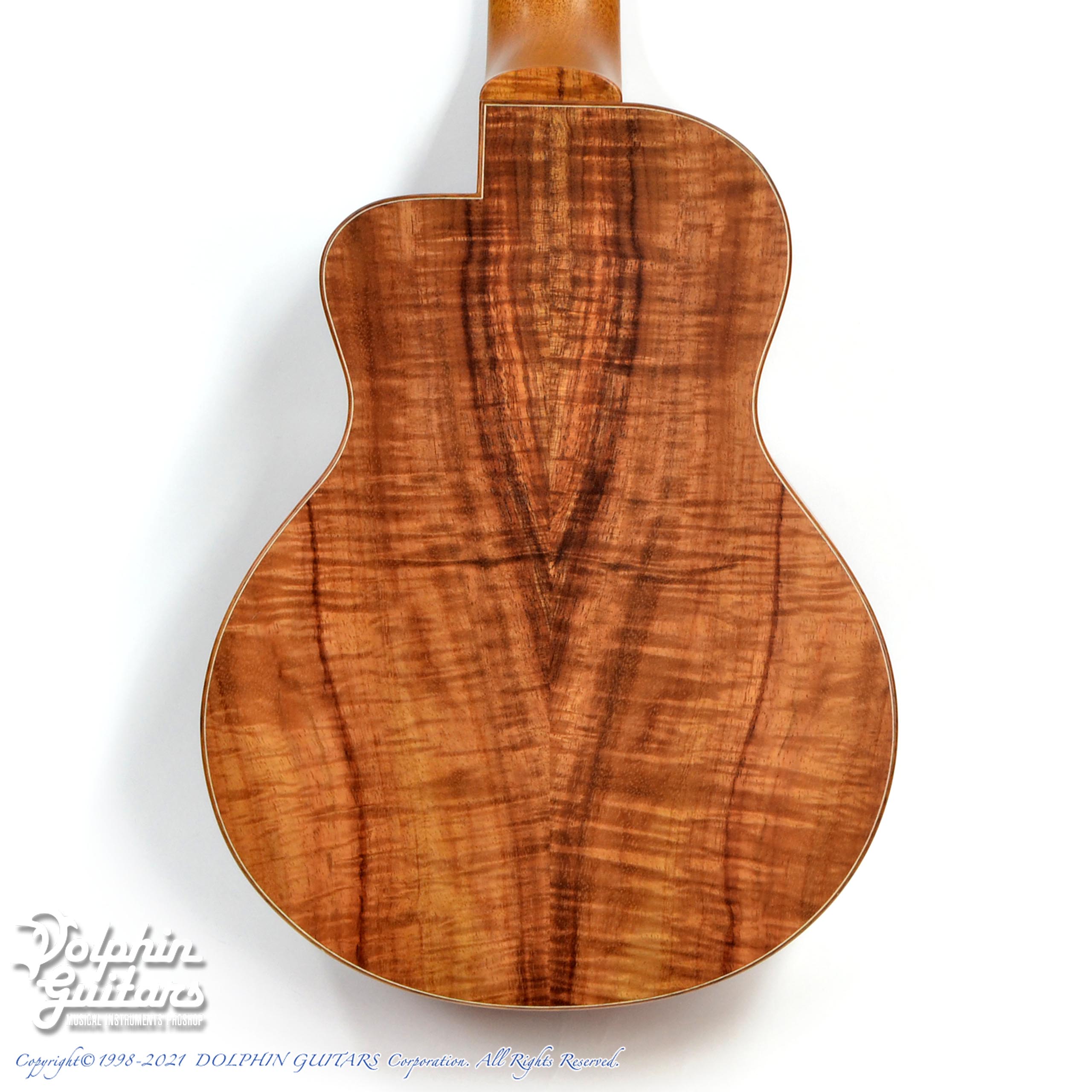 ハイグレードのハワイアン・コア・ボディ、ホンジュラス・マホガ二ー・ネック、エボニー指板&ブリッジ、スロッテッド・ヘッド、コア・バインディング、ハワイアンコア・ピックガード、ゴトー糸巻き。