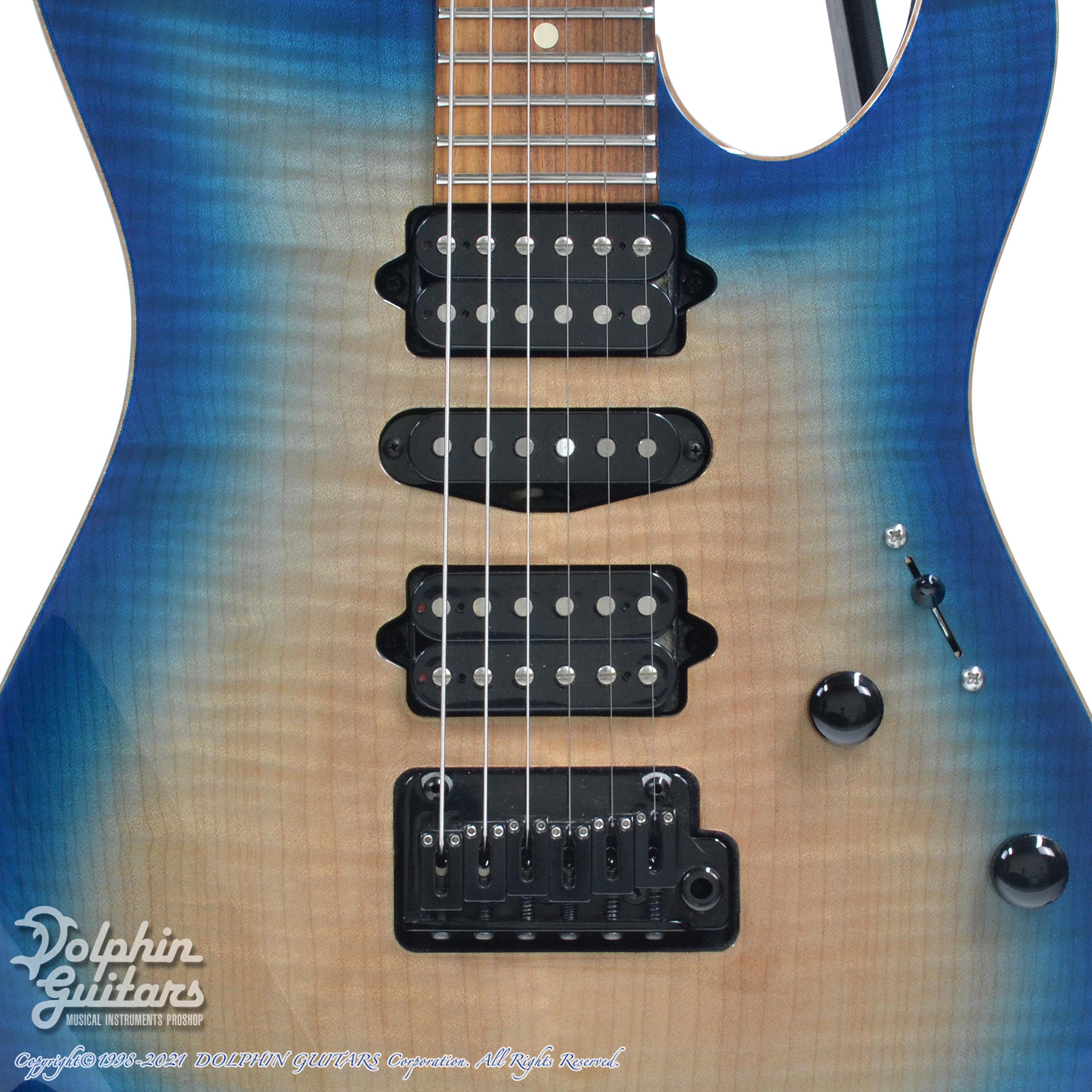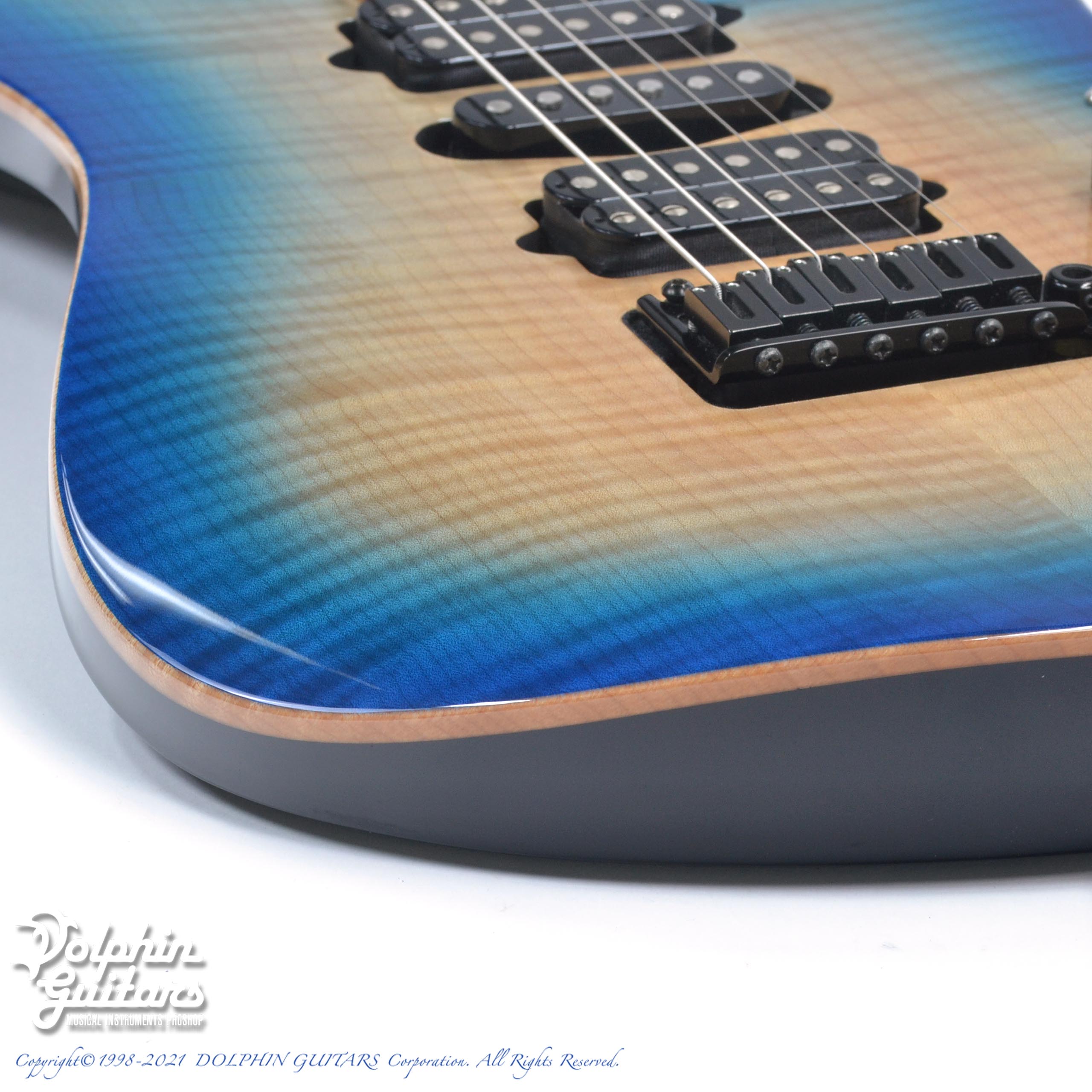 フレイムメイプルトップ、バスウッドバック、メイプル・ネック、パーフェロー指板(10"-14" Radius)、ステンレス・ジャンボ・フレット、42mmナット幅、Suhrオリジナルピックアップ、ゴトー510ブリッジ、ロッキングペグ、トランスブルーバースト・フィニッシュ。