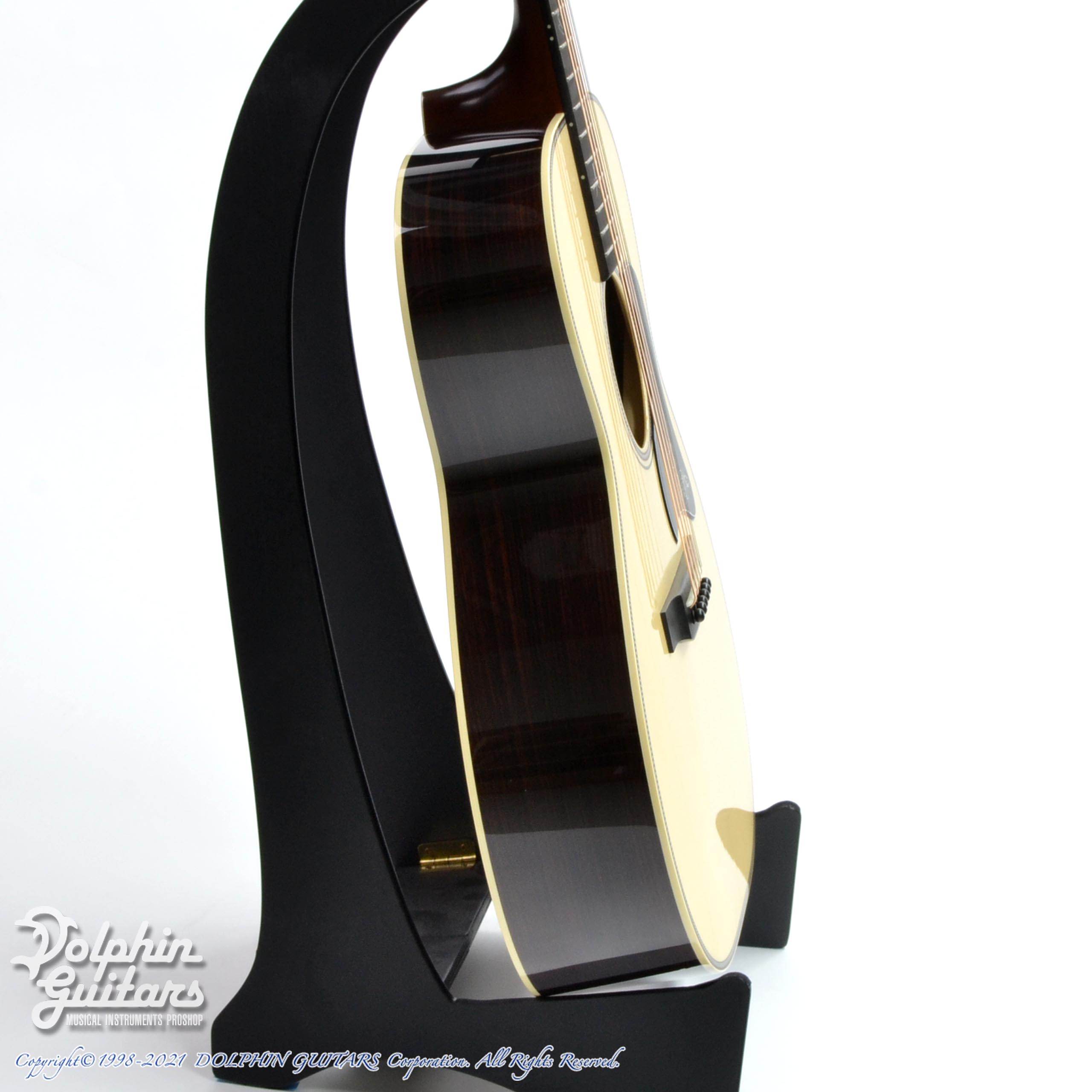 トップ材には最高級の希少材、アディロンダックスプルースを使用しました。北米原産のアディロンダックスプルースは旧来のアコースティックギターに使用されていたこともあり希少性の高い材です。詰まった木目の美しいルックスとアディロンダックスプルースならではの低音から高音まで澄んだ豊かな響きを味わうことができます。ギター用の木材としてはトップクラスの価値を持つ材の一つです。