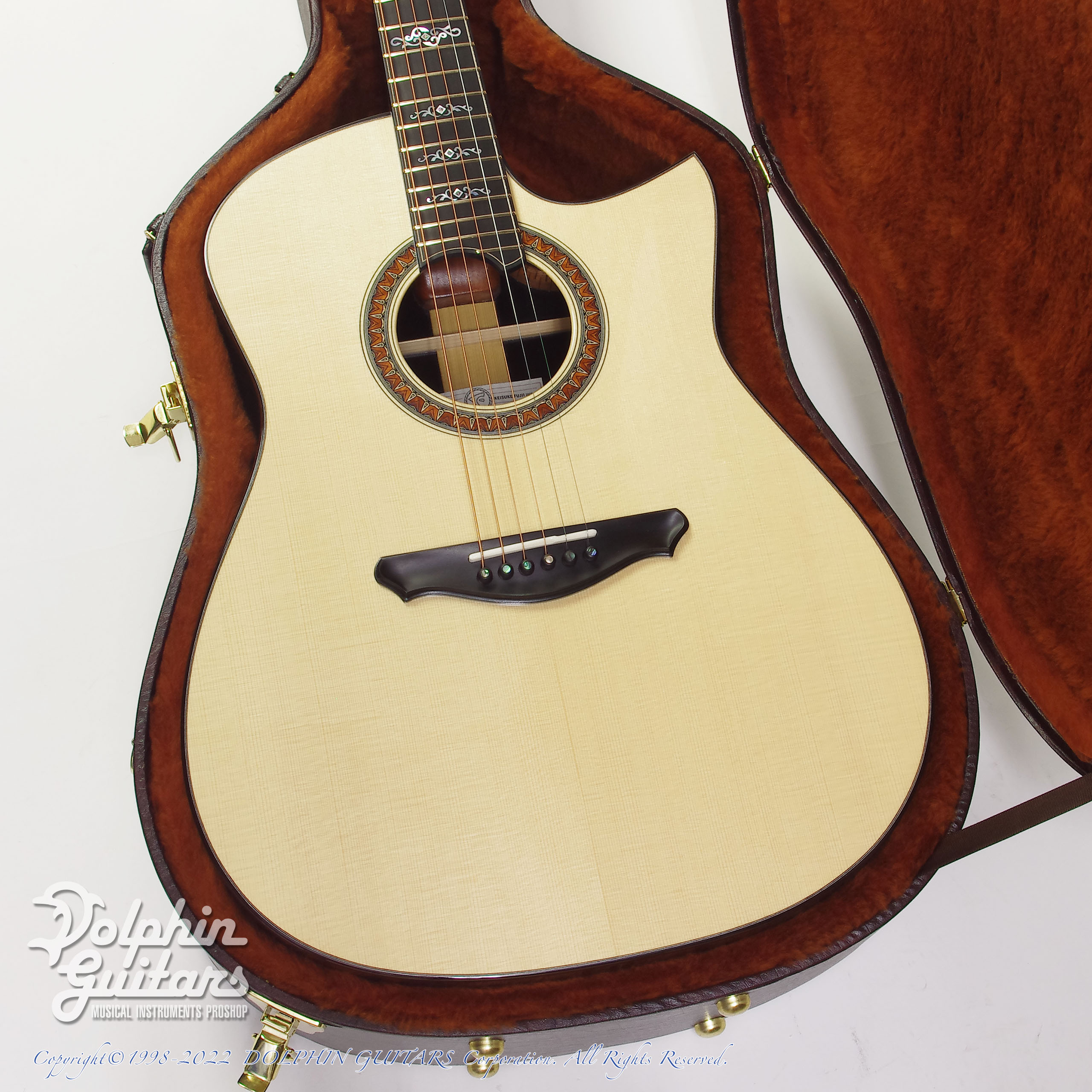 本器はフィンガースタイル・ドレッドノートに、OGAWA INLAY CRAFTのカスタムインレイを施したD Cutawayのオーダー品。