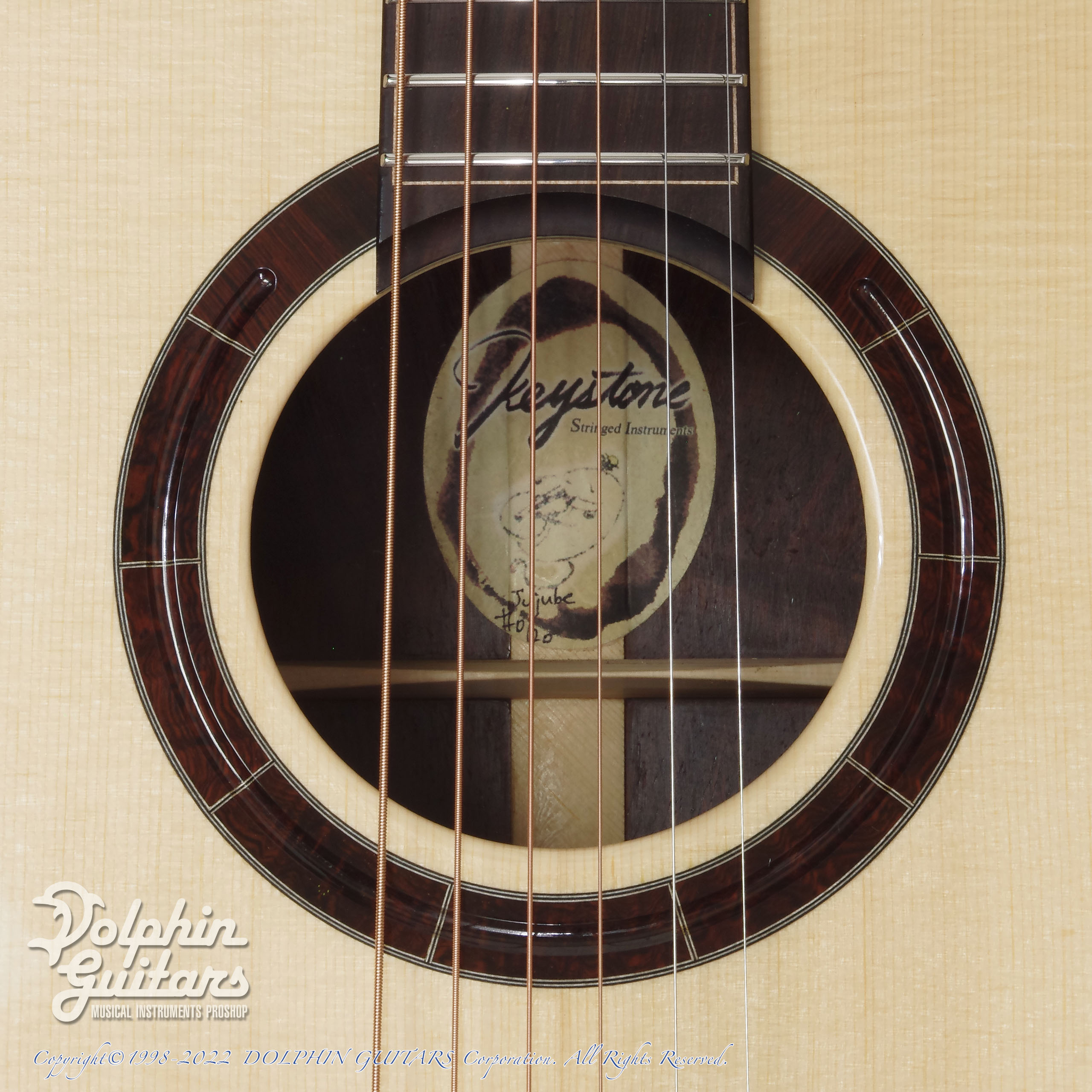 最も重要であるサウンドですが、オープンコードを一つ鳴らすだけでポテンシャルの高さを感じさせ、各弦・各ポジションを弾いていただくとこのギターの凄さが伝わるかと思います。ロー・ミッドの豊かさはこのサイズではまさに規格外と言え、12Fジョイントならではのレンジの広さ、ヘッドからボディまですべてのパーツがひとつになったかのような抜群な箱鳴りを感じさせ、すべてが絶品のサウンドであります。