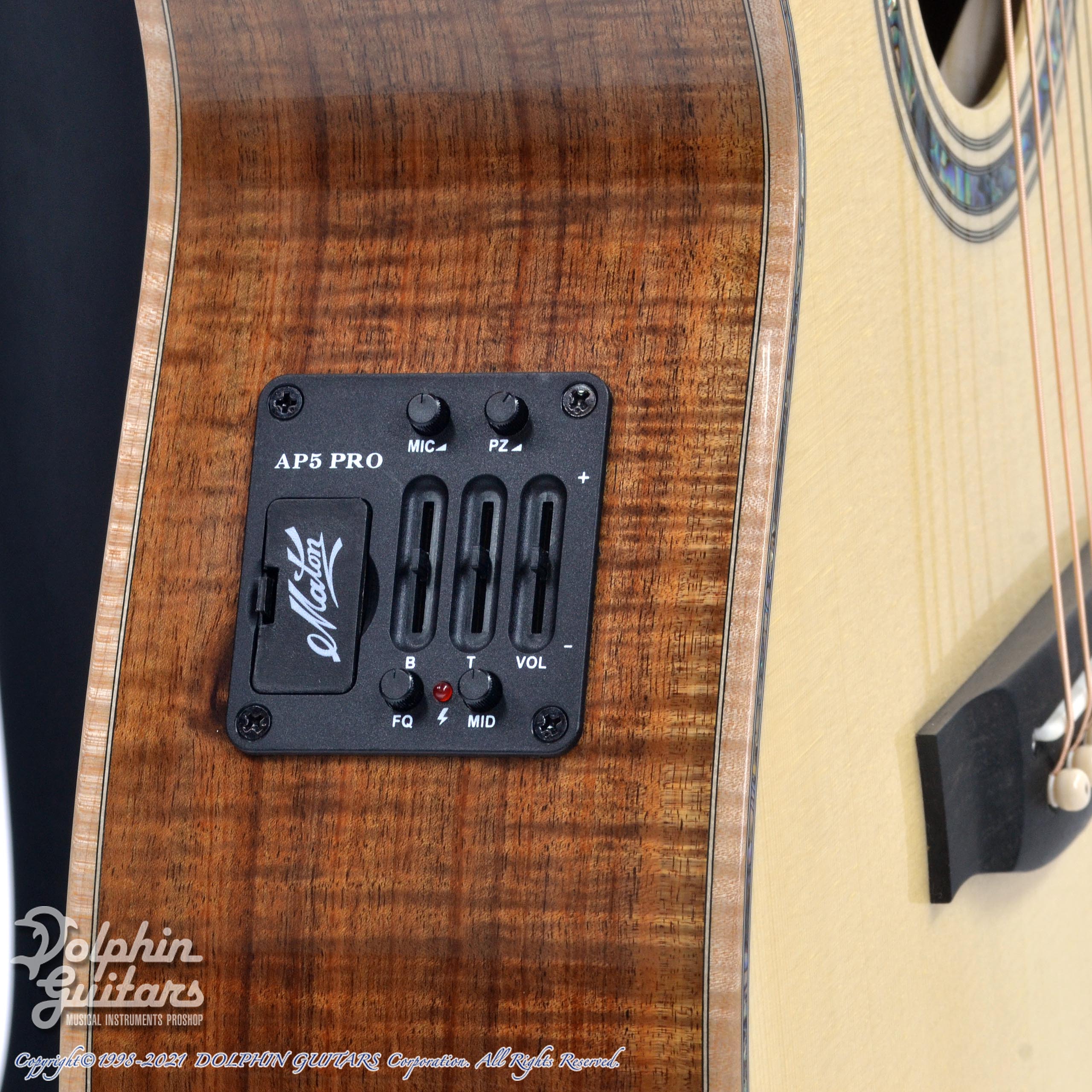 また、搭載されたAP5-Proピックアップシステムは、クリアで透明感のあるマイクサウンドと力強いピエゾの存在感でどんな現場でもナチュラルなアコースティックサウンドをアウトプットできます。また、マスターボリュームを装備し、バランス調整もより精細にスムーズに行うことが可能です。一音鳴らせばその深みのあるアコースティックサウンドに魅せられてしまうことでしょう。