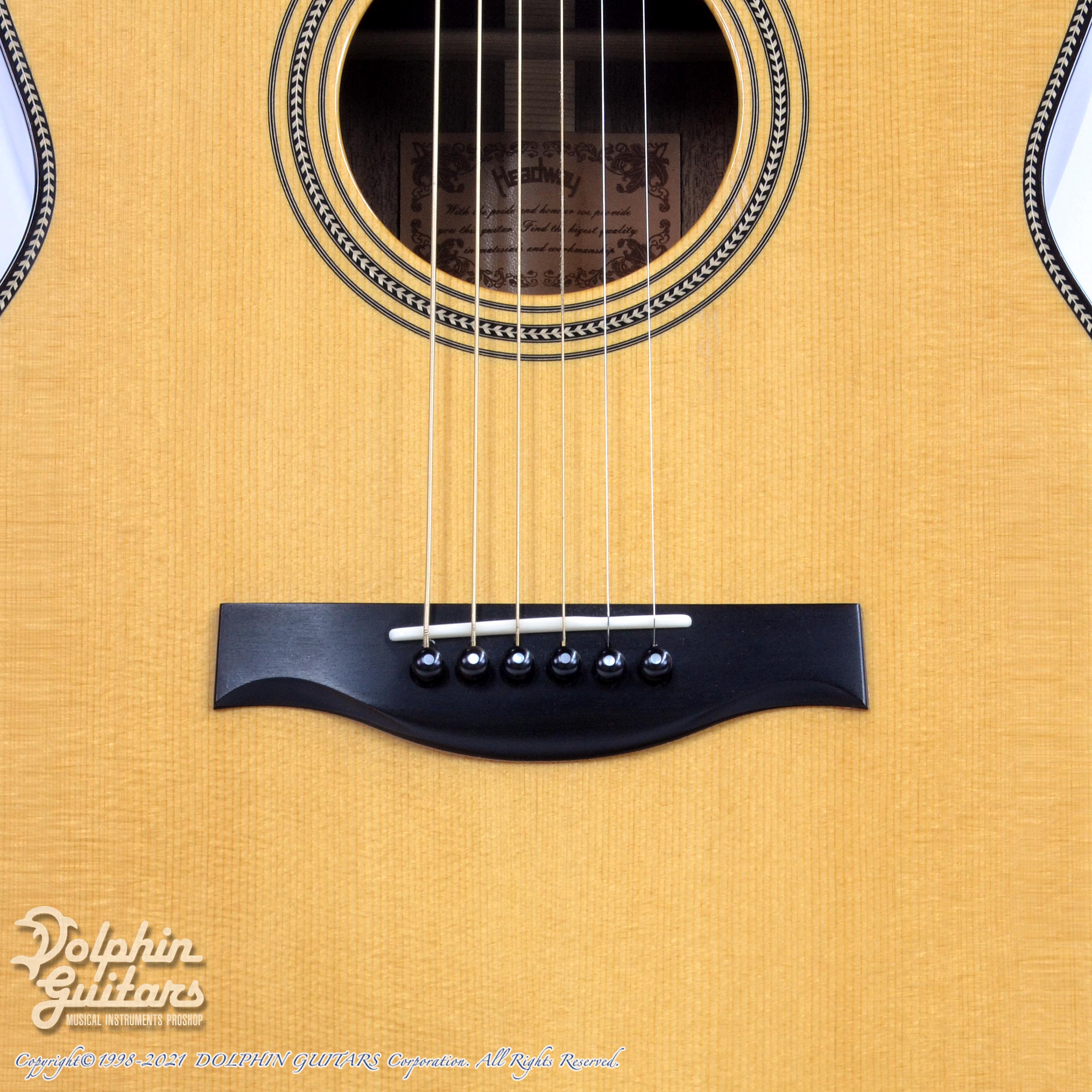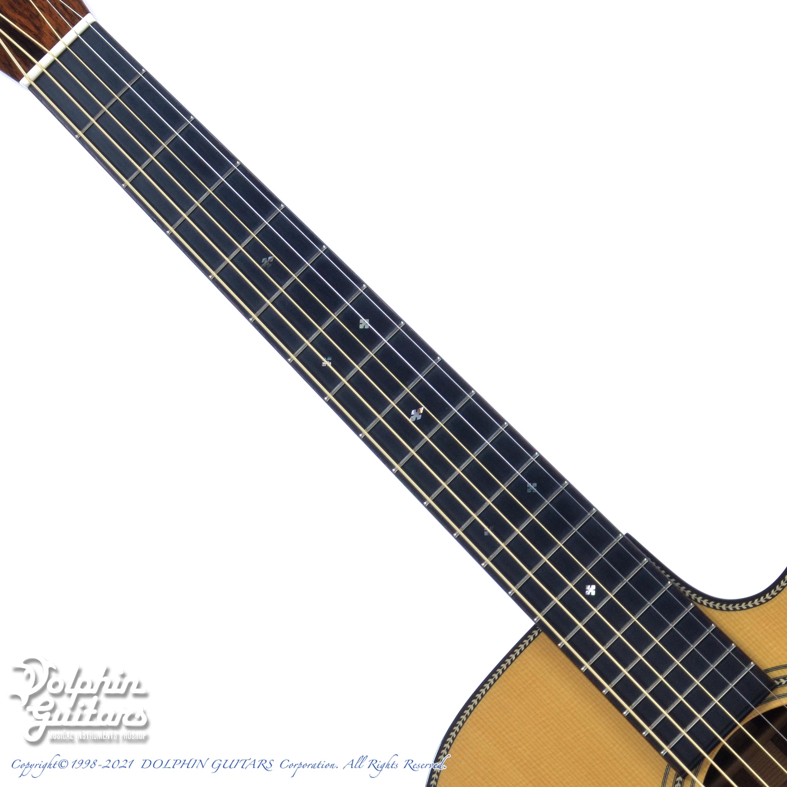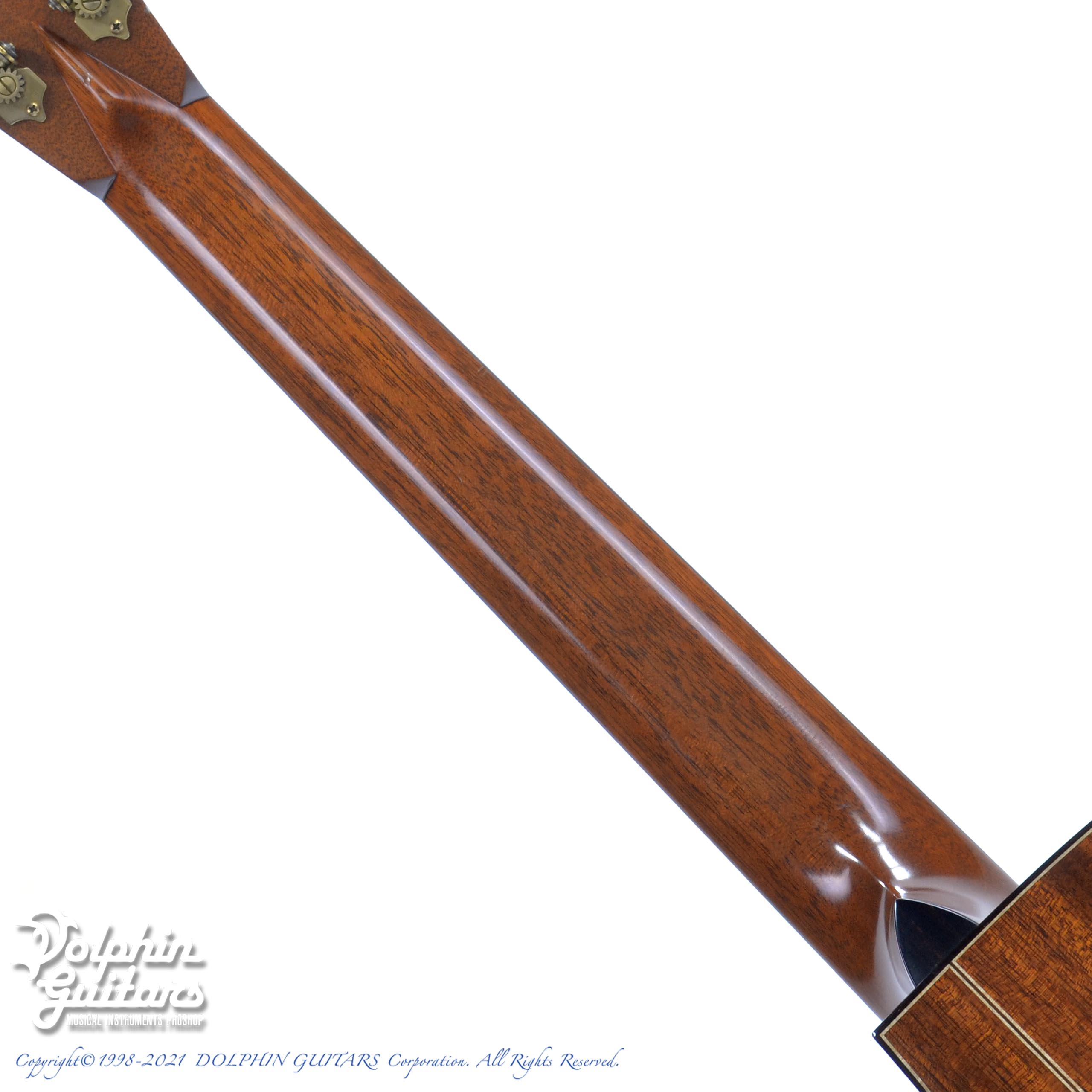 イングルマン・スプルースTOP、ホンジュラス・マホガニーS&B、マホガニー1pネック、エボニー指板&ブリッジ、ヘリンボーン・トリム&ロゼッタ、ベネチアンカッタウェイ、イーグルヘッドインレイ、Gotohオープンバックペグ。