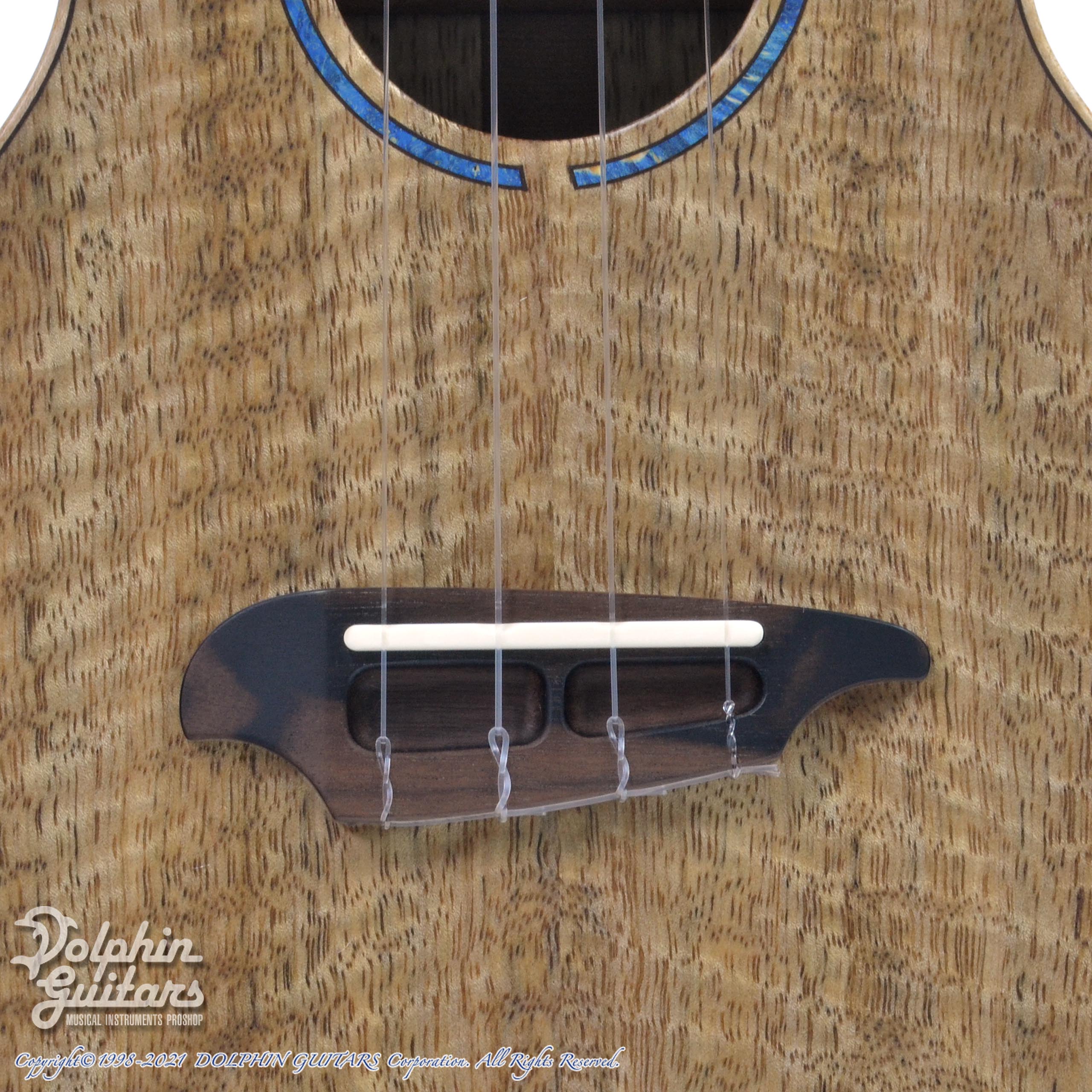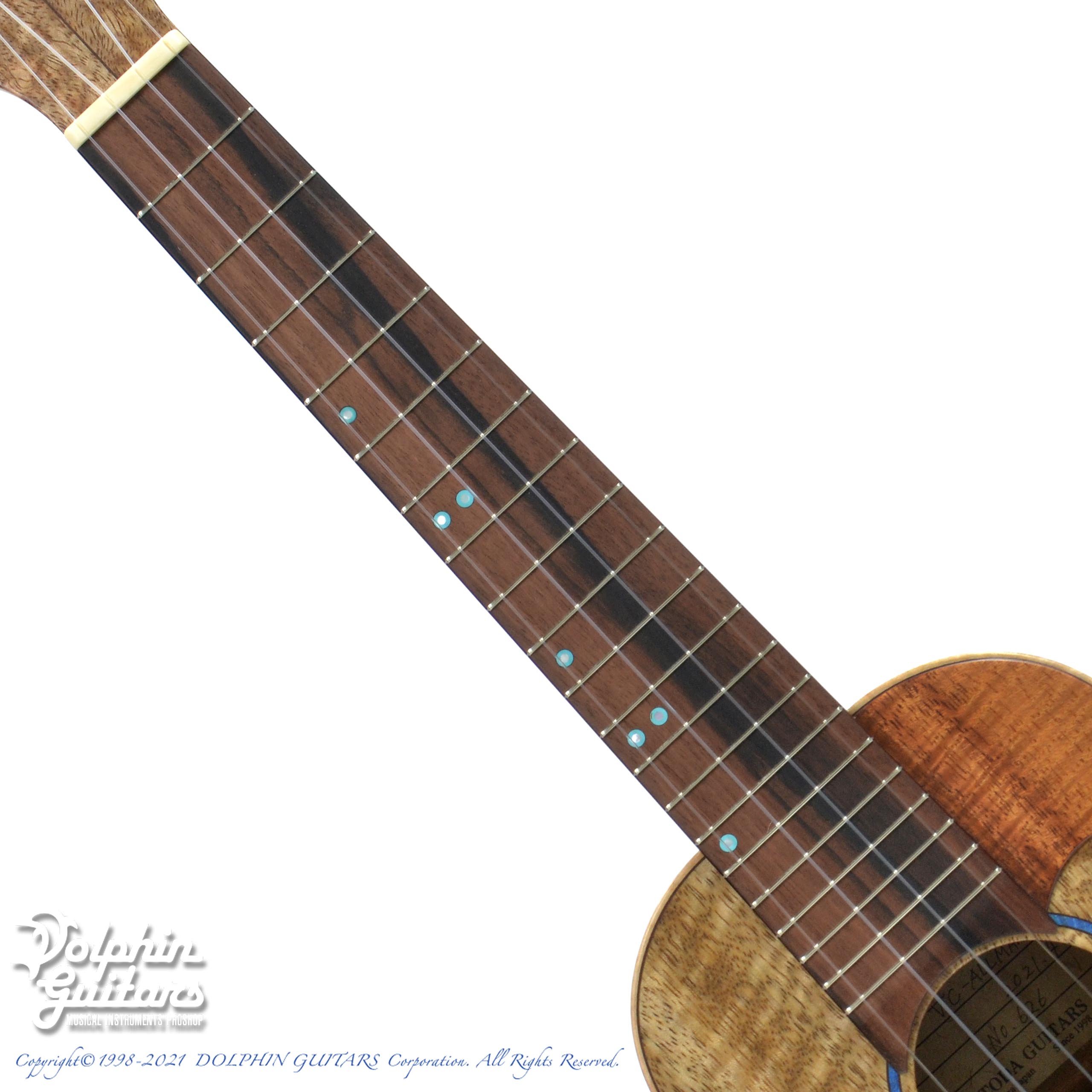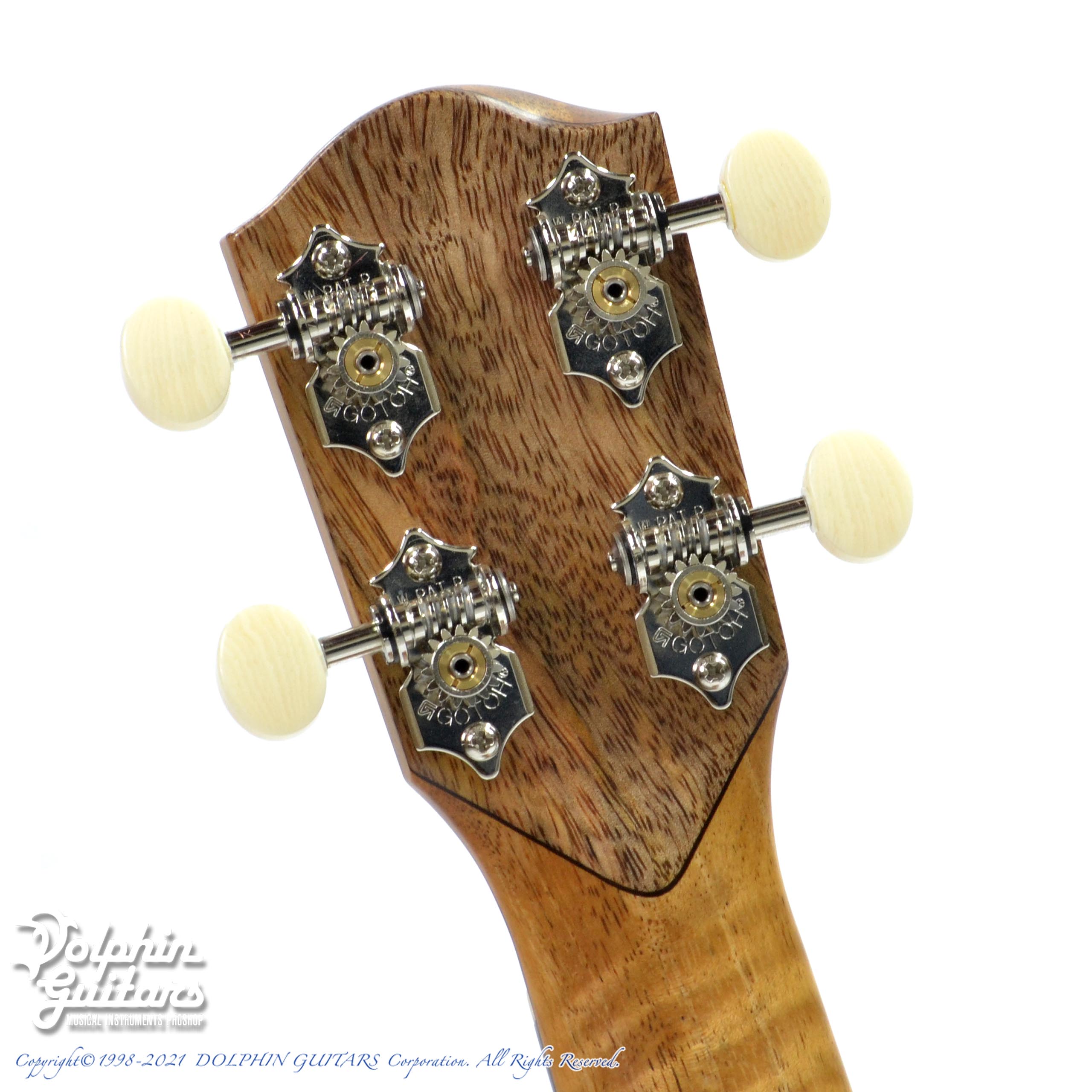 マンゴー・ボディ、マンゴー・ネック、マッカーサー・エボニー・フィンガーボード&ブリッジ、カーリーメイプル・バインディング、ハワイアンコアウッド・PG、スタピライズド・ウッド(楓の青染め)・ロゼッタ、GOTOH PEG。