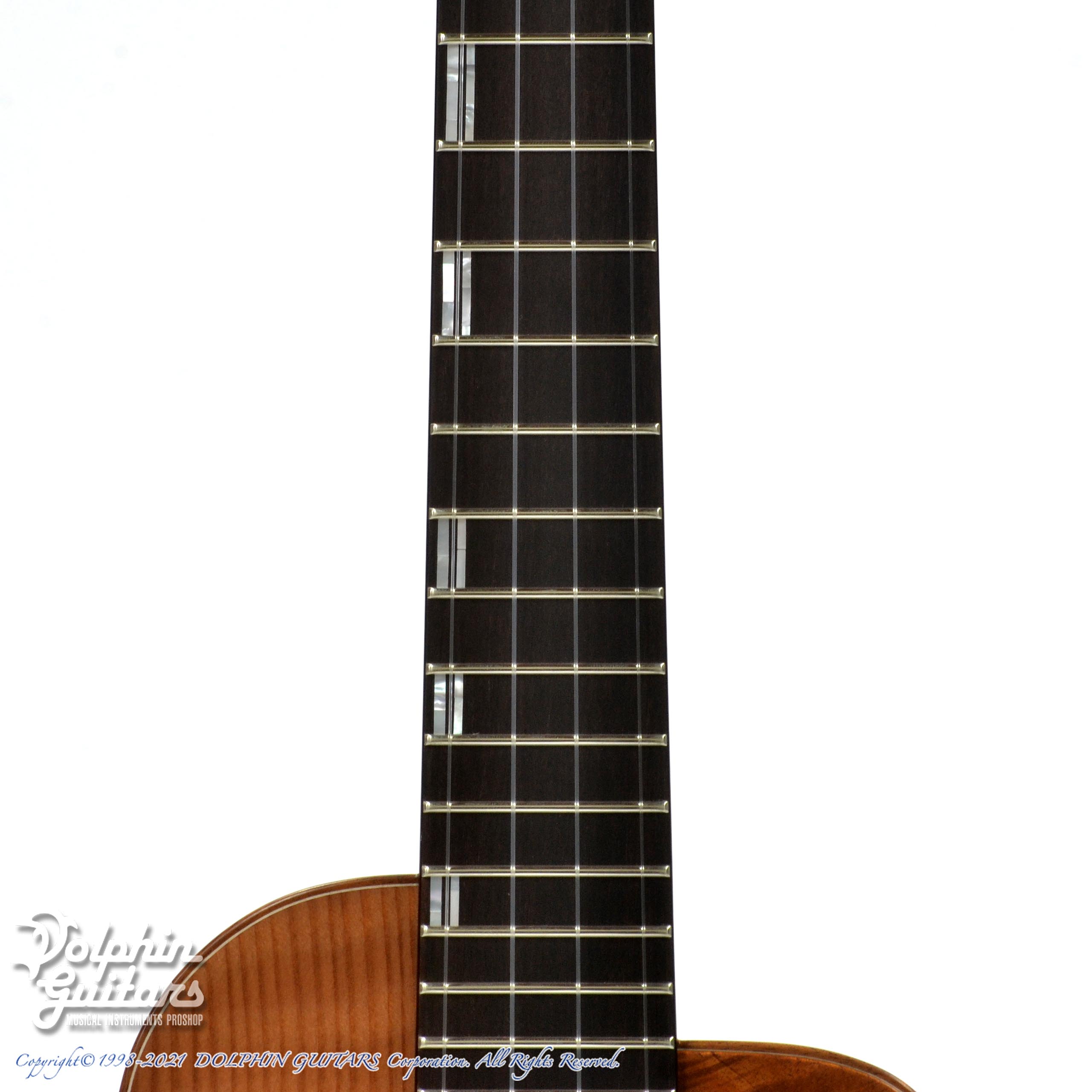 フレイム・レッドウッド・トップ、ハワイアンコアS&B、ホンジュラスマホガニー・ネック、エボニー・フィンガーボード&ブリッジ、コア・ピックガード。