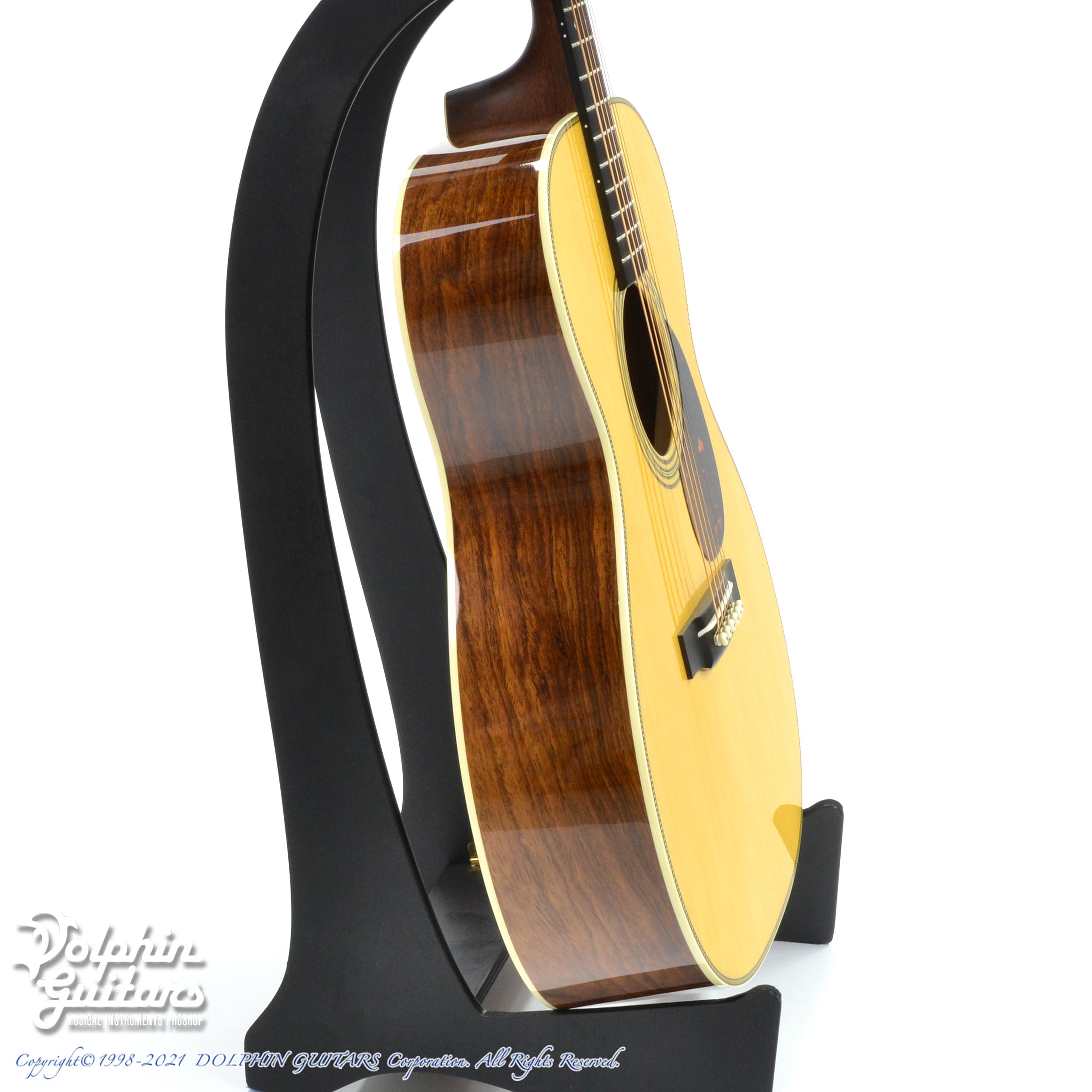 アディロンダック・スプルーストップ、グァテマラン・ローズウッドS&B、フォワードシフト・スキャロップドXブレイス(アディロンダック)、マホガニーネック、アジャスタブルロッド、エボニー指板&ブリッジ、ヘリンボーントリム、シャーラーペグ、オーセンティックデカールロゴ。