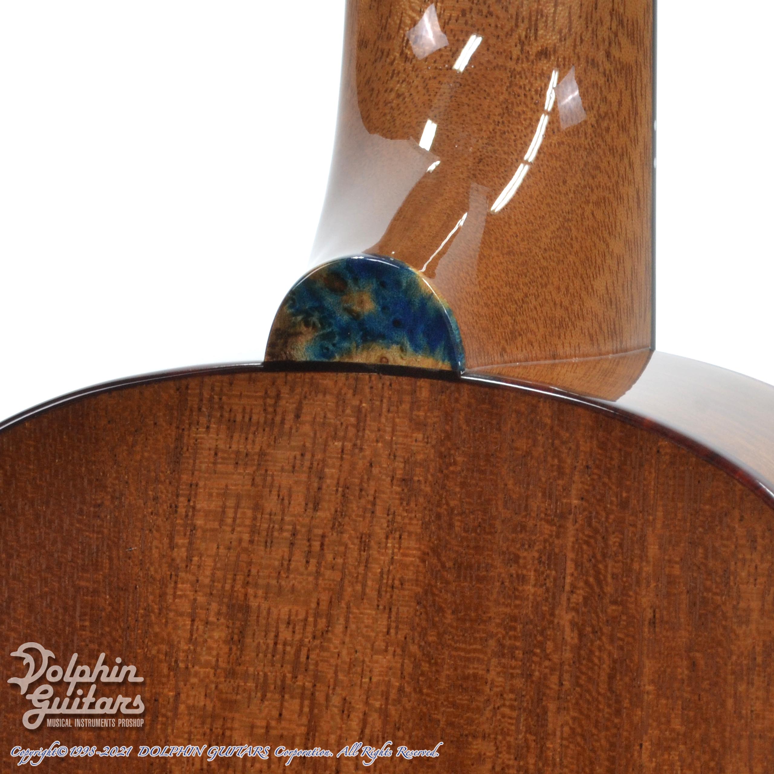 マホガニーボディ、マホガニー・ネック、エボニー・フィンガーボード&ブリッジ、GOTOH オープンバック・ペグ、14Fジョイント(全19F)。