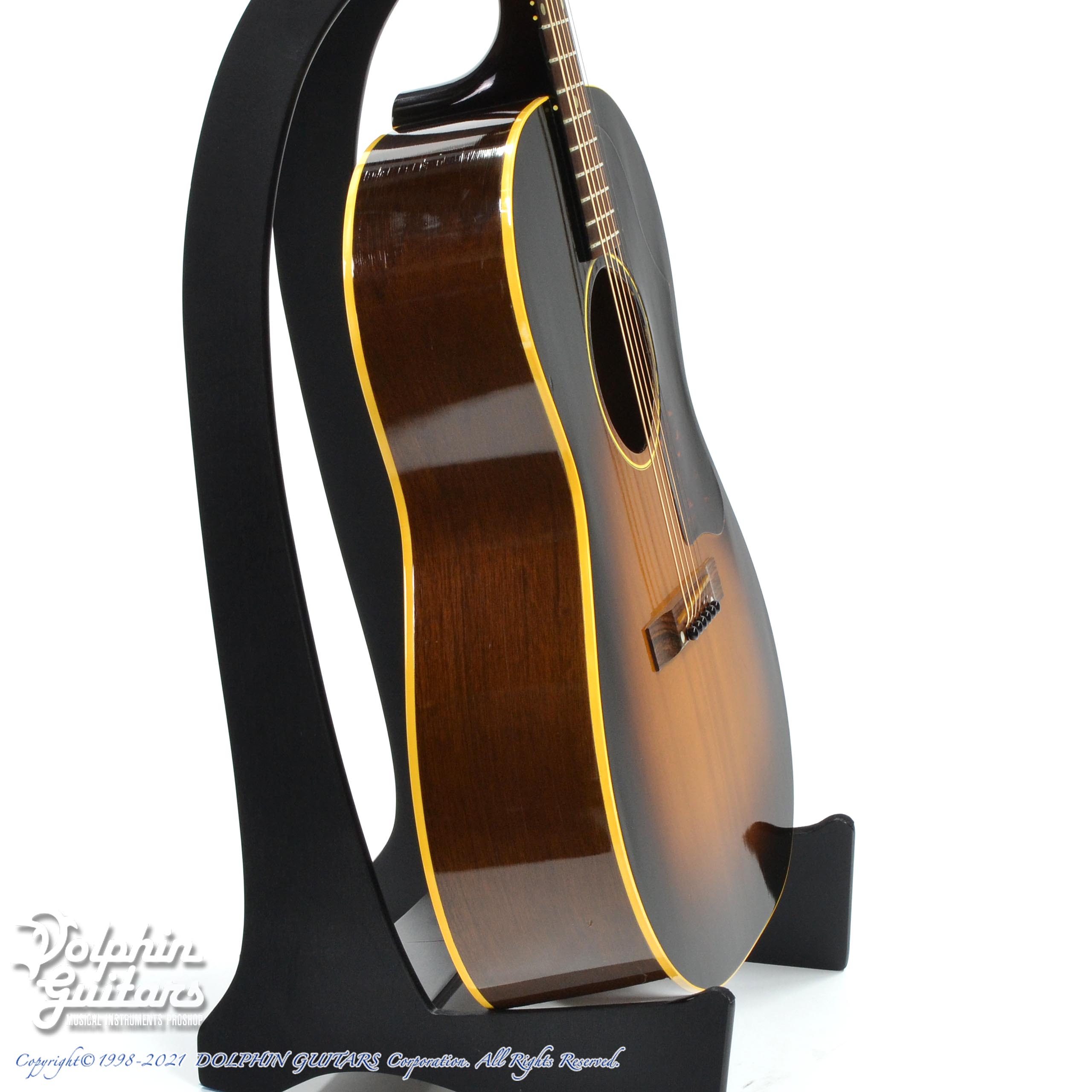 1943年にLG-2の廉価モデルとして登場したLG-1は、ブレイシングをシンプルなラダータイプする事により、リーズナブルなプライスを実現しました。結果的にサウンドに変化が表れ、XブレイシングのLG-2と比較すると、よりジャジーでブルージーな音色が特徴です。