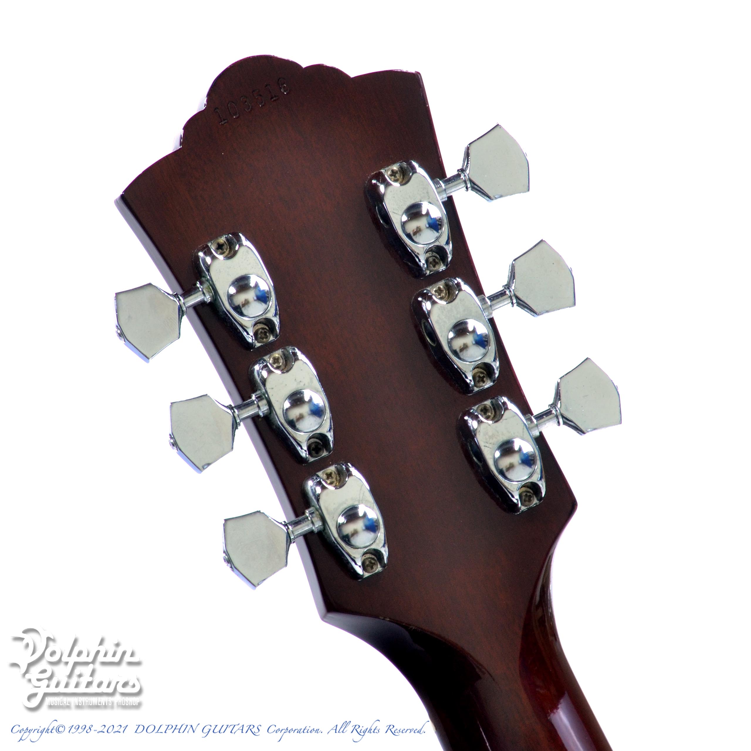 シトカ・スプルーストップ、マホガニー・サイド&バック、マホガニー・ネック、ローズウッド・フィンガーボード&ブリッジ、オリジナルべっ甲柄ピックガード、ギルドロゴ入り・オリジナル糸巻き。